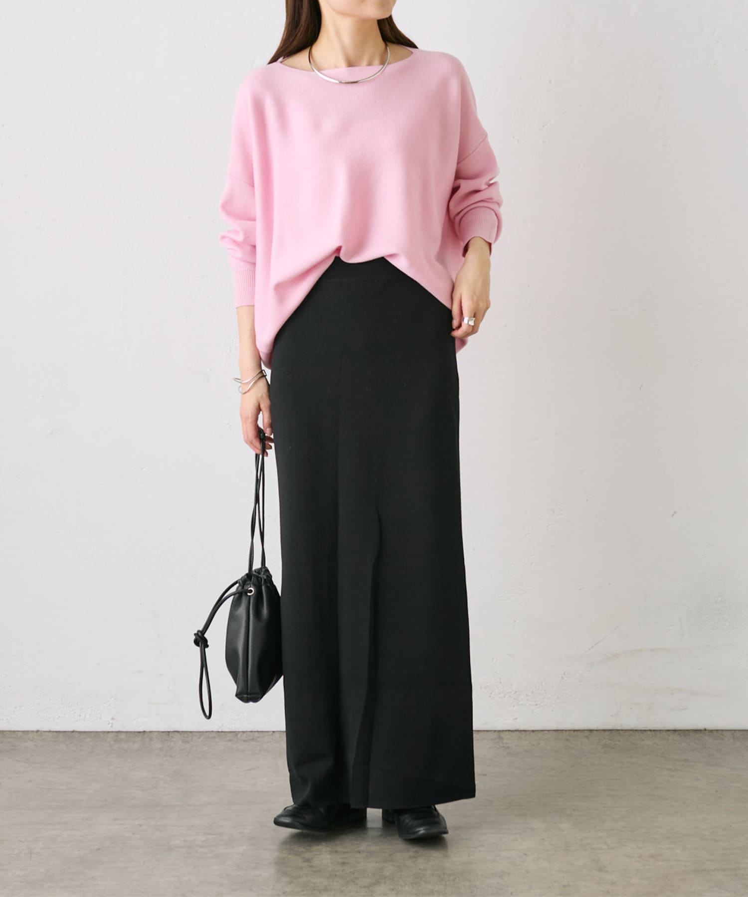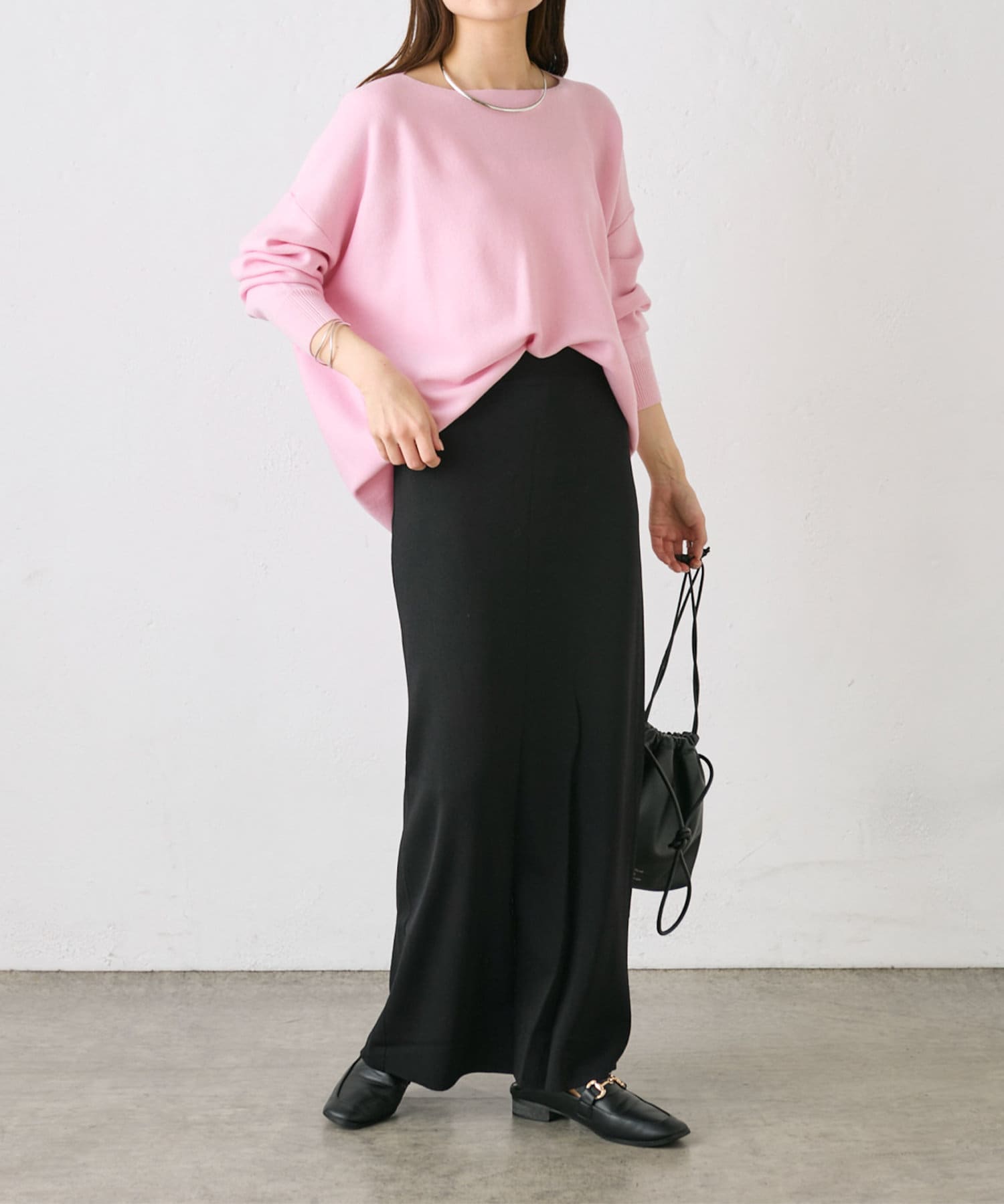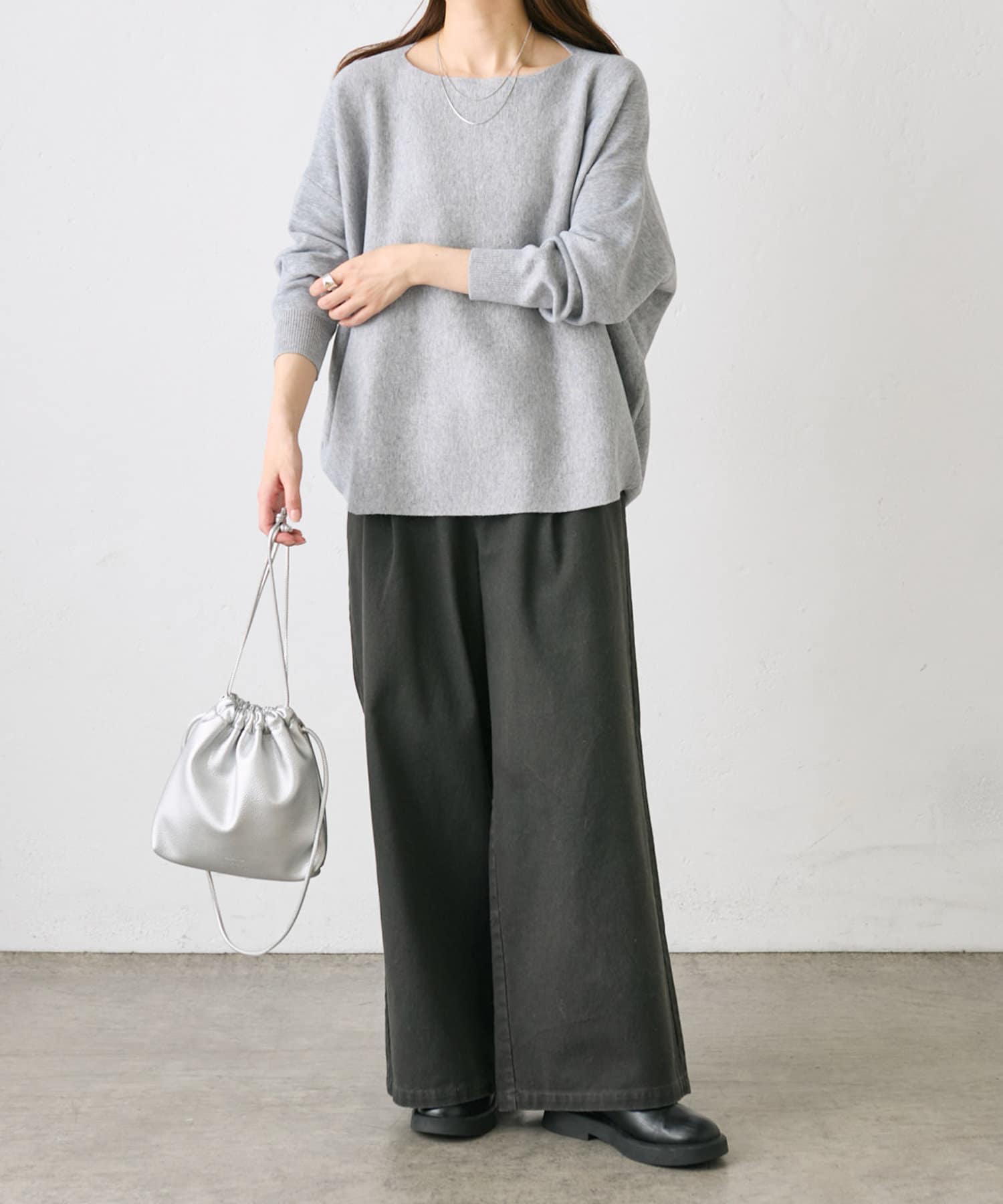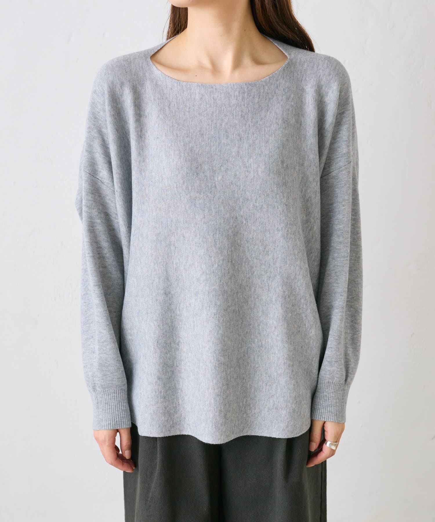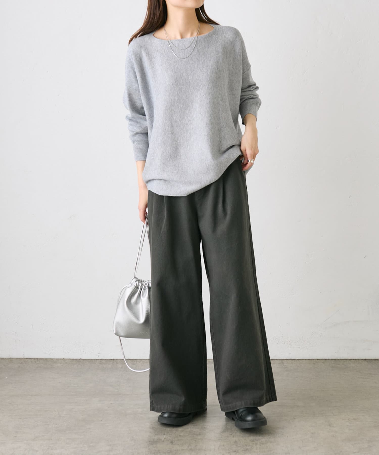 首元が広いため、気になる方はネックレスなどアクセサリーをつけて調整していただくとメリハリがでて良いと思います。