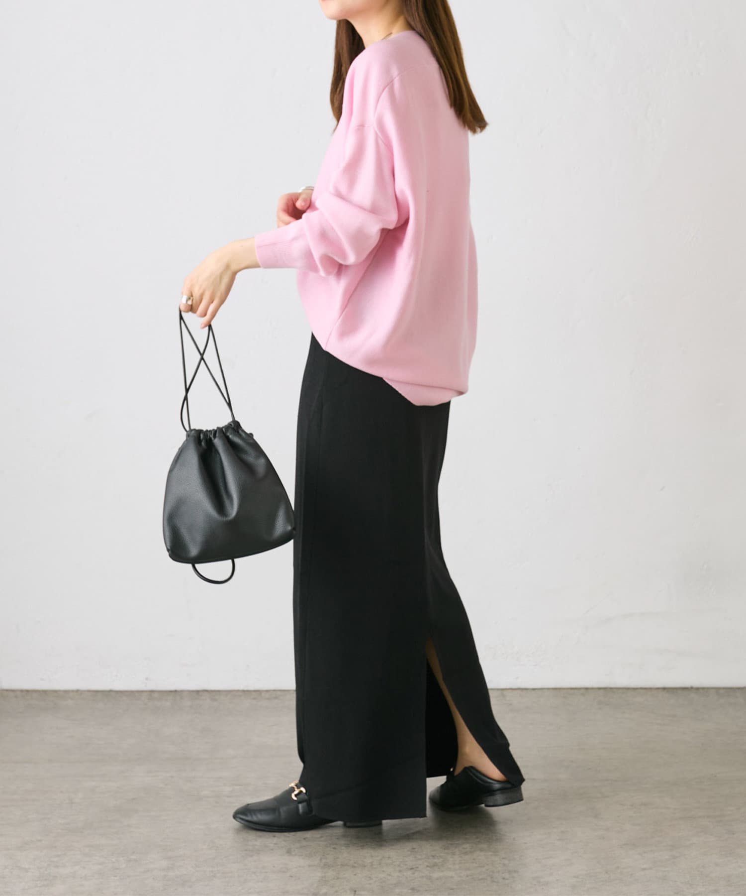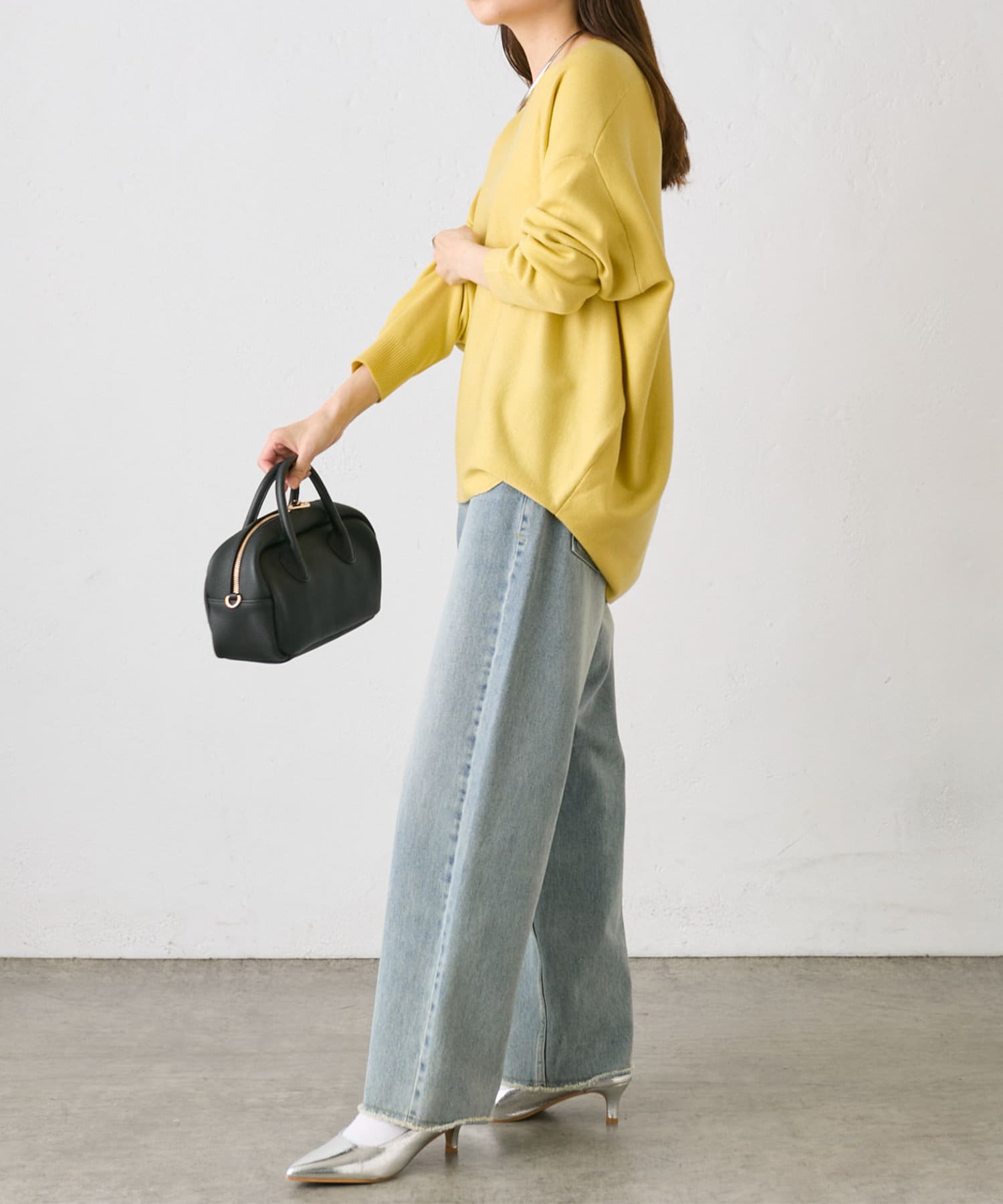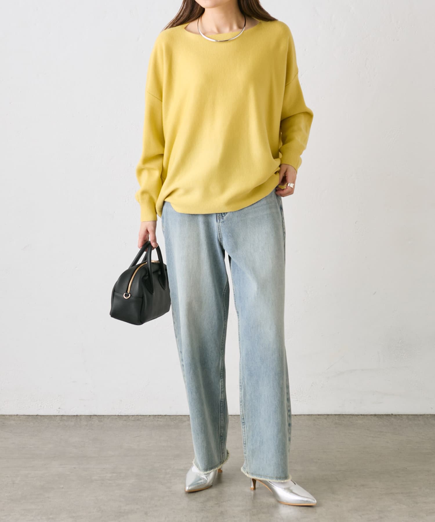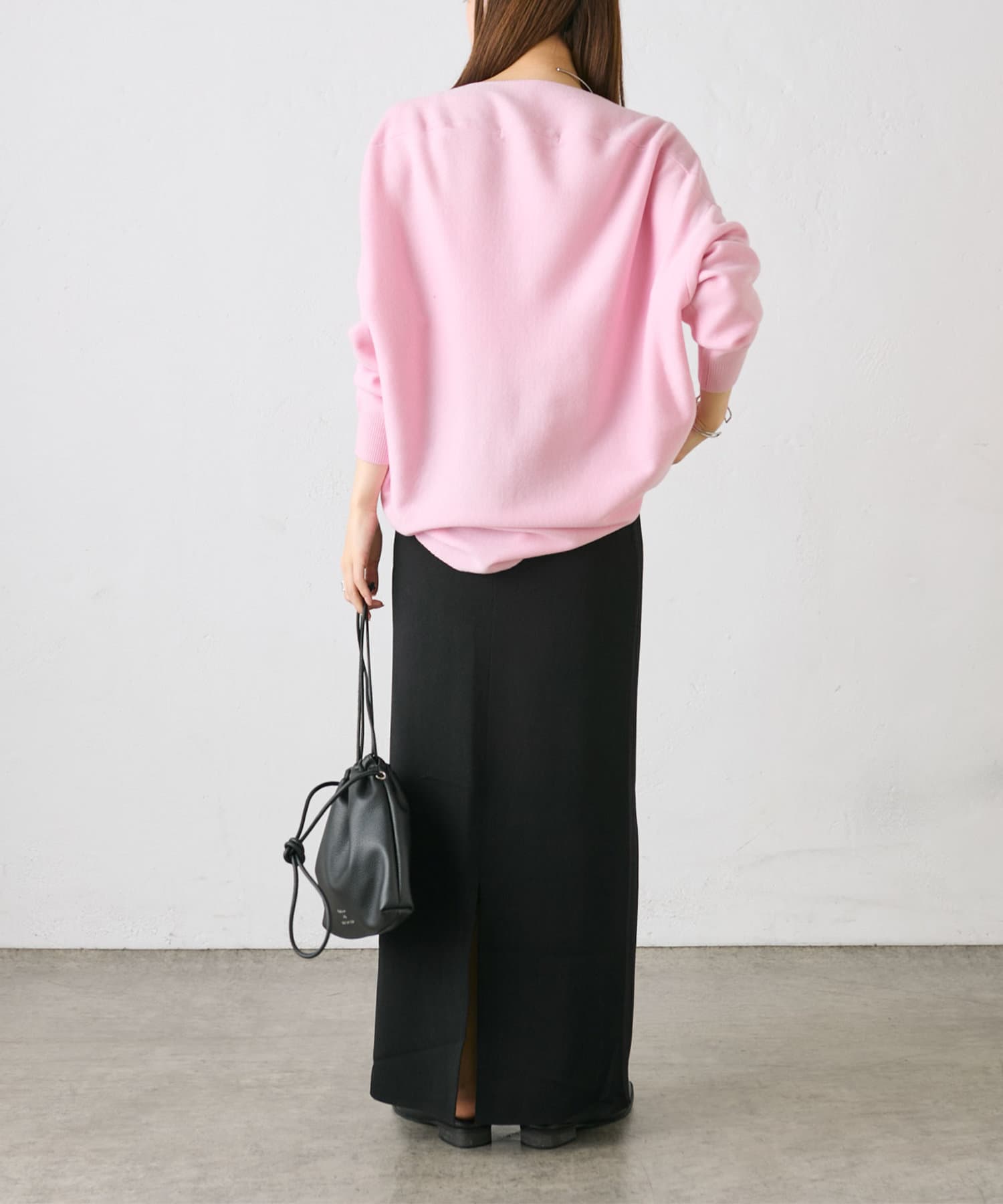 首元が広いため、気になる方はネックレスなどアクセサリーをつけて調整していただくとメリハリがでて良いと思います。