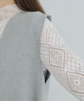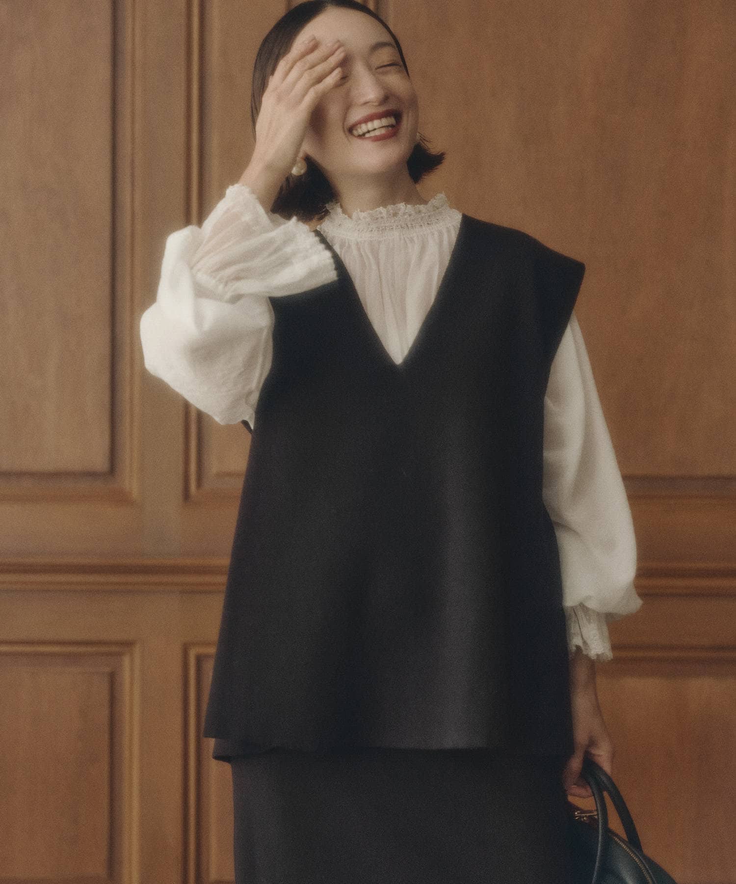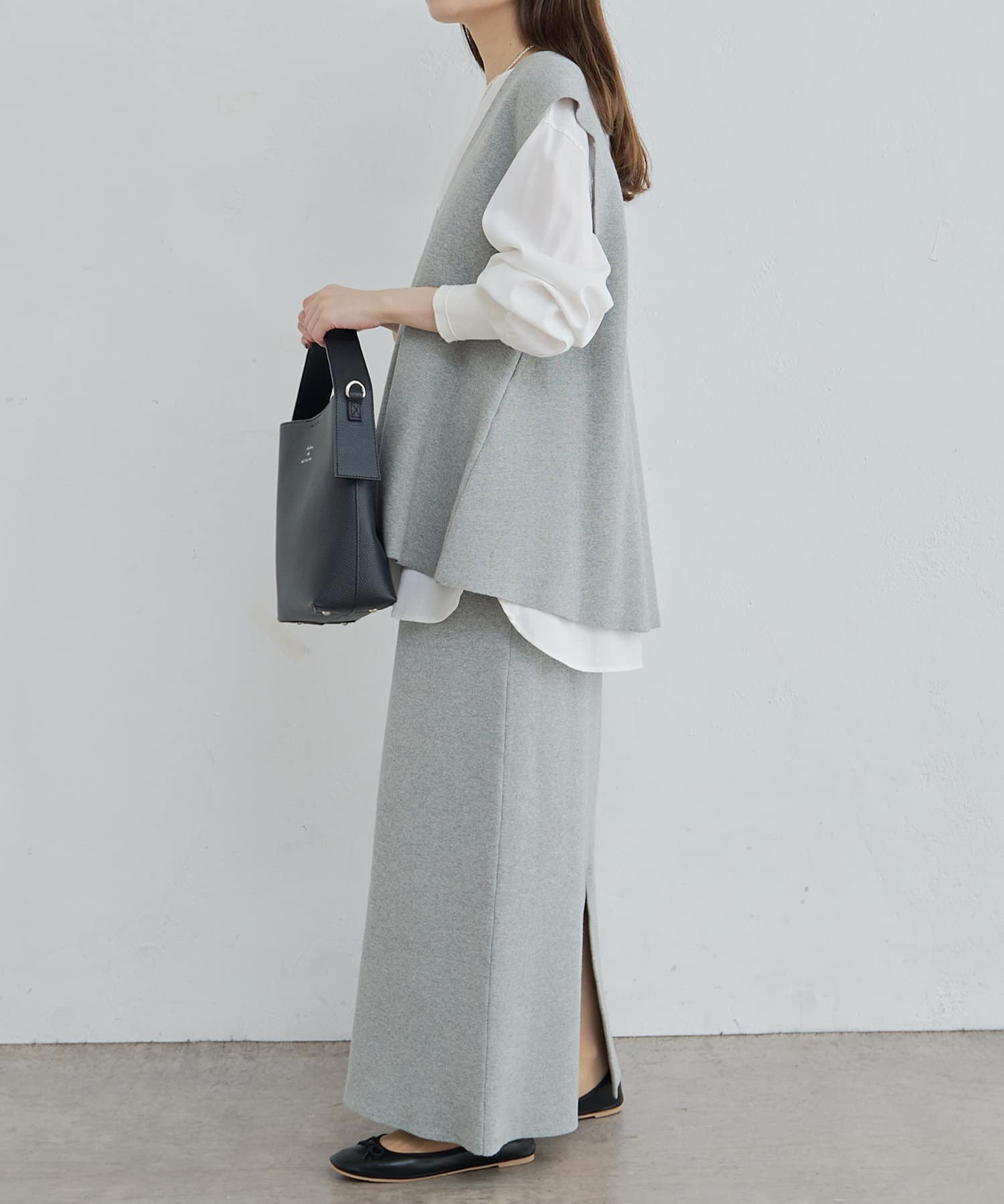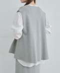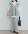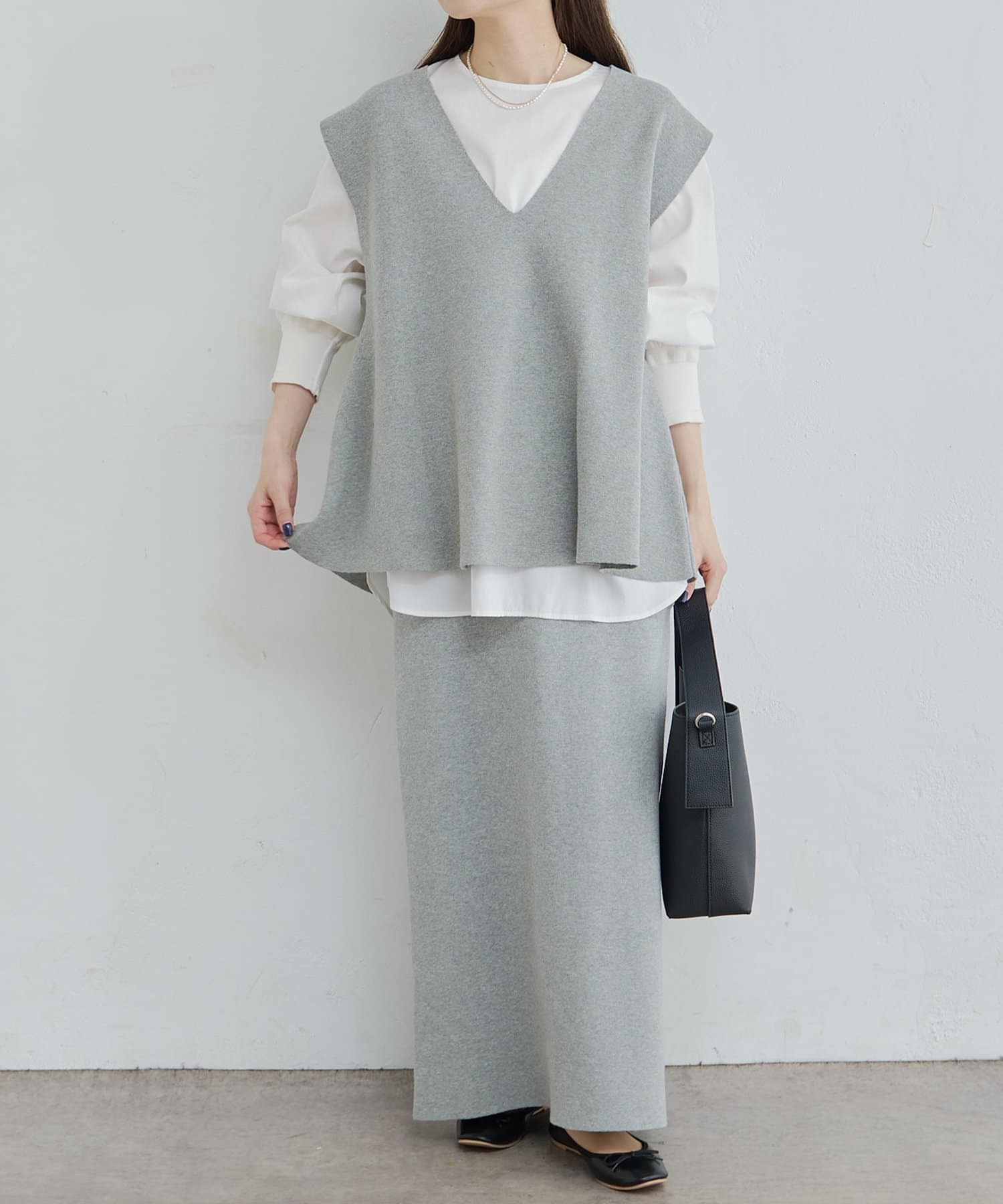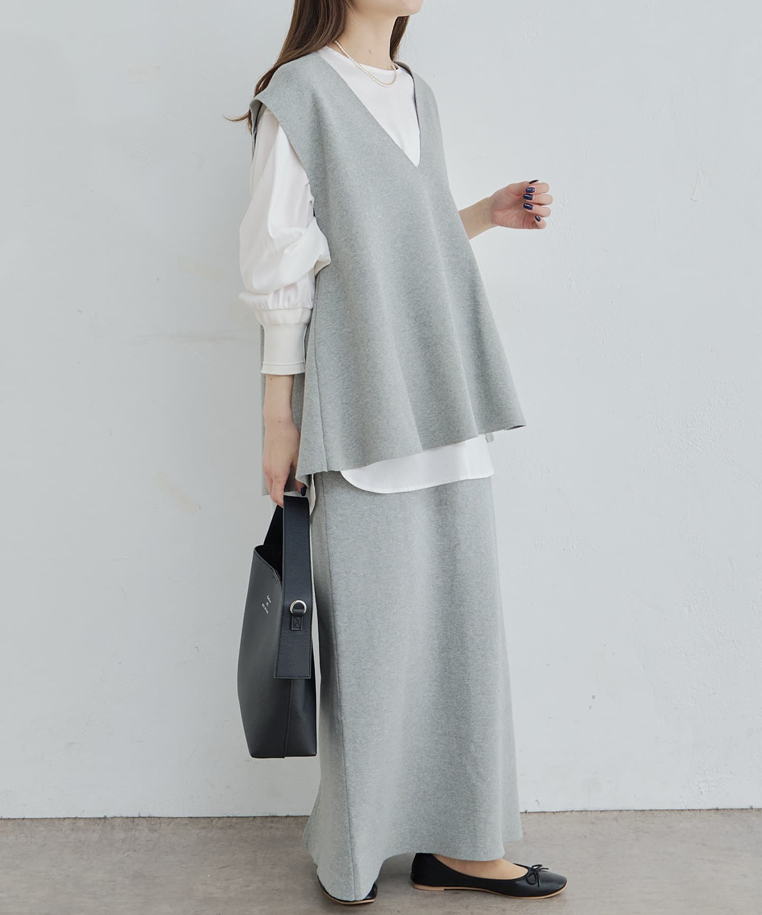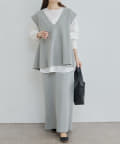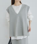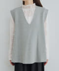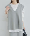 Vネックで首元がスッキリとした大人な雰囲気のニットベスト。
