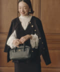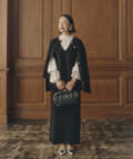 インナーにオフホワイトのブラウスを合わせると、セレモニーシーンにも対応します。
