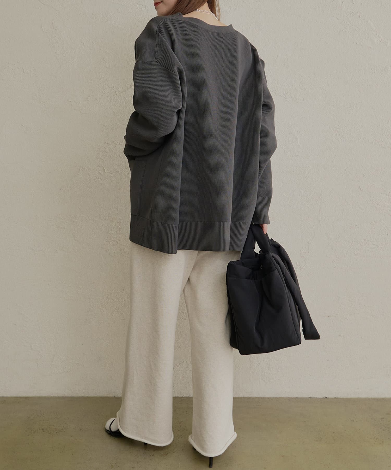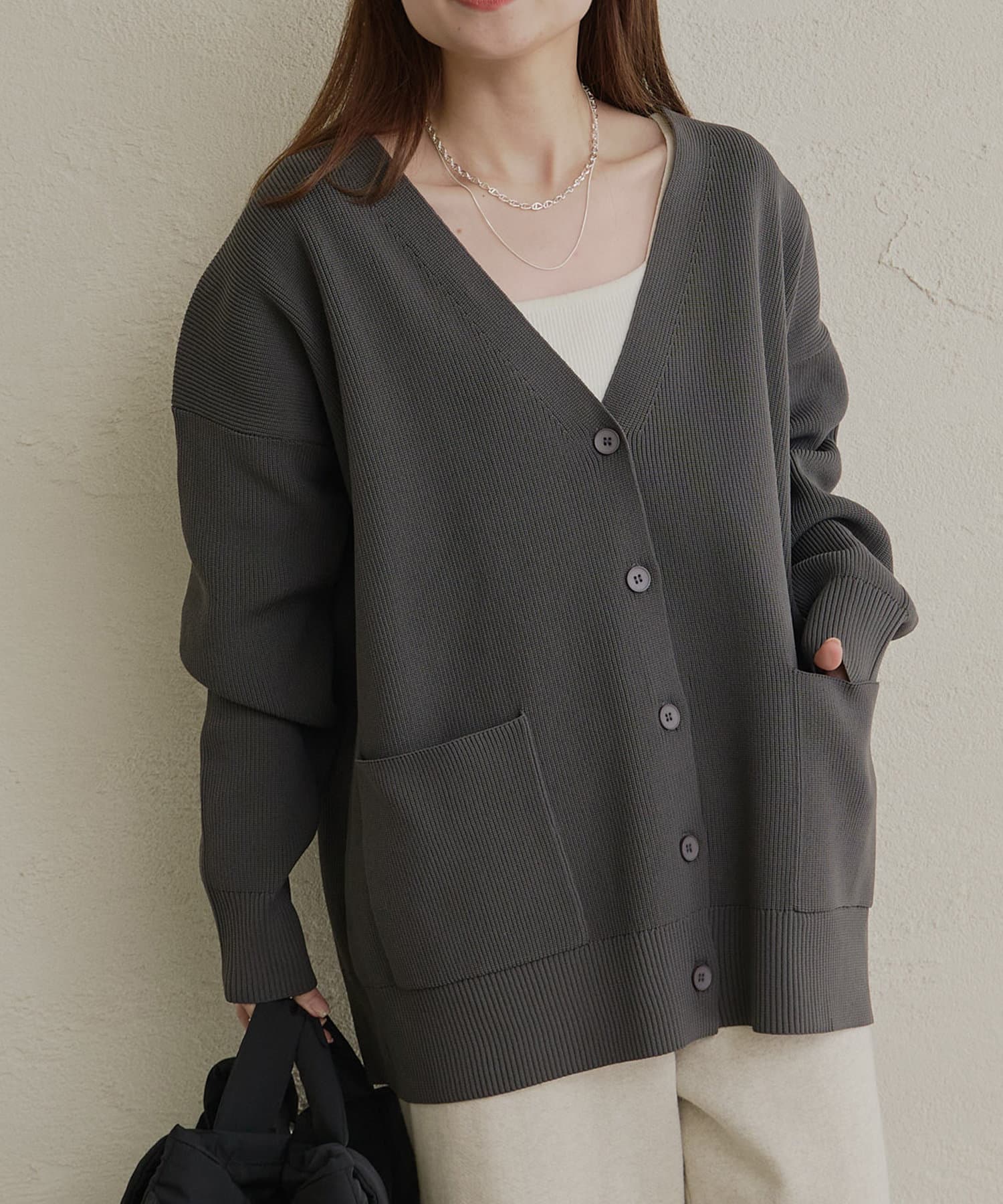 編み地にハリ感があり、フォルムがしっかりキープされるため着映えする主役級カーディガン。