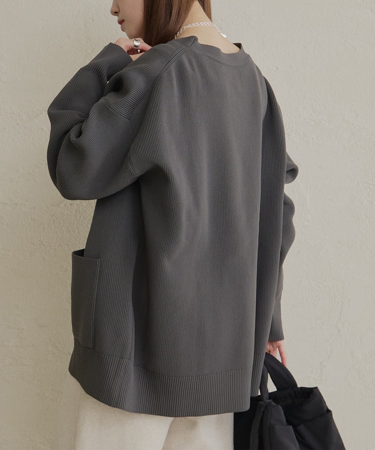 程よいオーバーサイズ感です。毛玉になりにくい素材で、気軽にサッと羽織れます。
