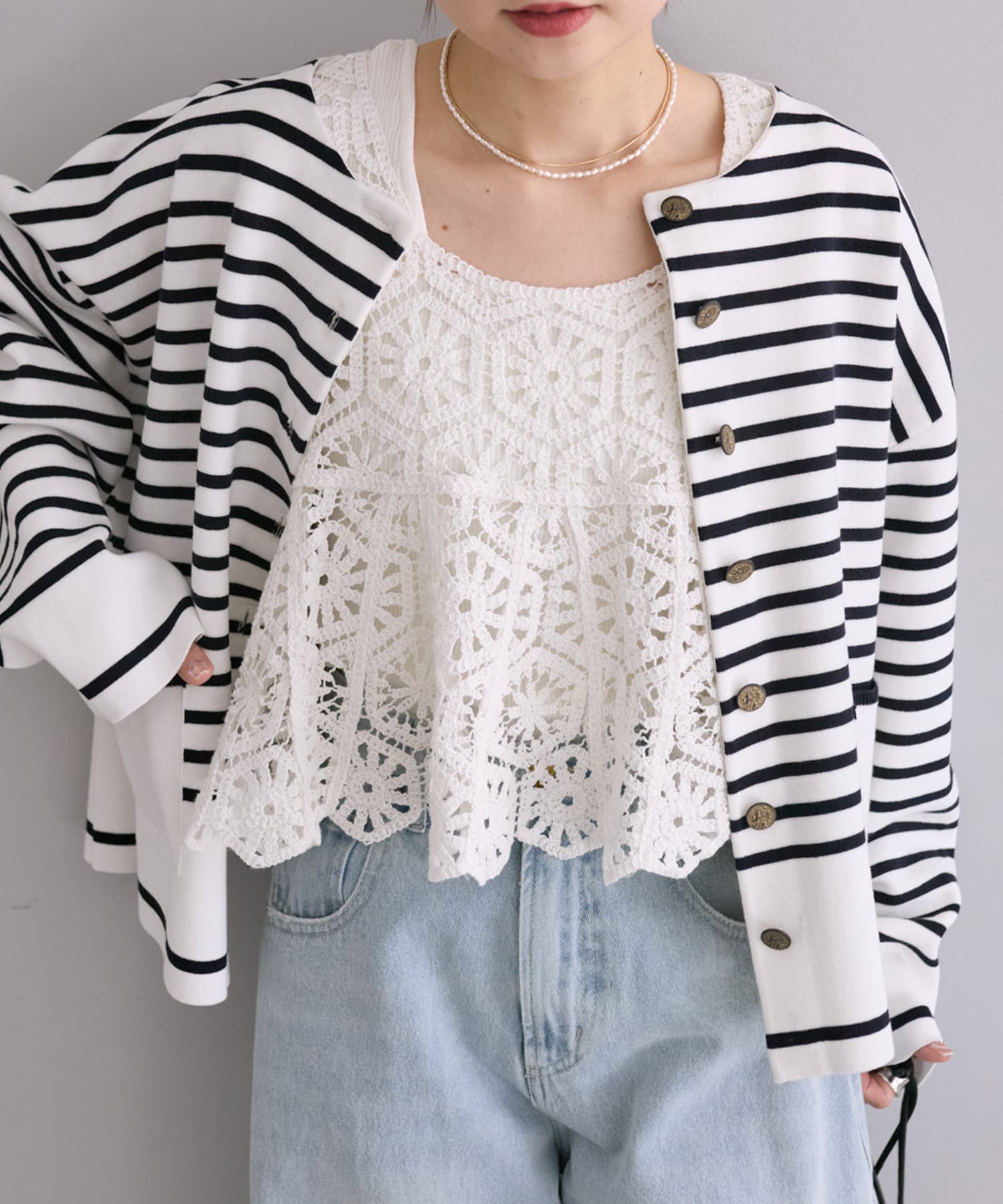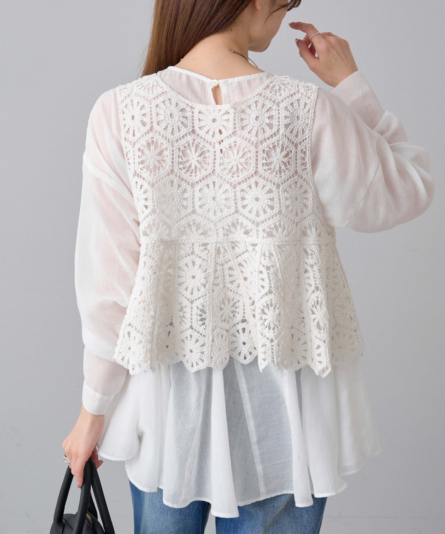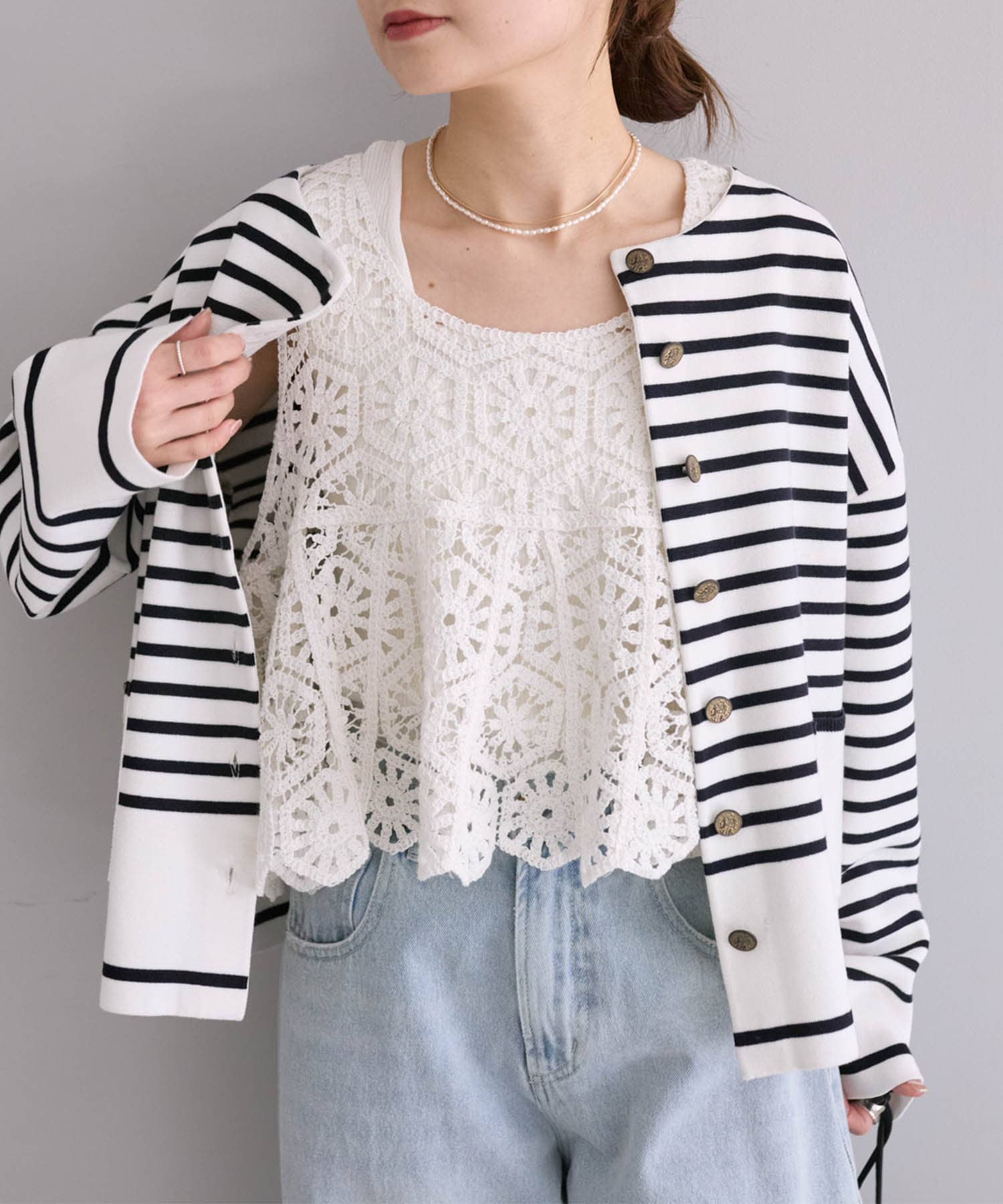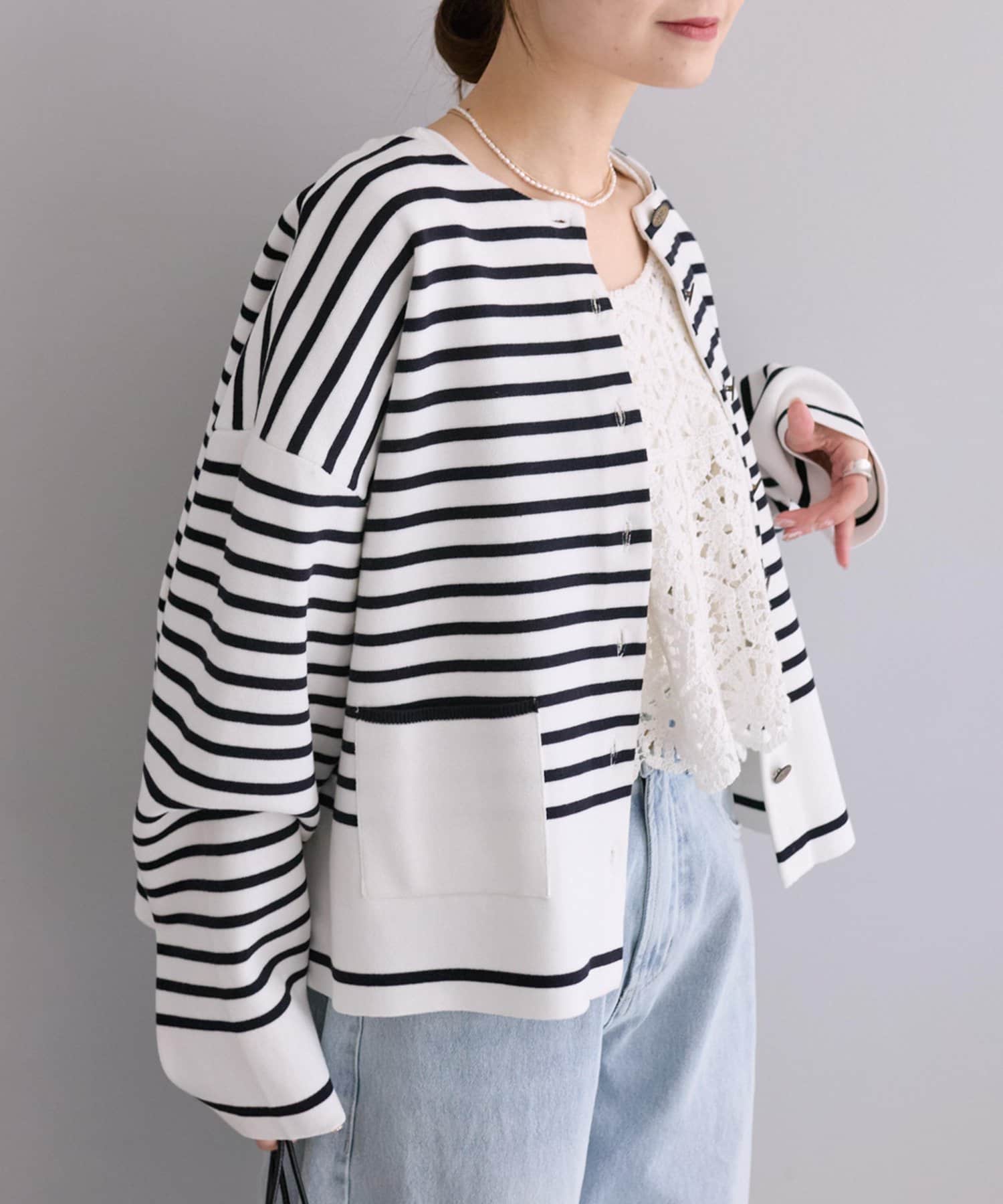 同素材シリーズ、カギ針編み風2WAYカーディガン(品番:0251050060)の