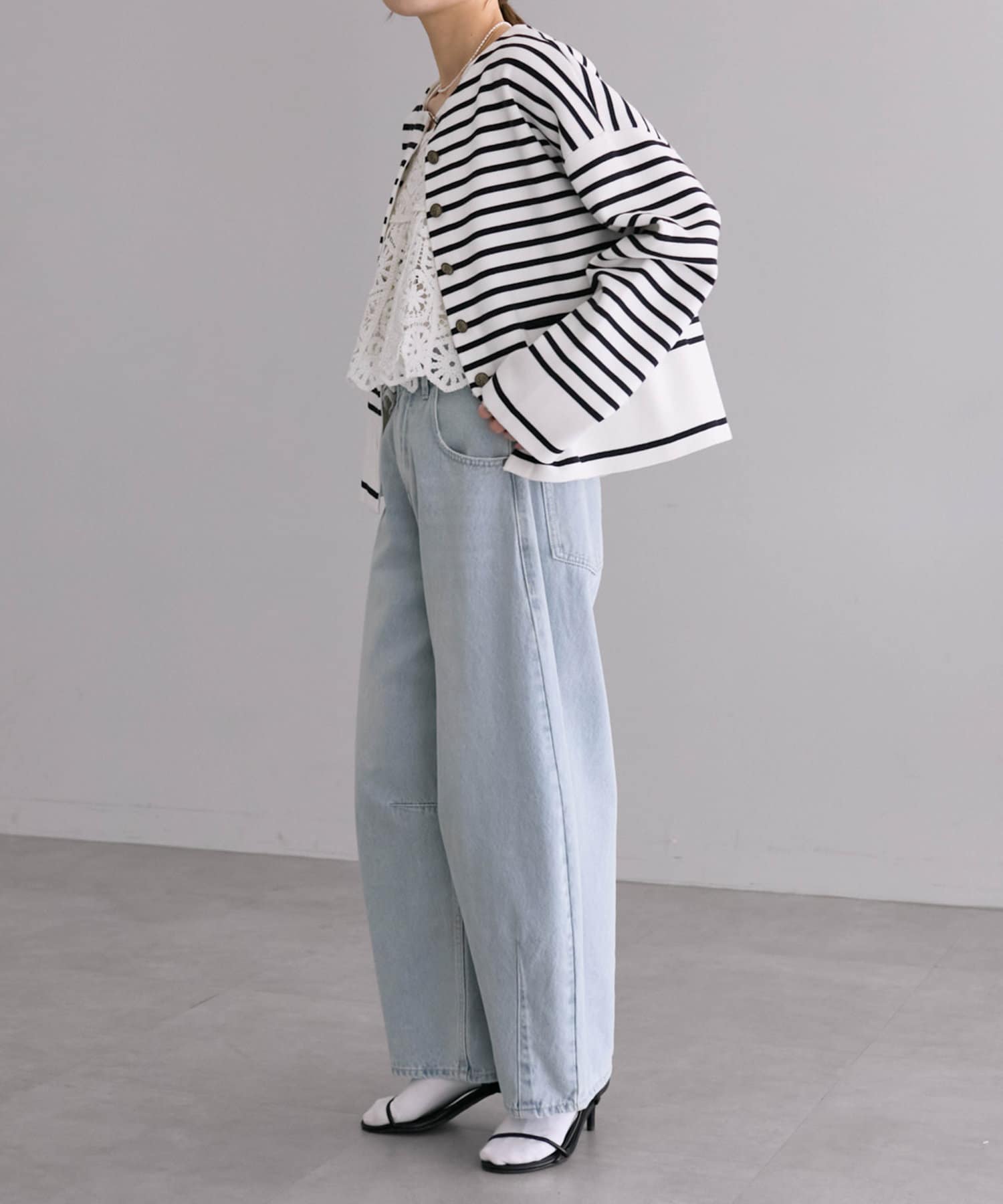 ウエストほどの丈感と広い袖口で、