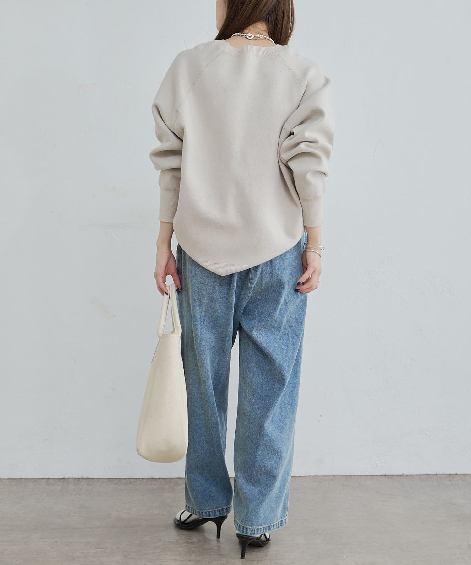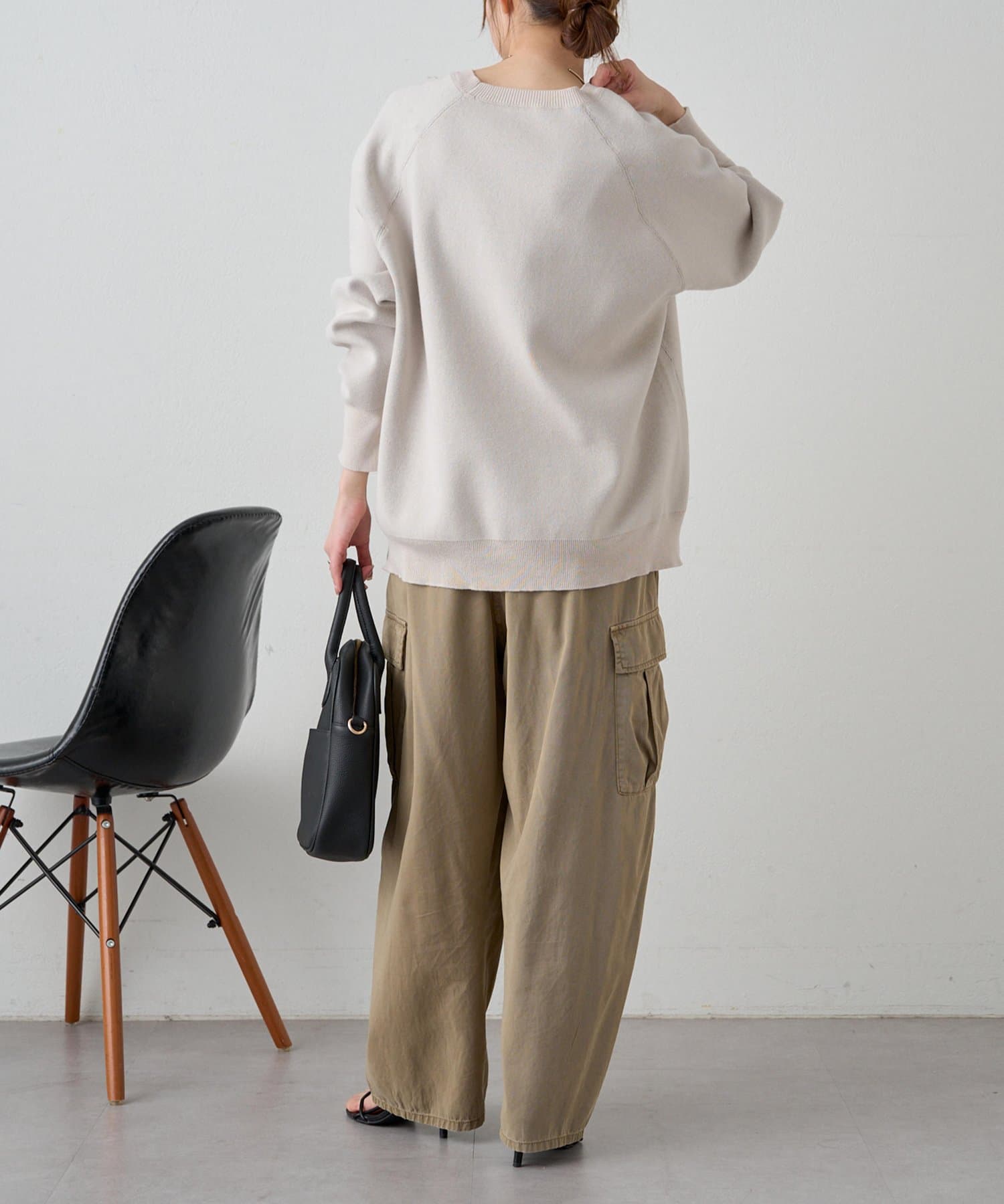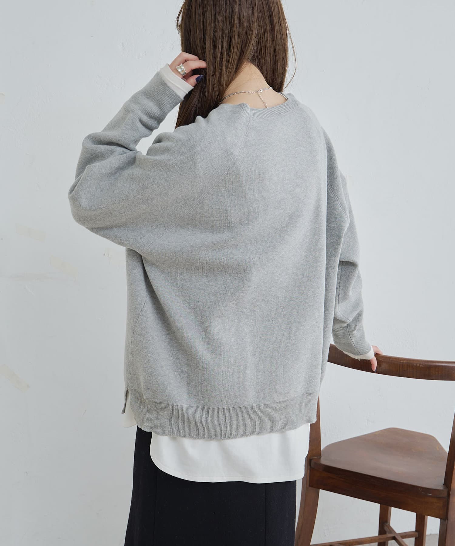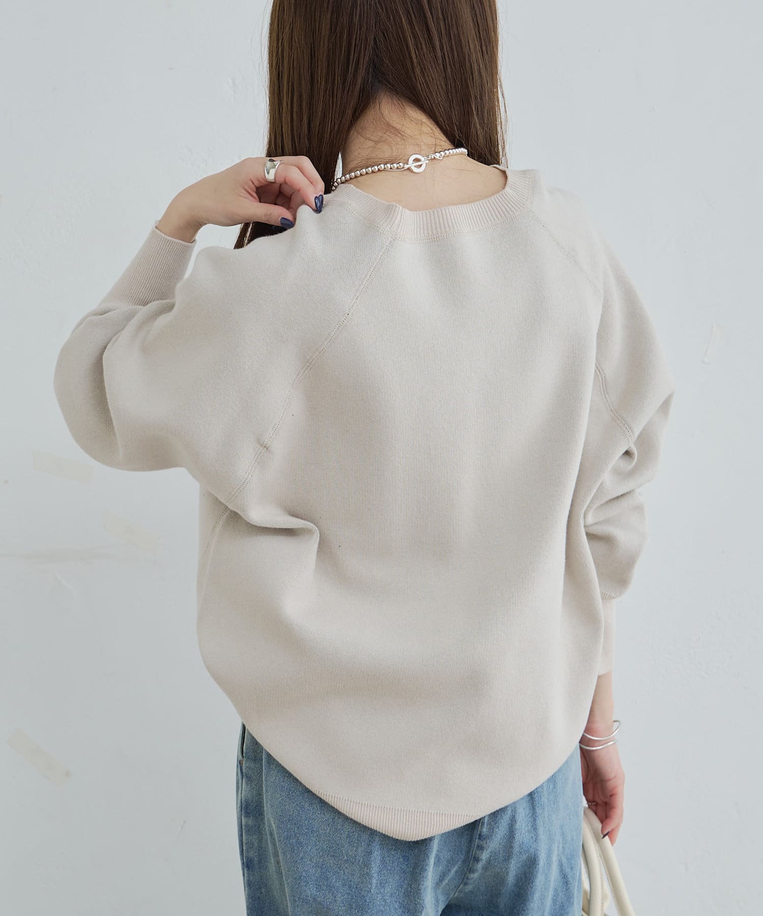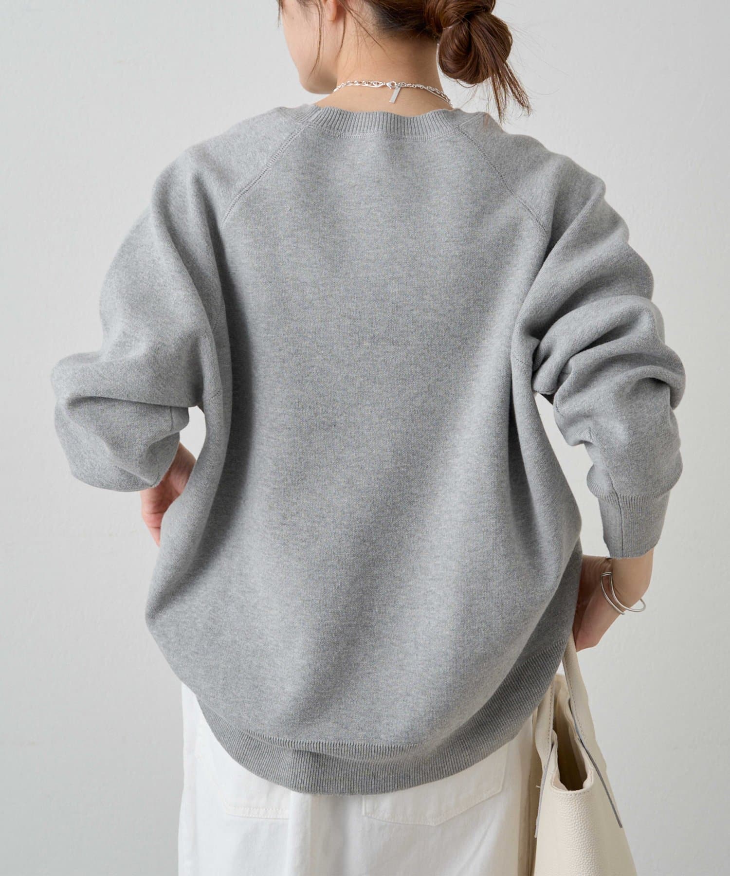スウェット風なデザインのニットで、どのようなアイテムでも合わせやすく、その日ごとに雰囲気を変えられる一着に。
