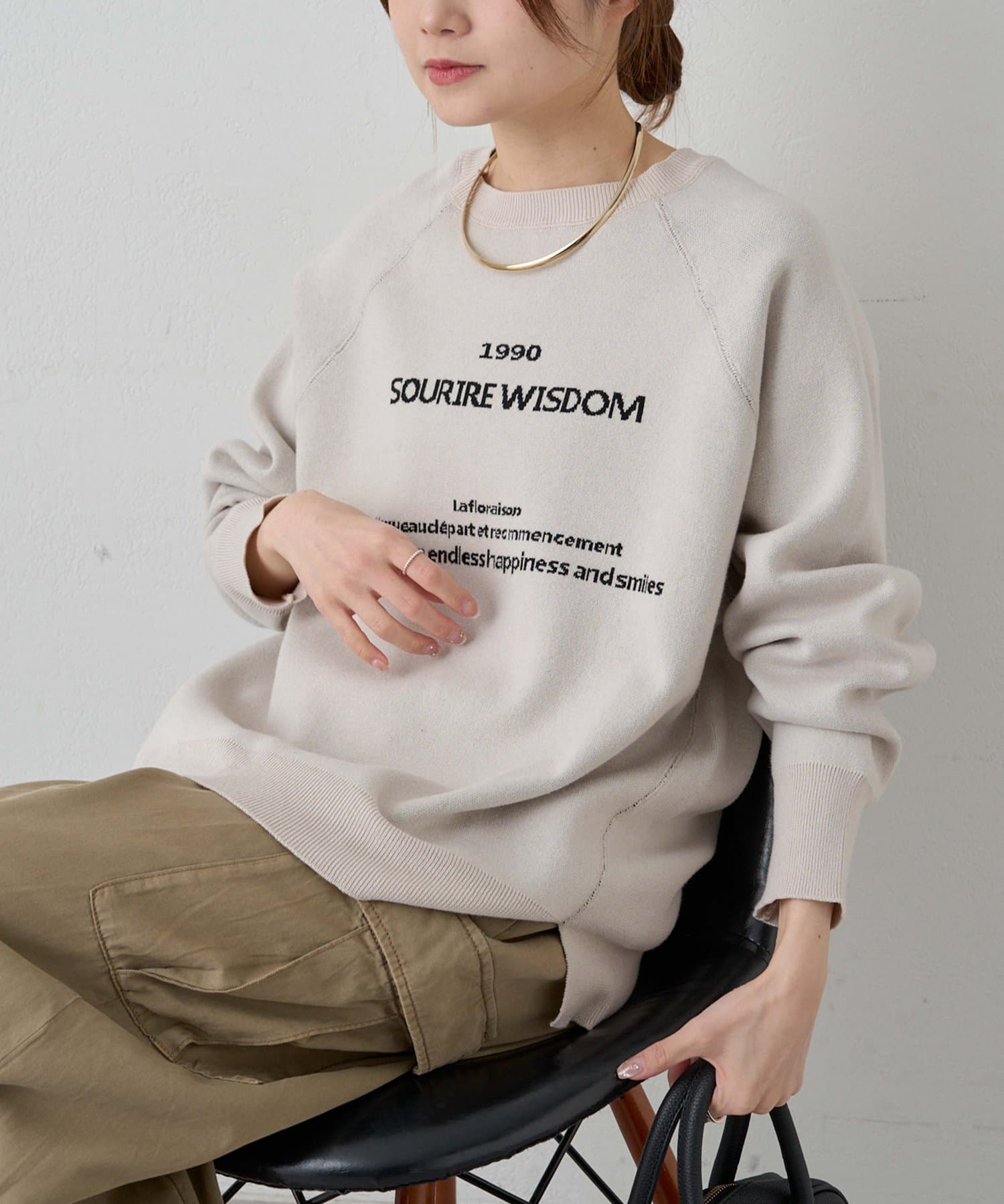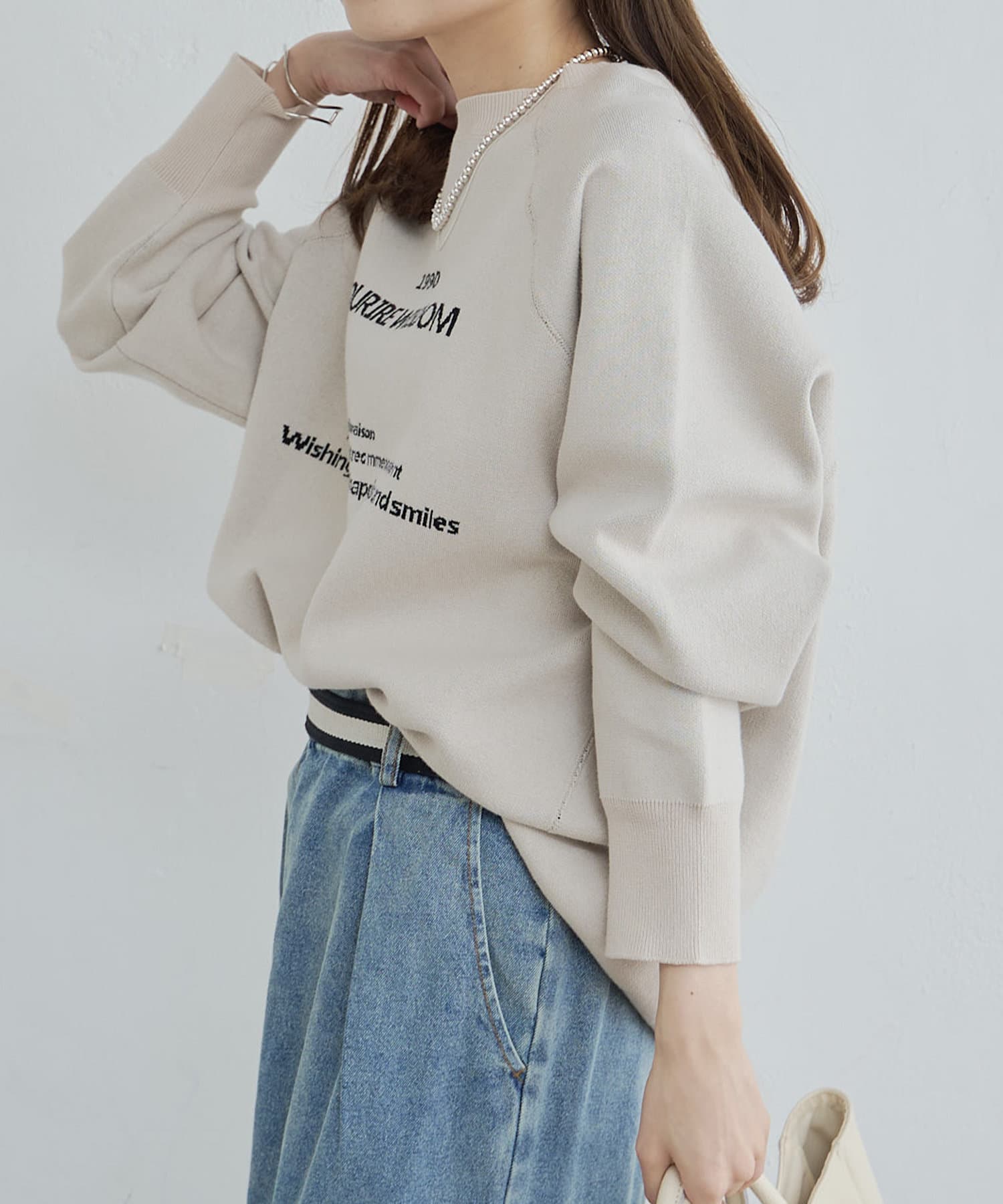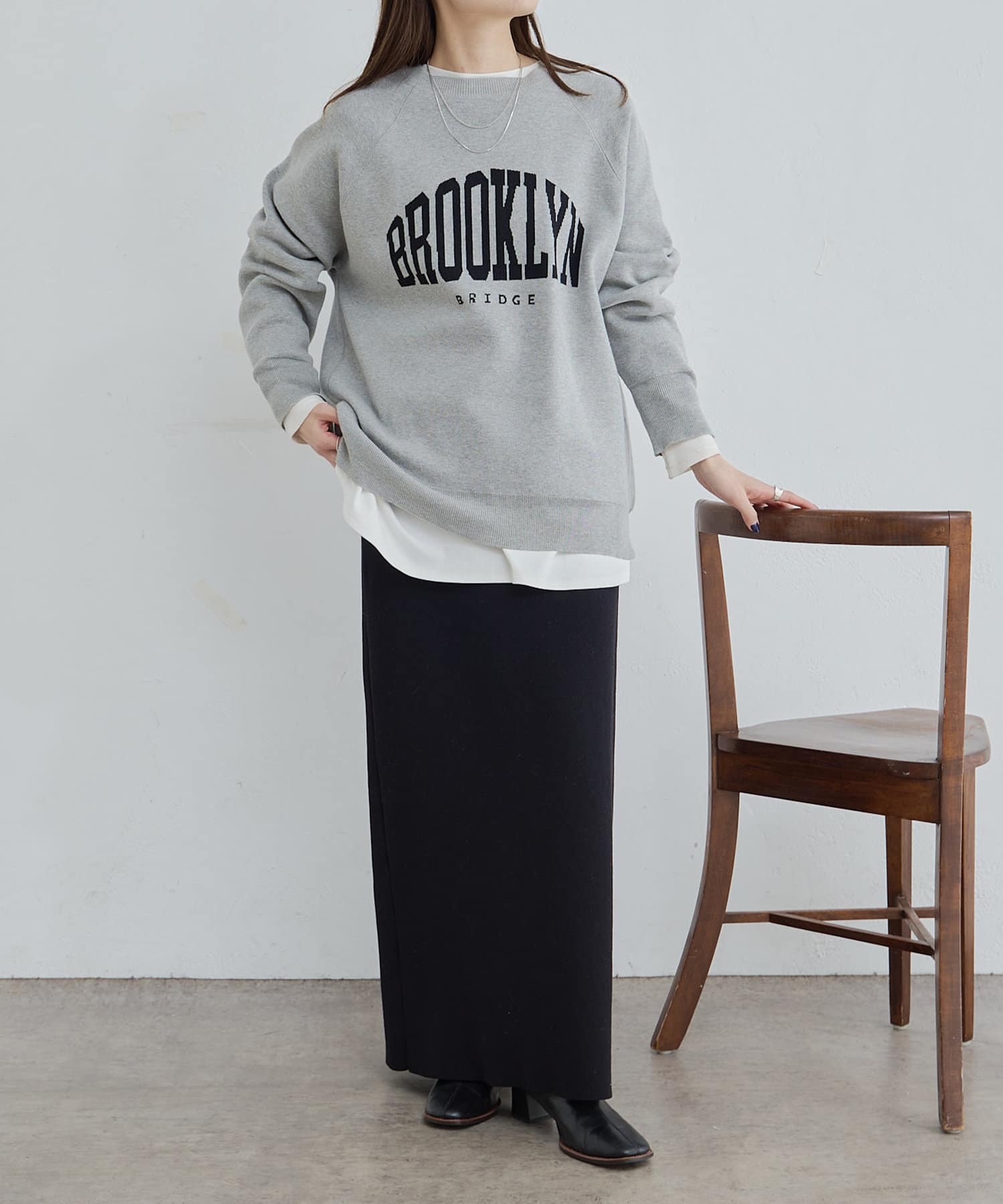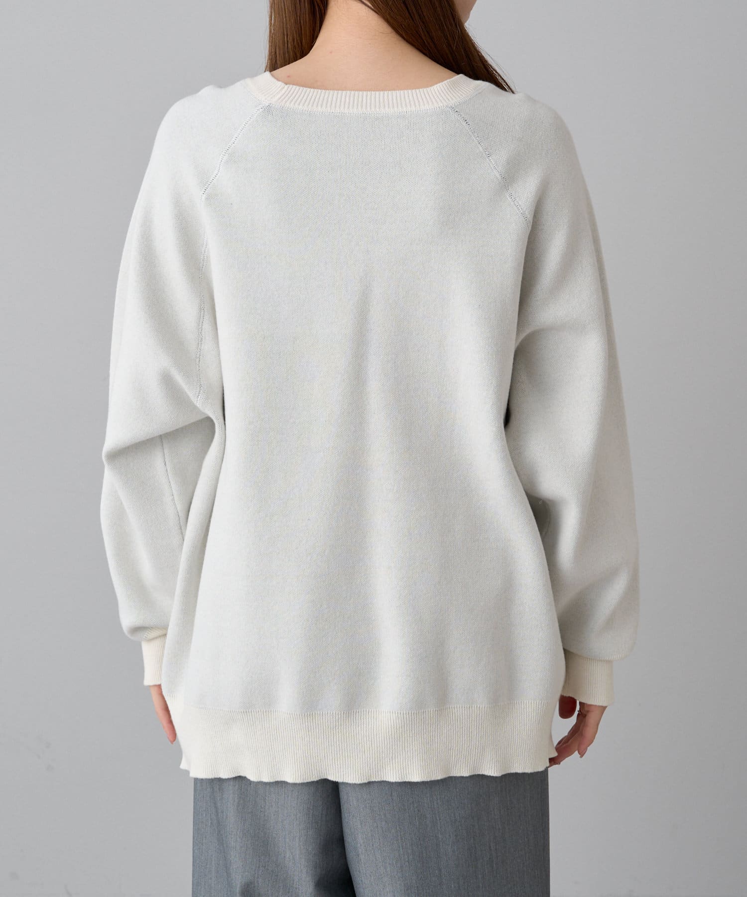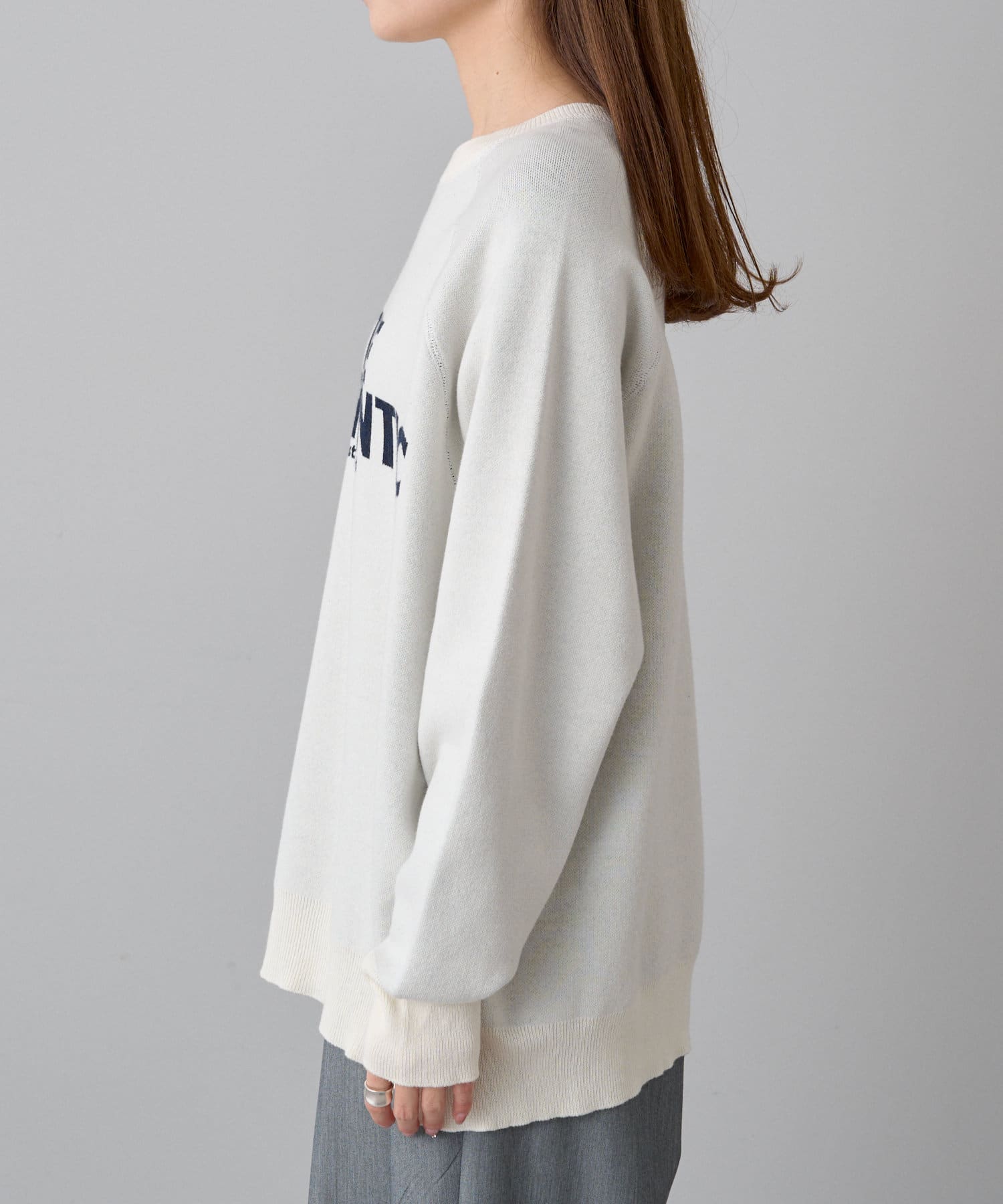 スウェット風なデザインのニットで、どのようなアイテムでも合わせやすく、その日ごとに雰囲気を変えられる一着に。