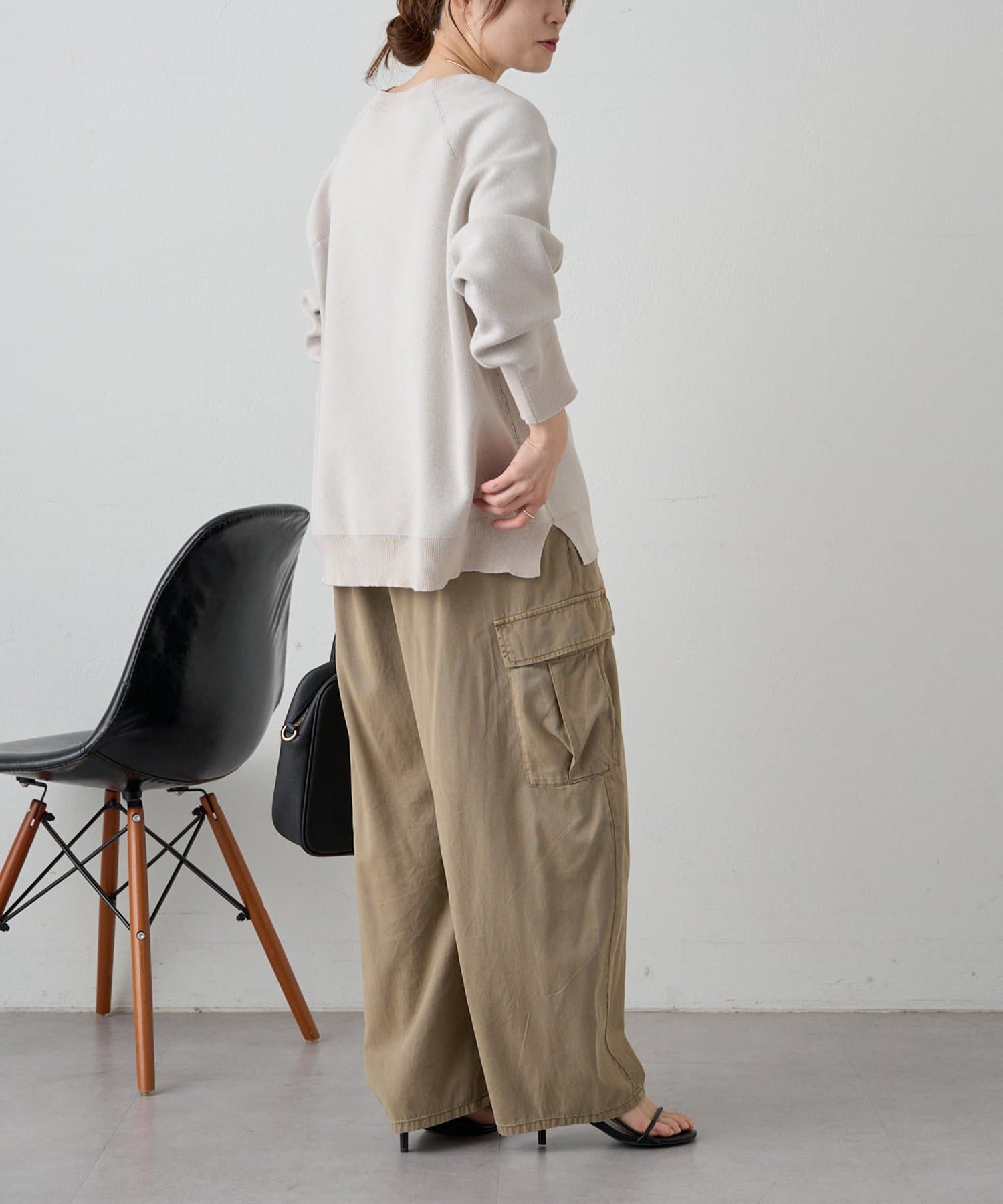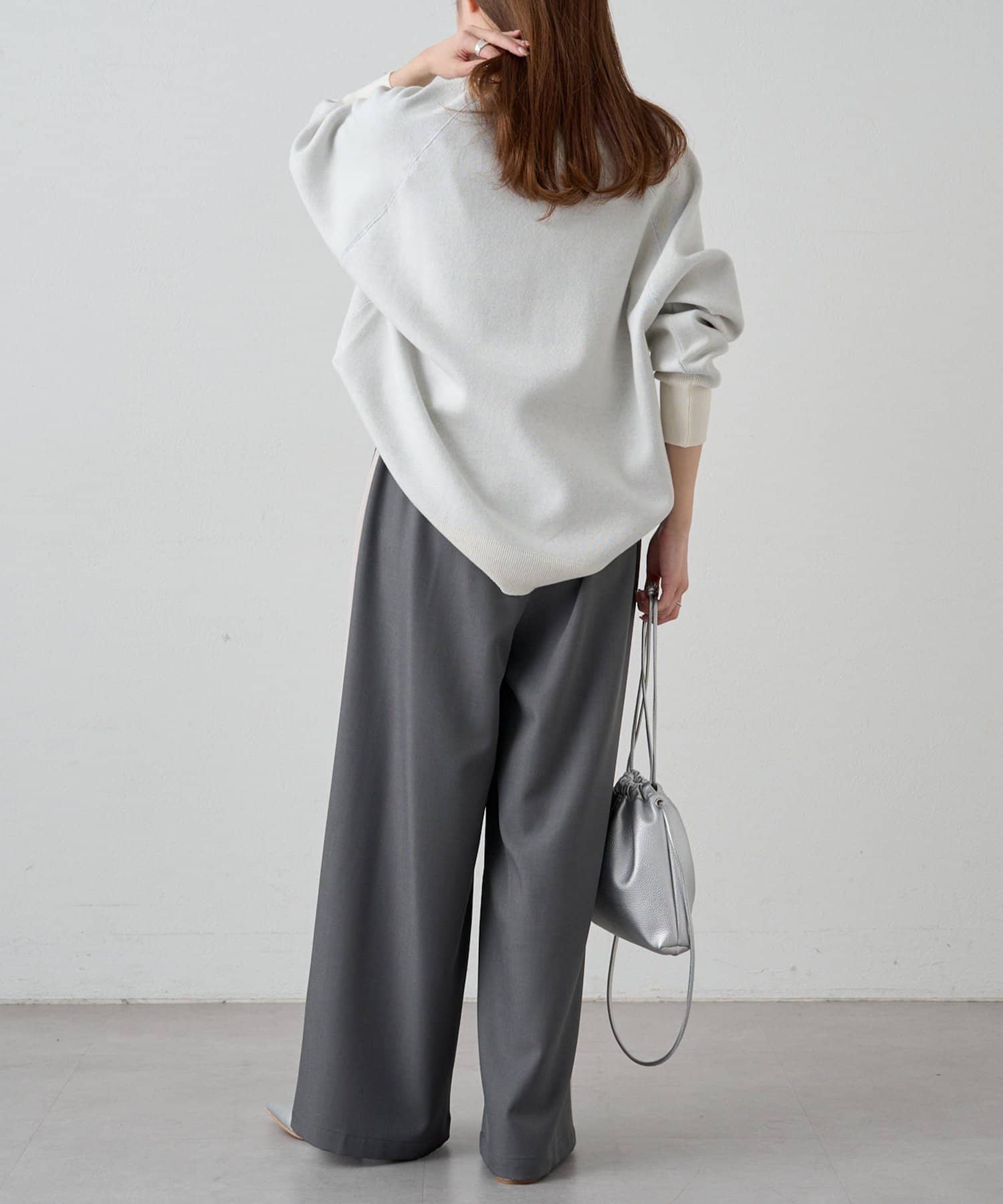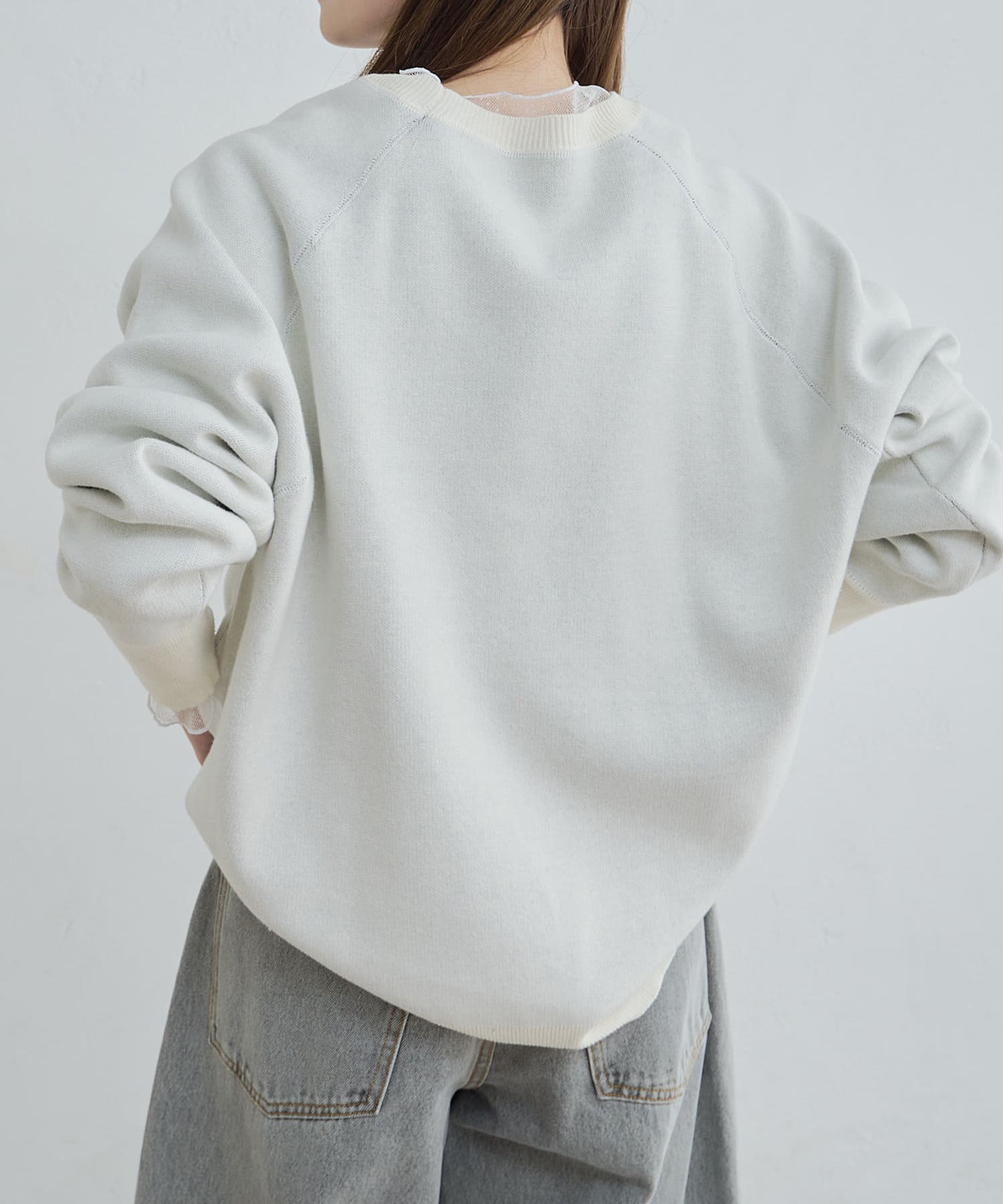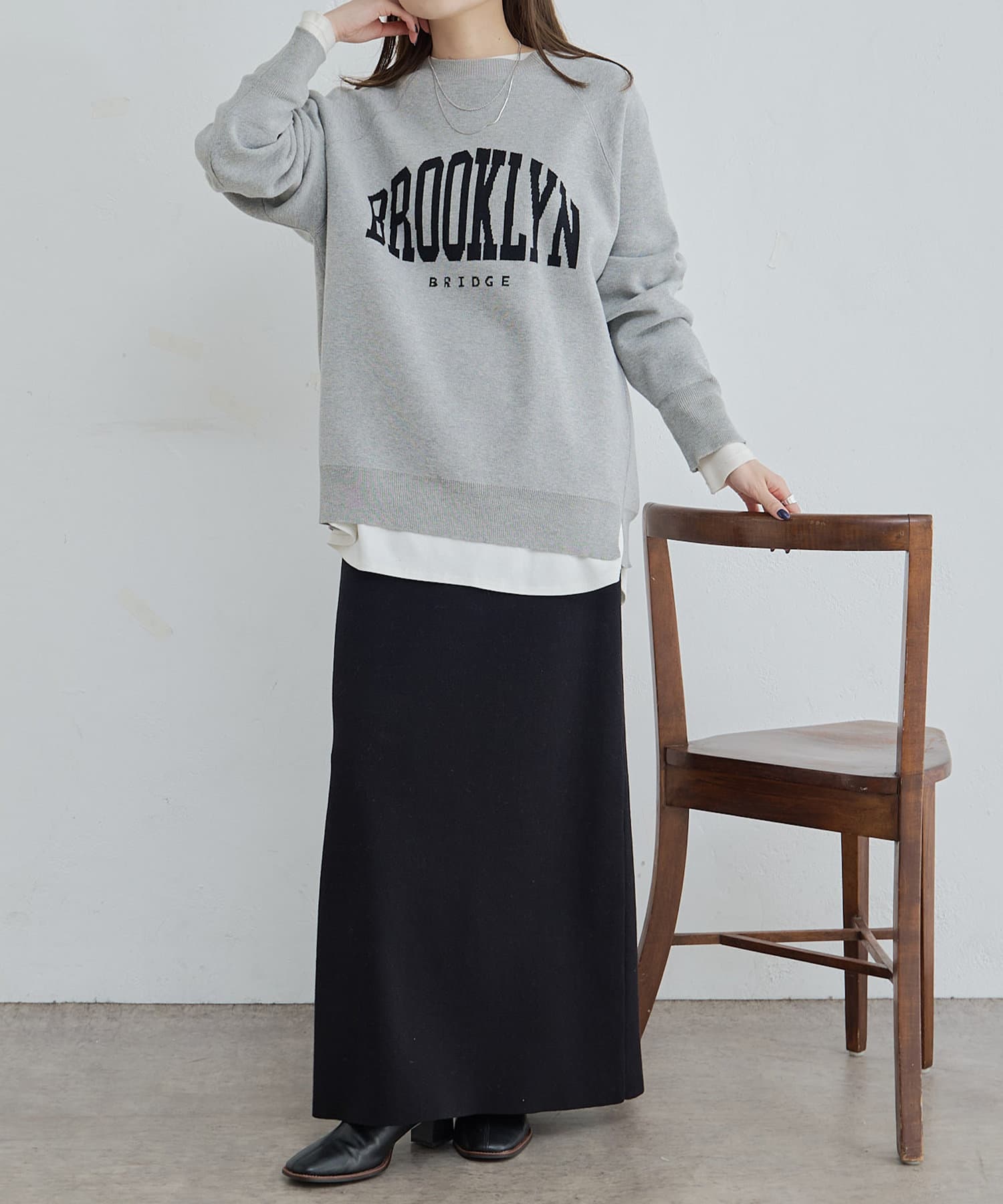 スウェット風なデザインのニットで、どのようなアイテムでも合わせやすく、その日ごとに雰囲気を変えられる一着に。