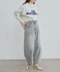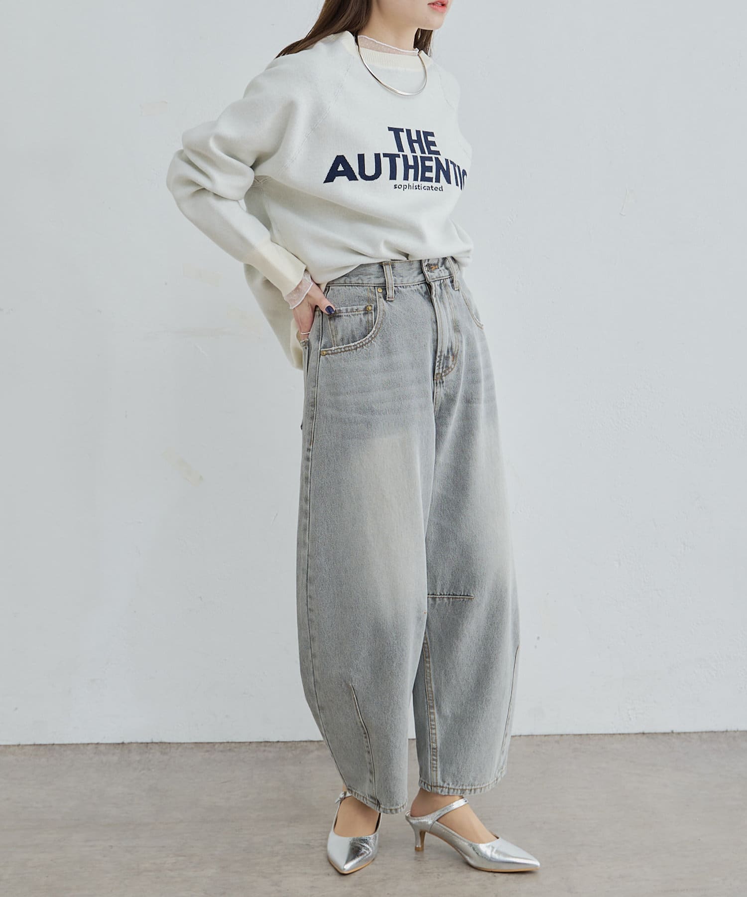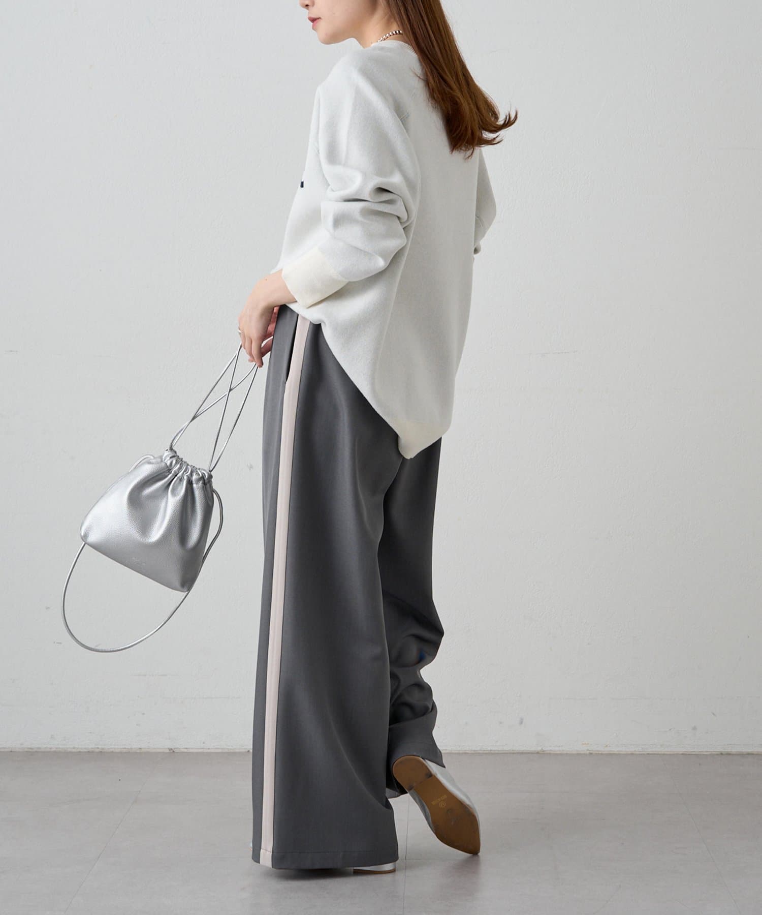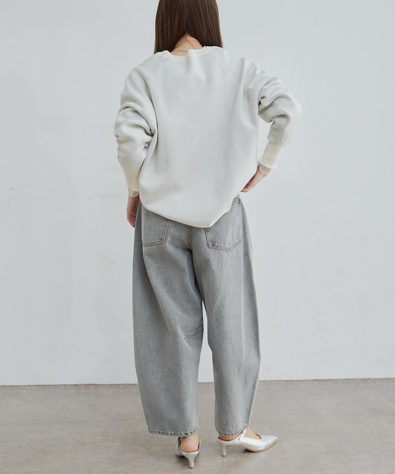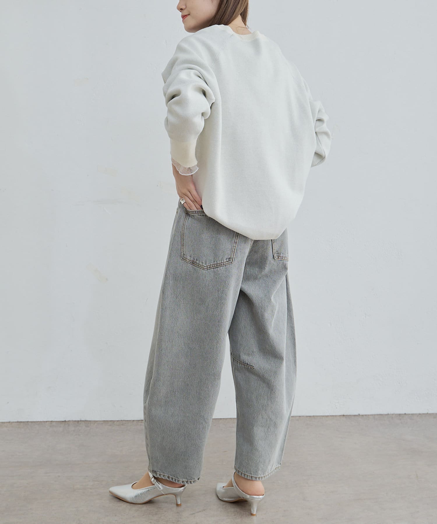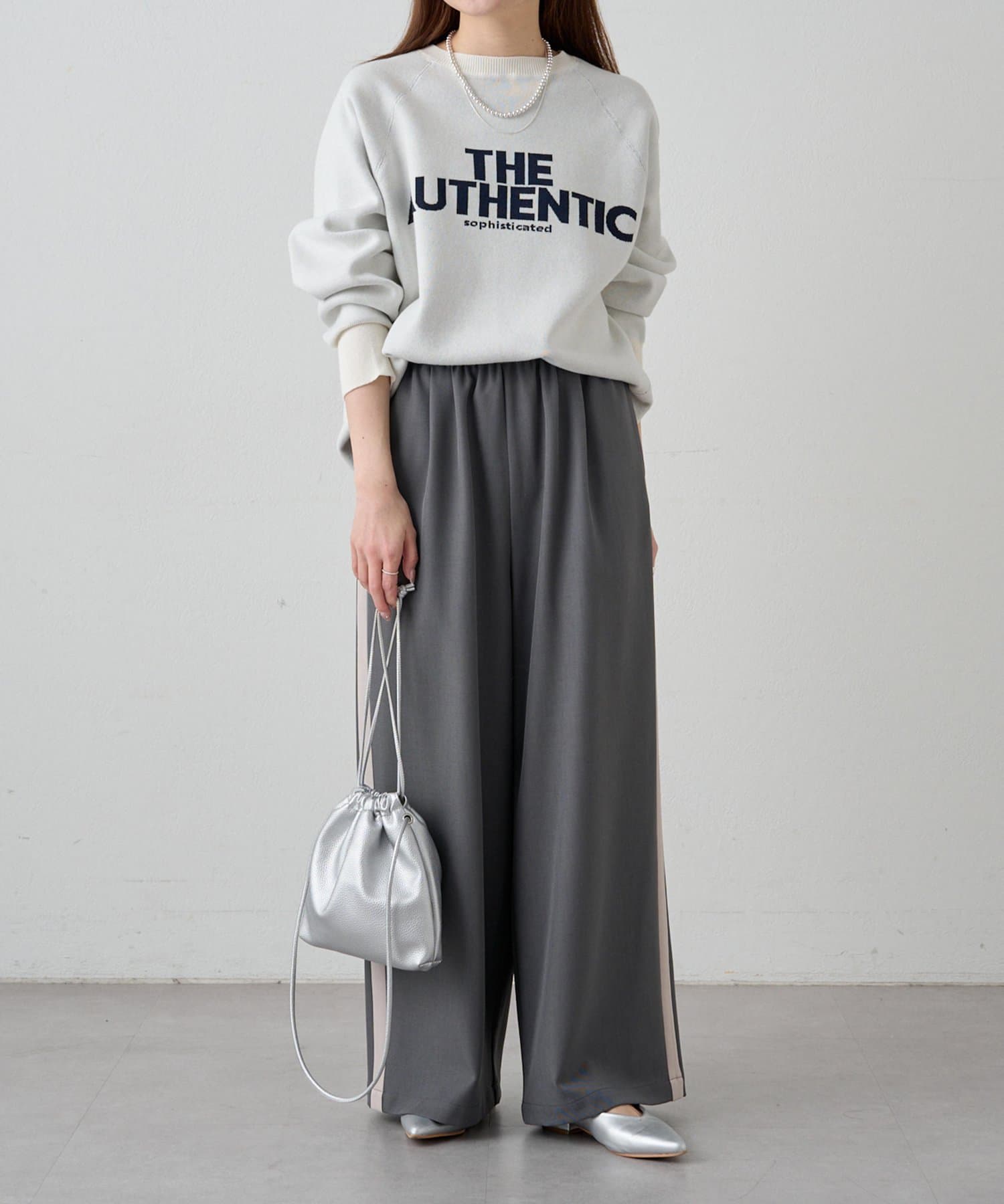 スウェット風なデザインのニットで、どのようなアイテムでも合わせやすく、その日ごとに雰囲気を変えられる一着に。
