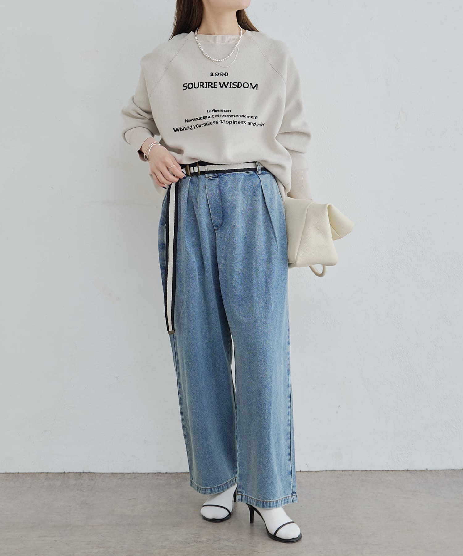 定番デニムを合わせた装いから、ふんわりとしたスカートまでお好きなボトムスを合わせられます。