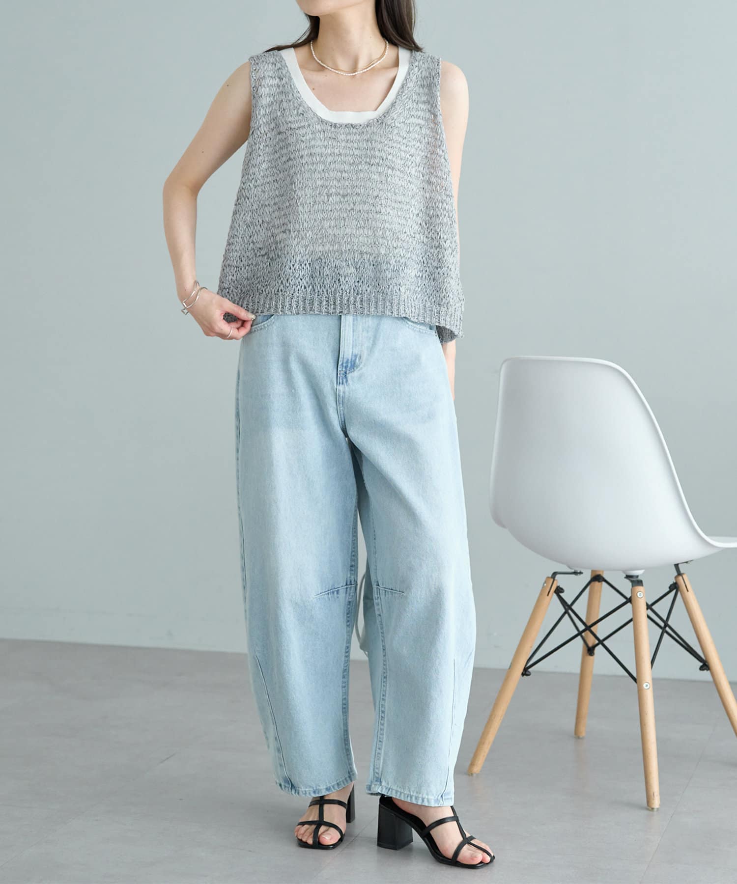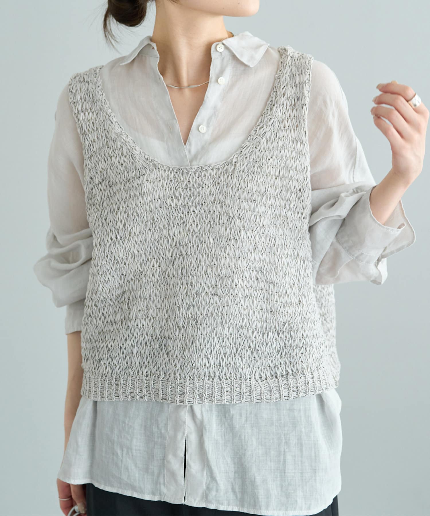 3G(ゲージ)とルーズに編むことで暑い時期でも軽やかで、抜け感あるコーディネートが楽しめます。
