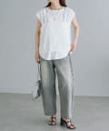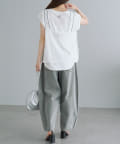 Tシャツと合わせたカジュアルなスタイルは、涼やかな装いになり暑くなる時期にぴったり。