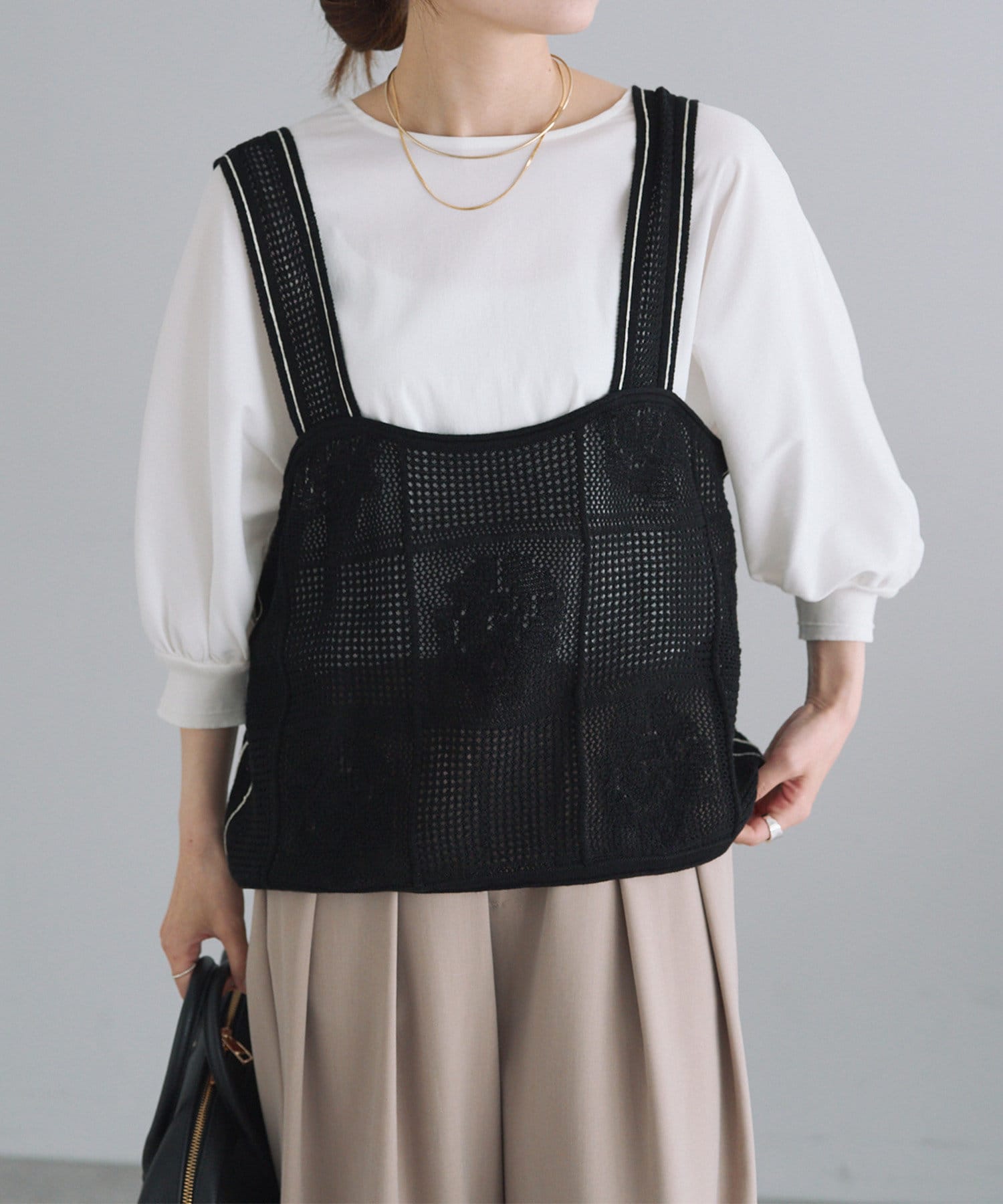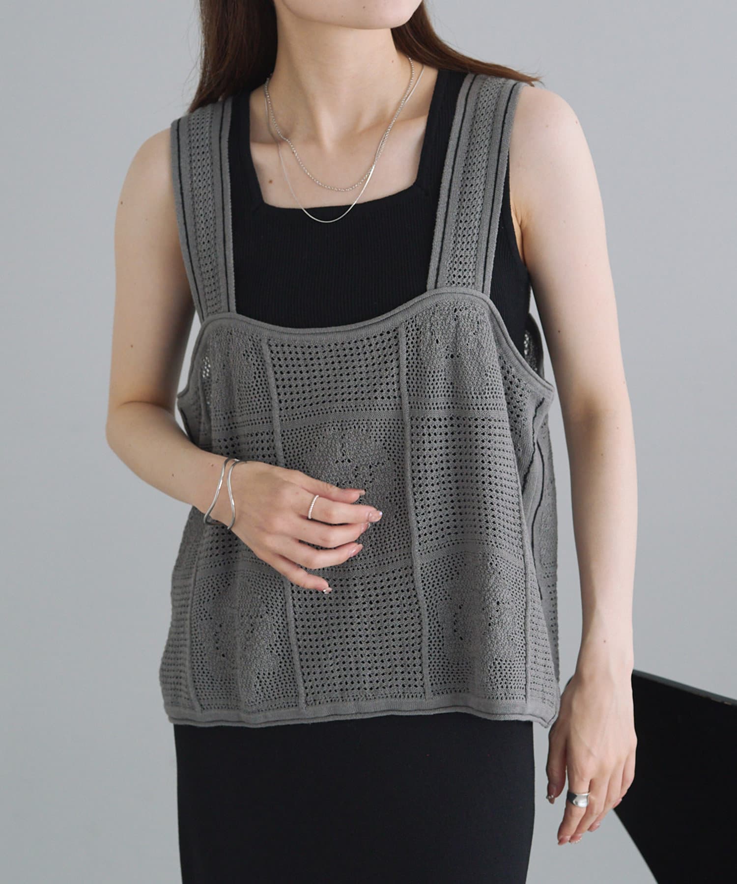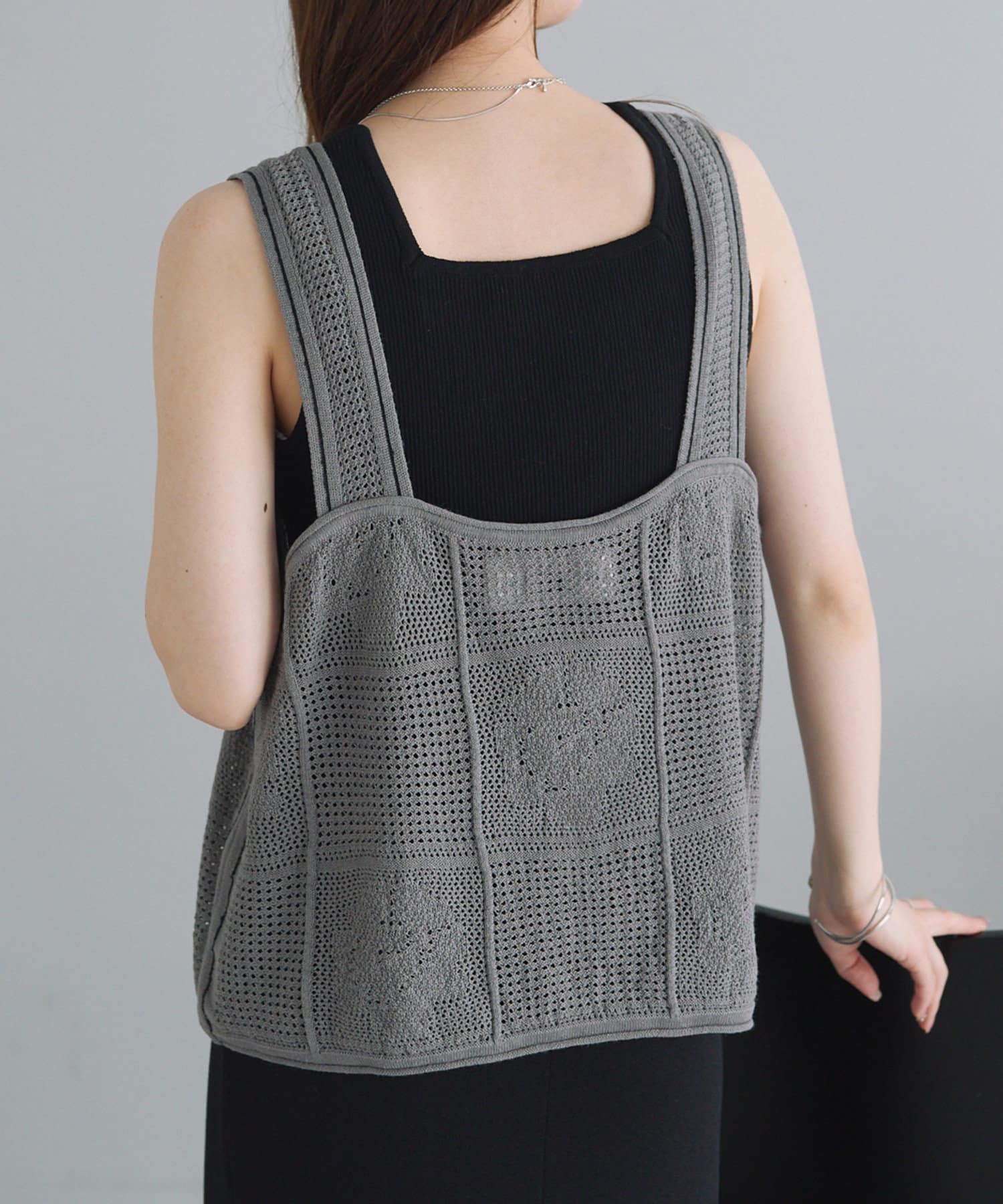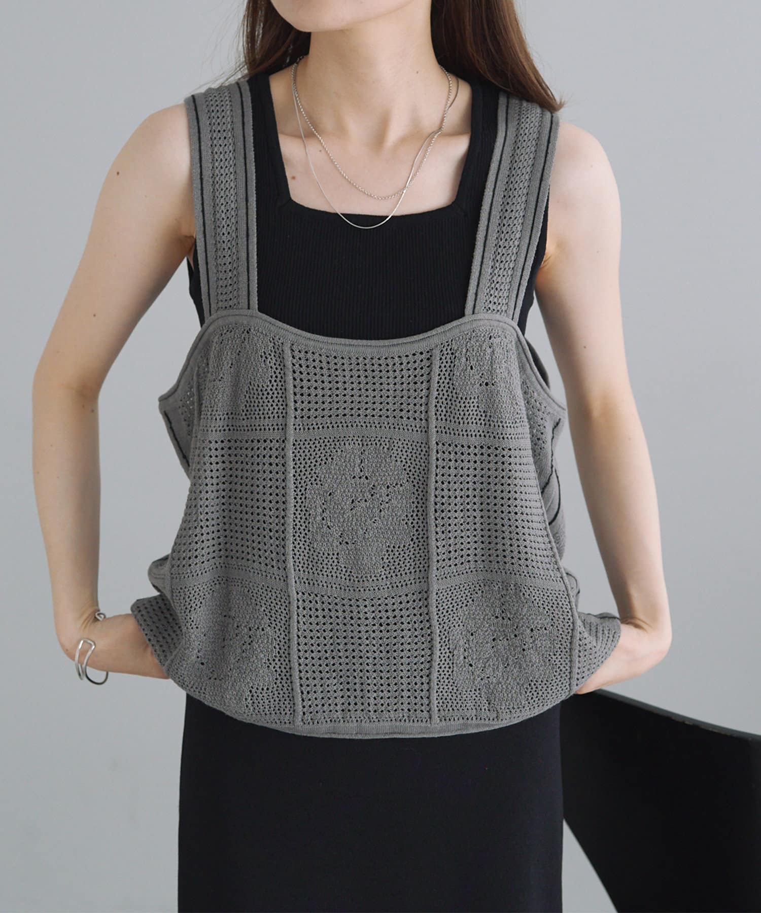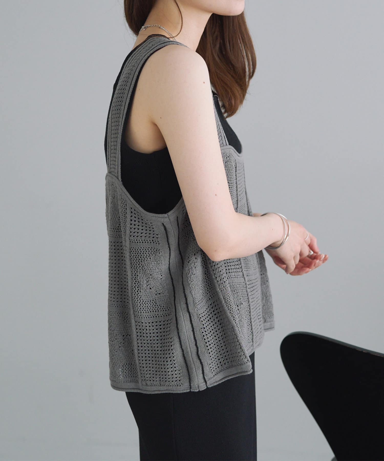 程よい透け感のある柄がシーズンムードを盛り上げるニットビスチェ。