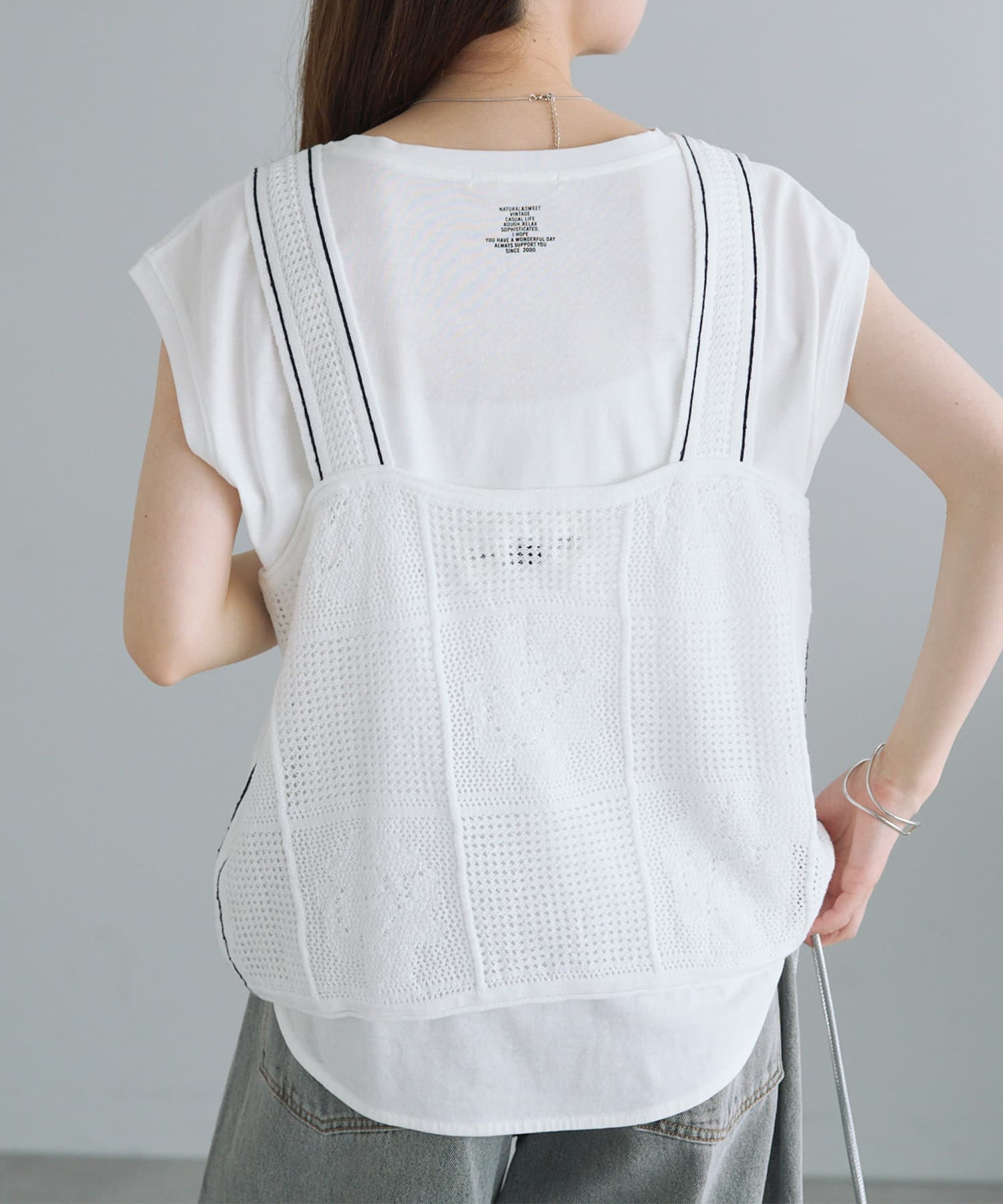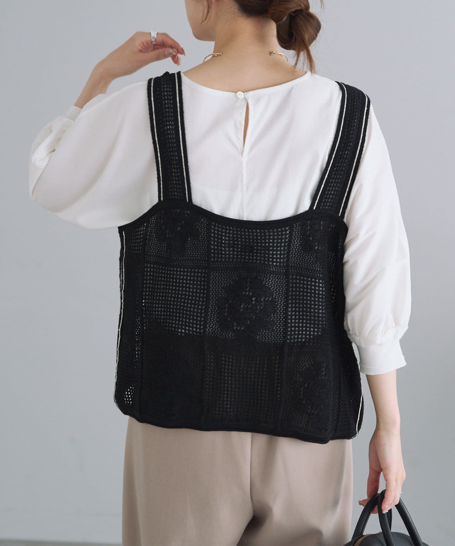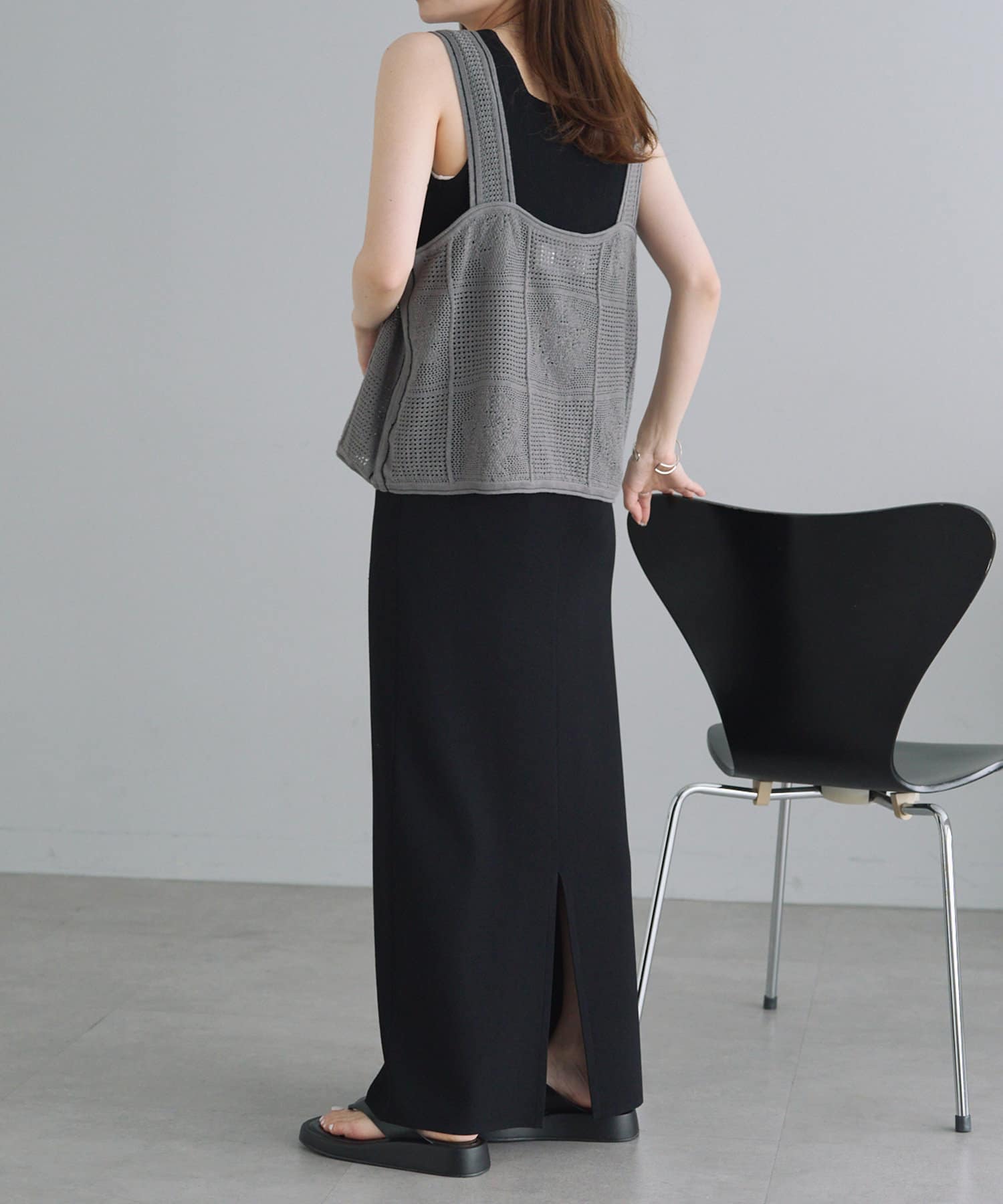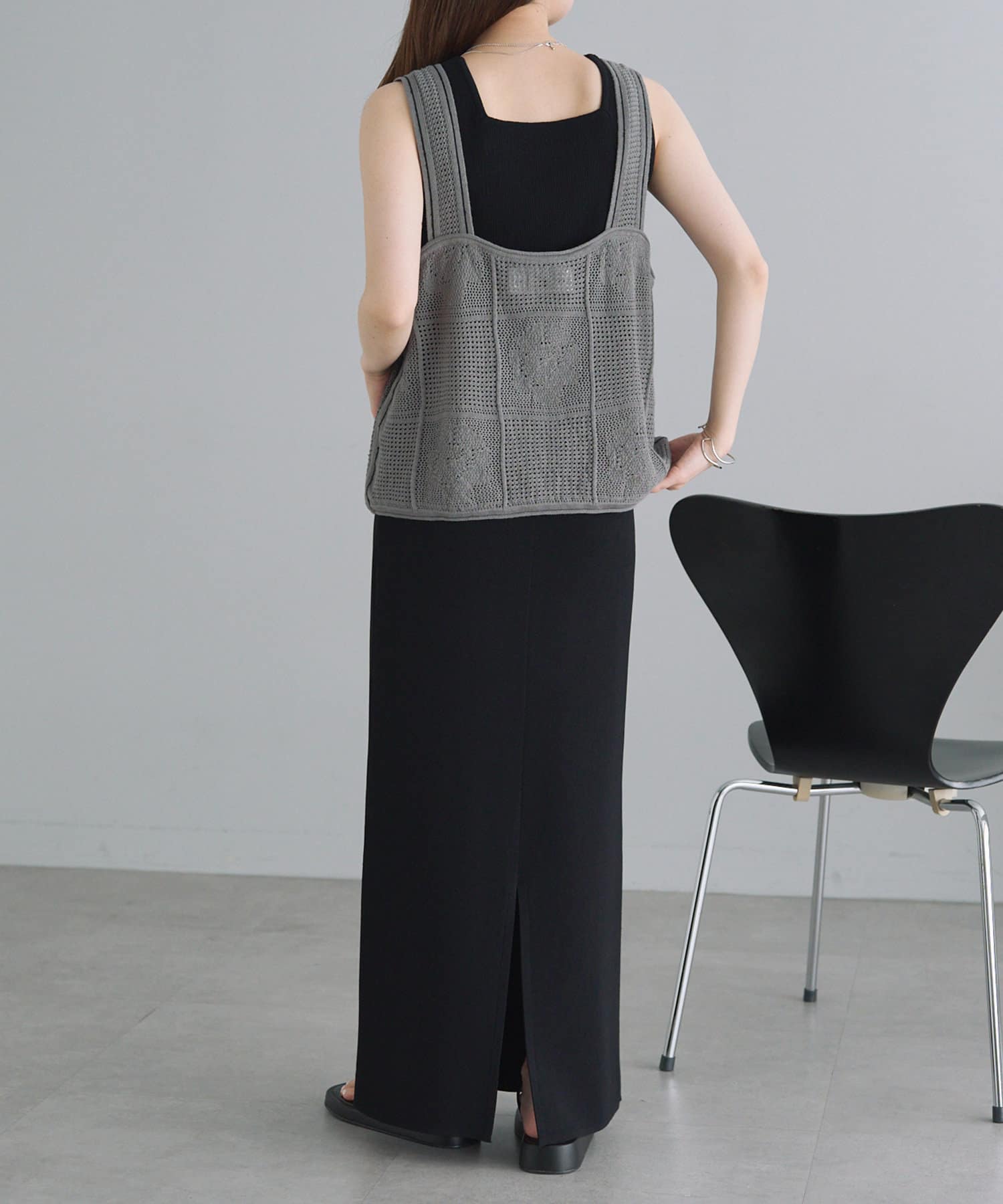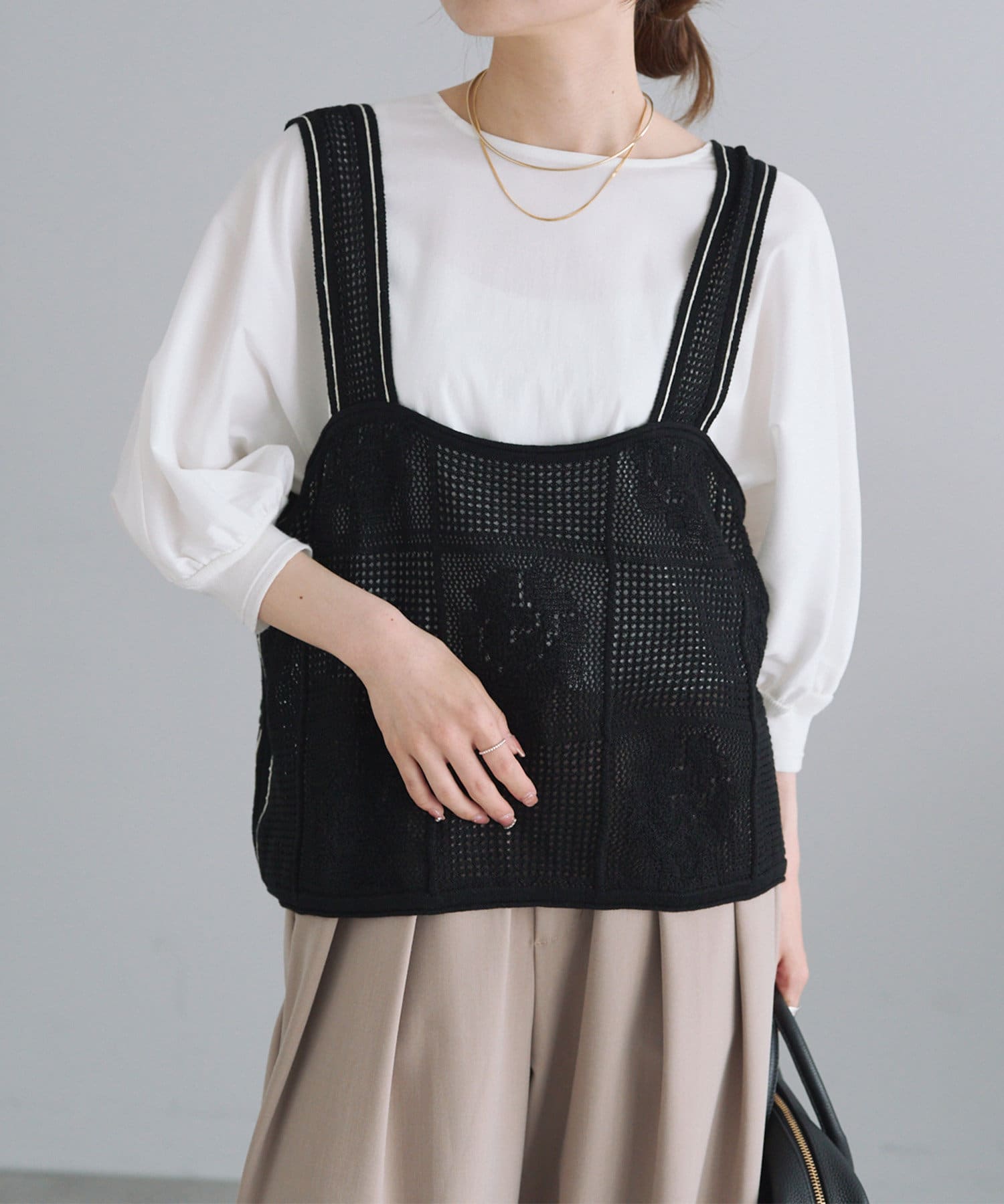 程よい透け感のある柄がシーズンムードを盛り上げるニットビスチェ。