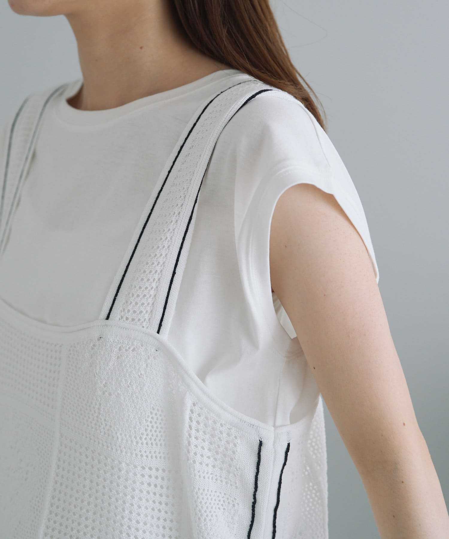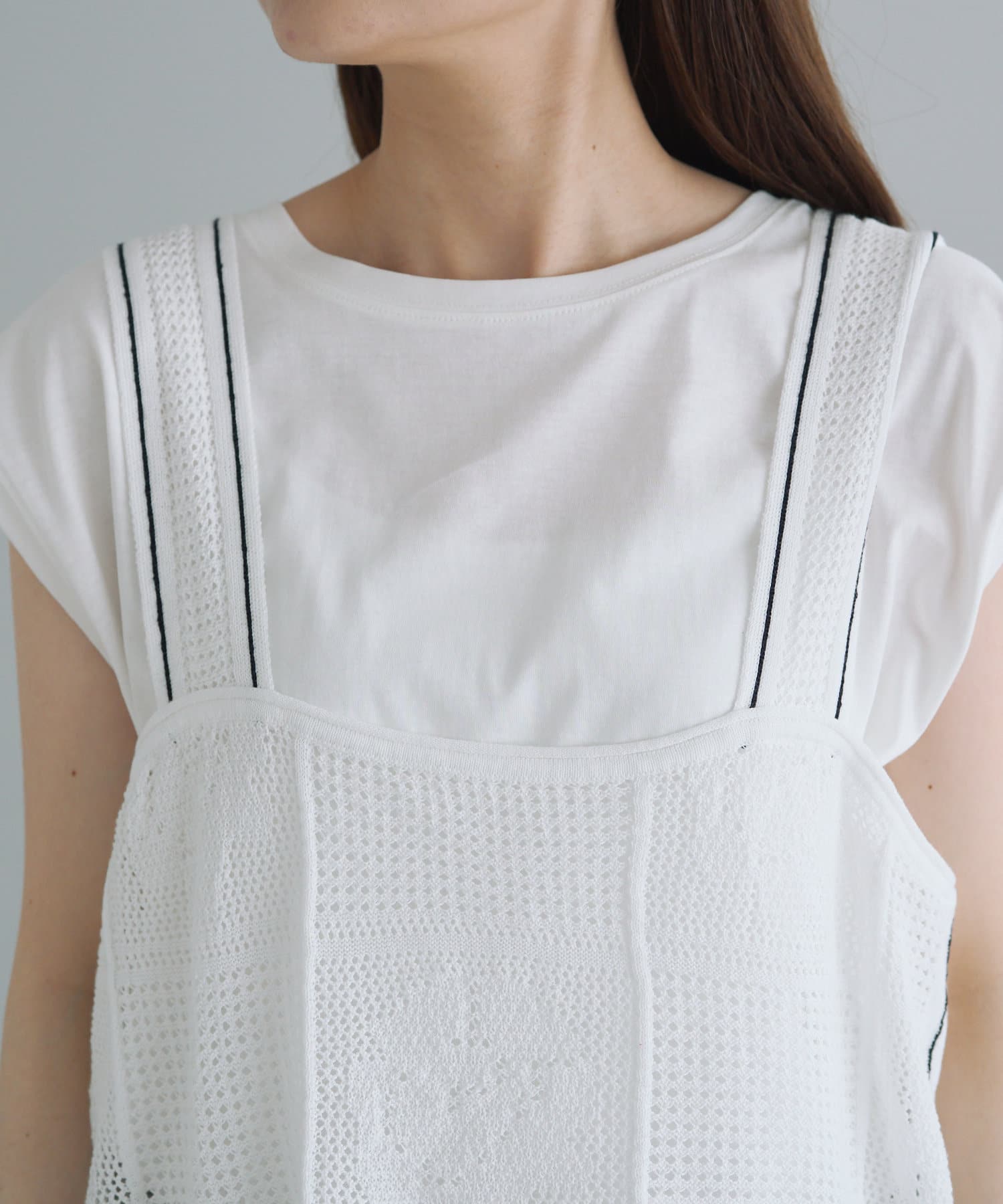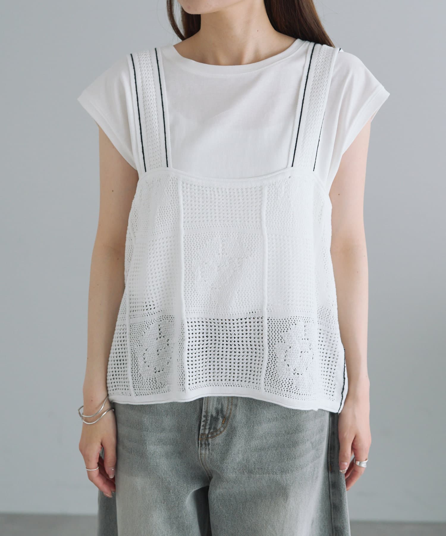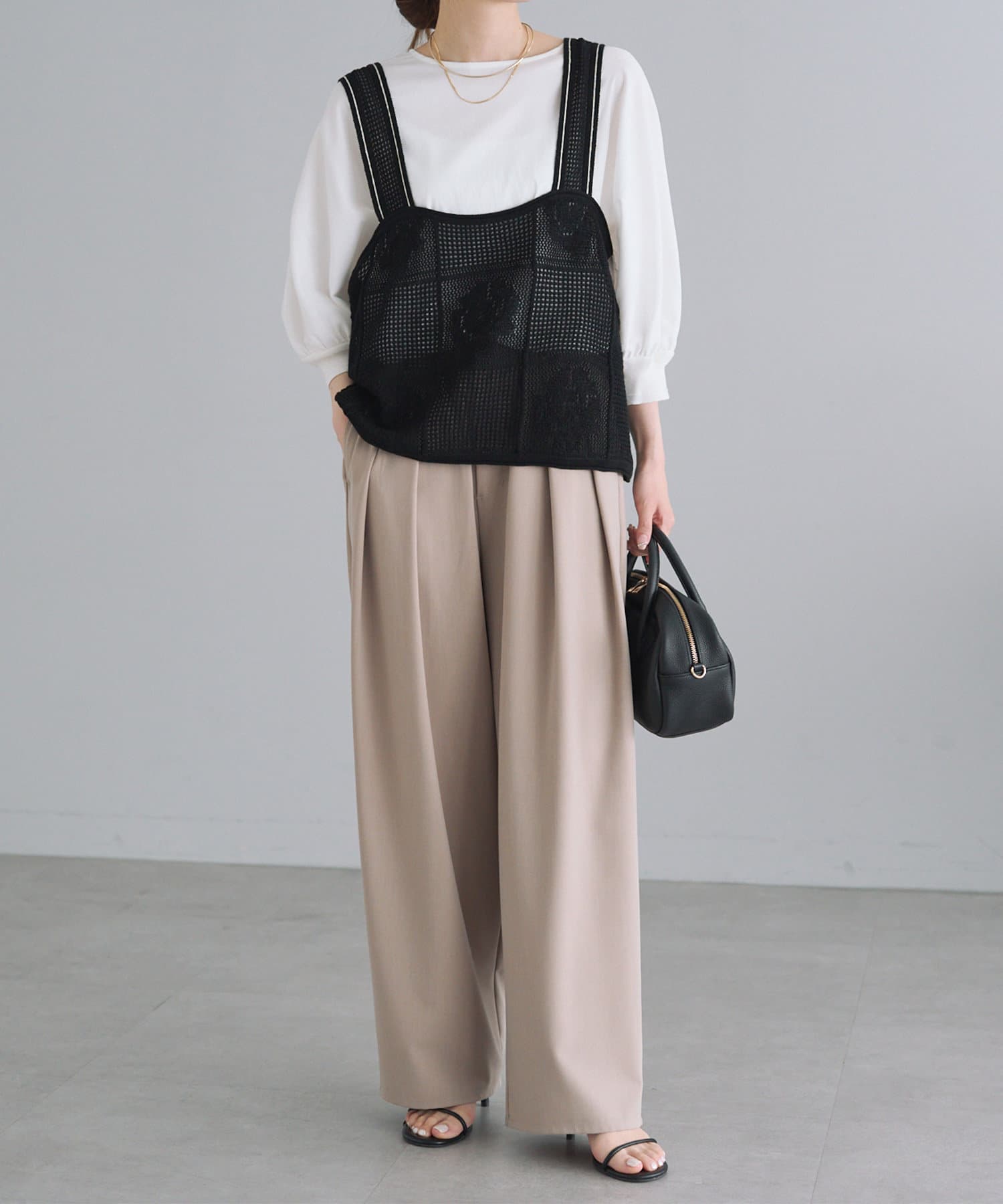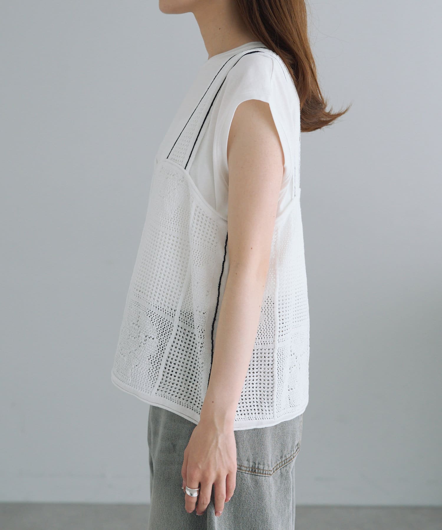 程よい透け感のある柄がシーズンムードを盛り上げるニットビスチェ。