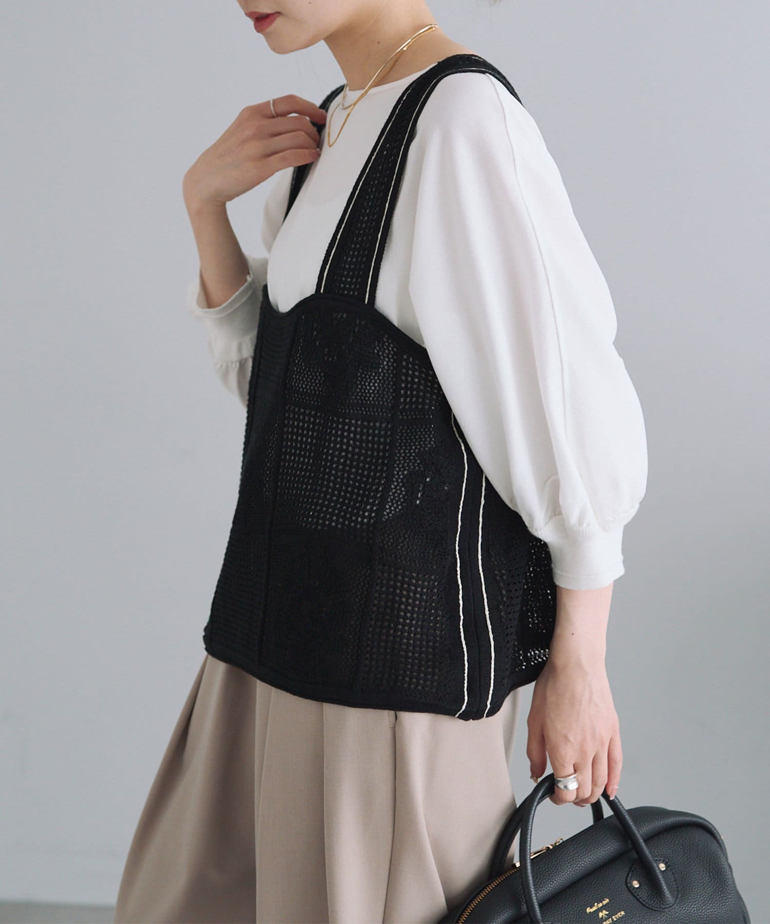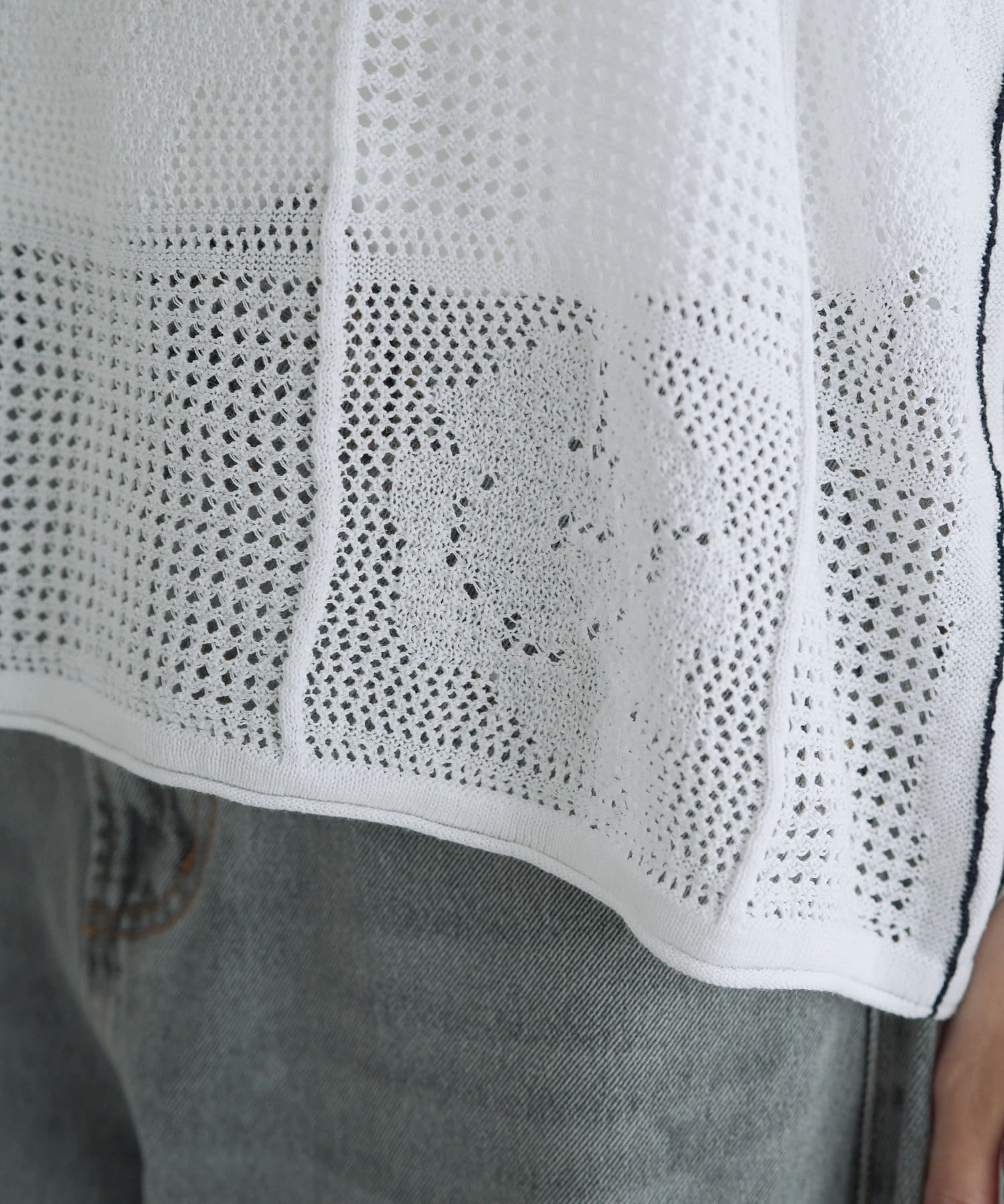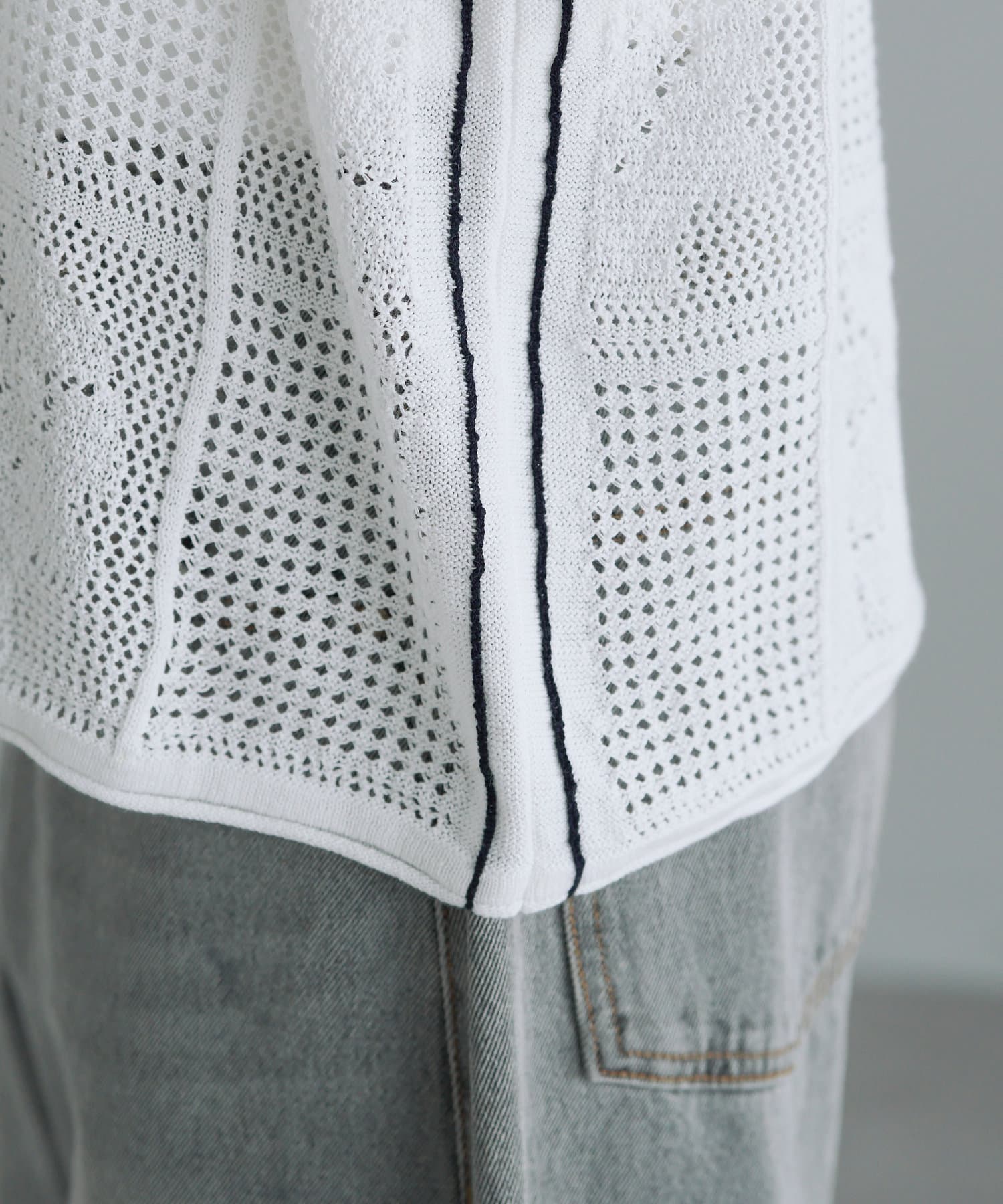 ミックスされた透かし編みの柄デザインは、軽やかでありながらコーディネートを華やかに。