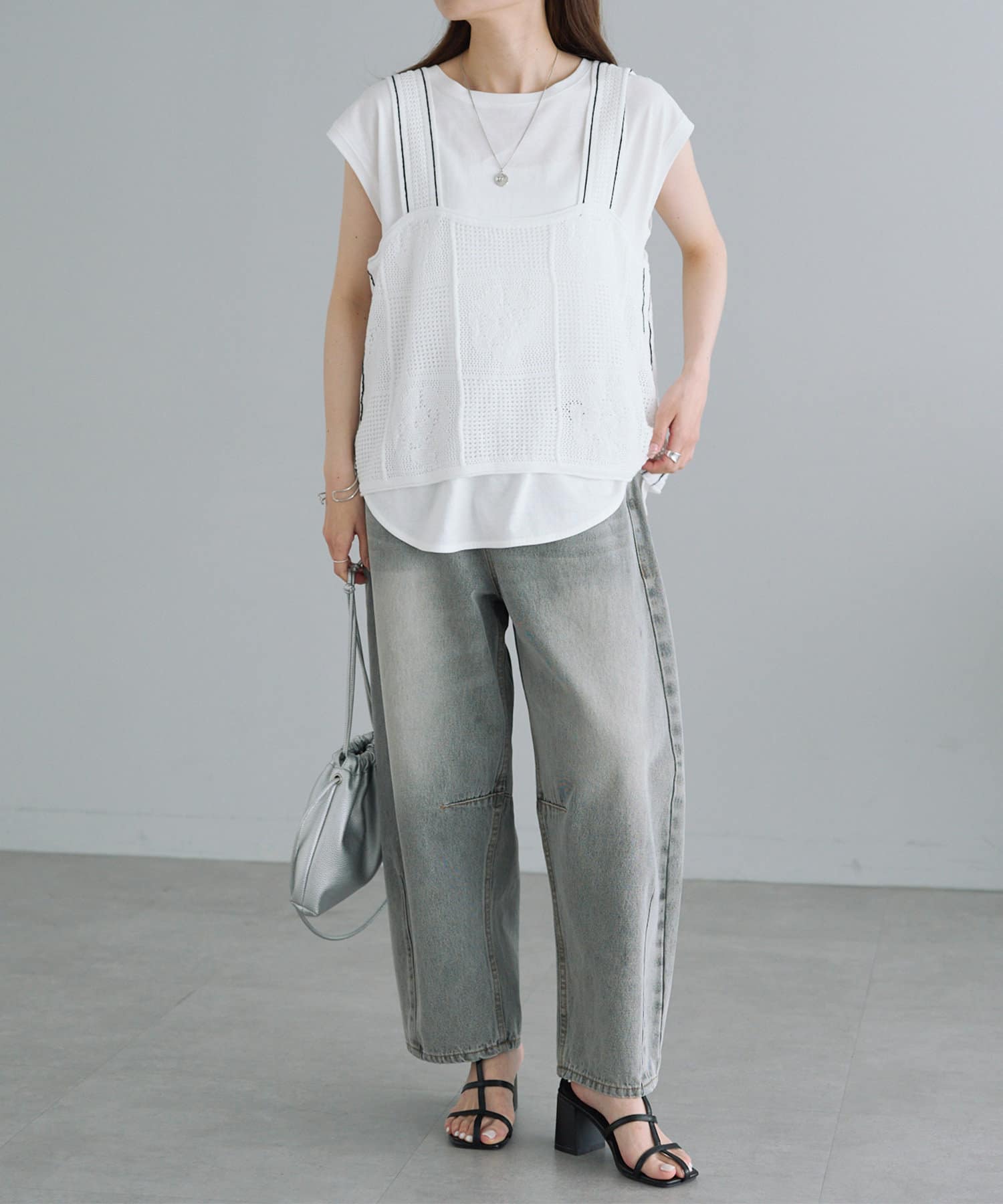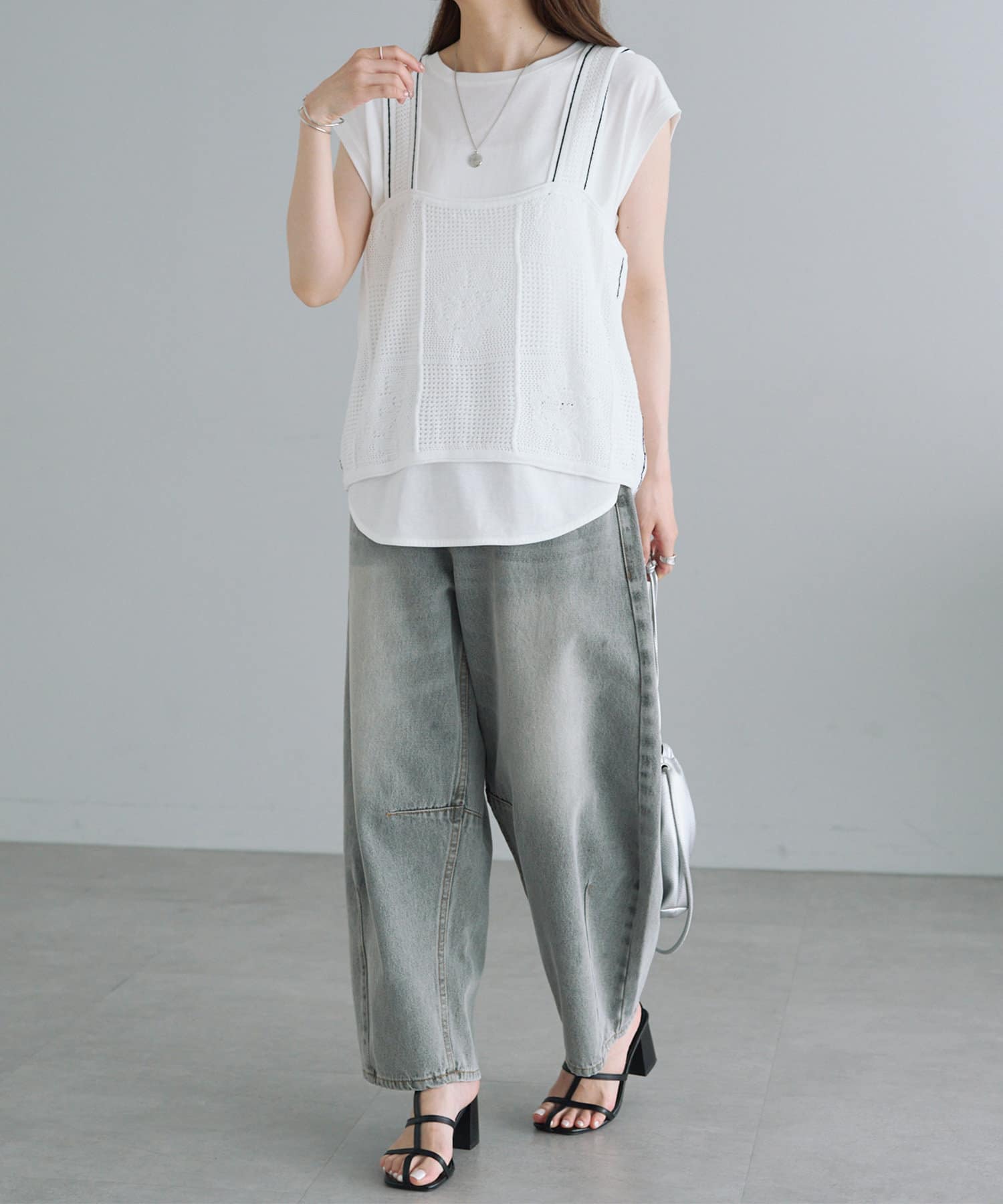 スクエアタンクと合わせ、シャツを羽織ればヘルシーな肌見せも叶います。