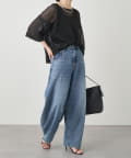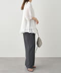カーブパンツやフレアスカートなどワイドなボトムスとの装いもバランスが取りやすいです。