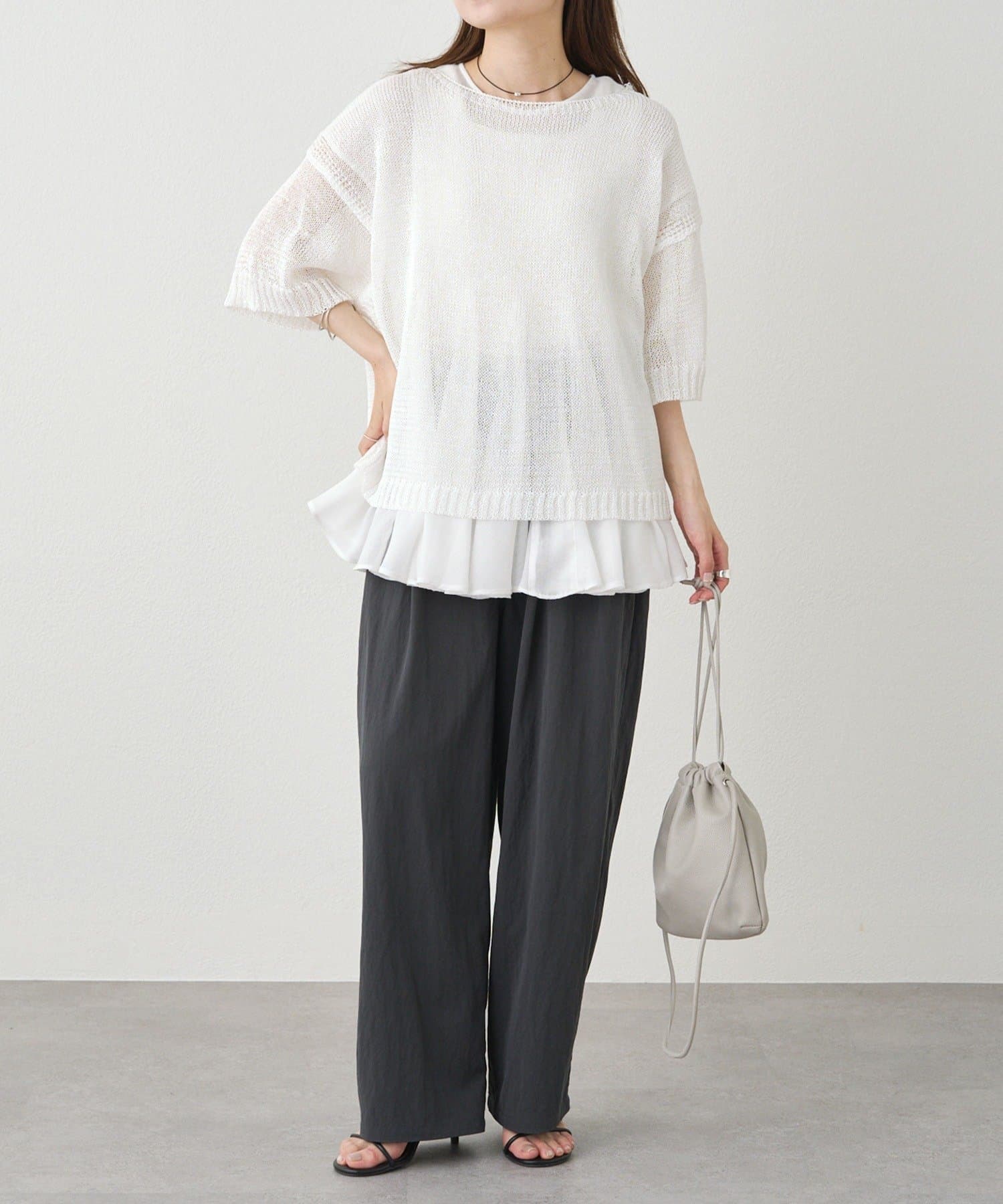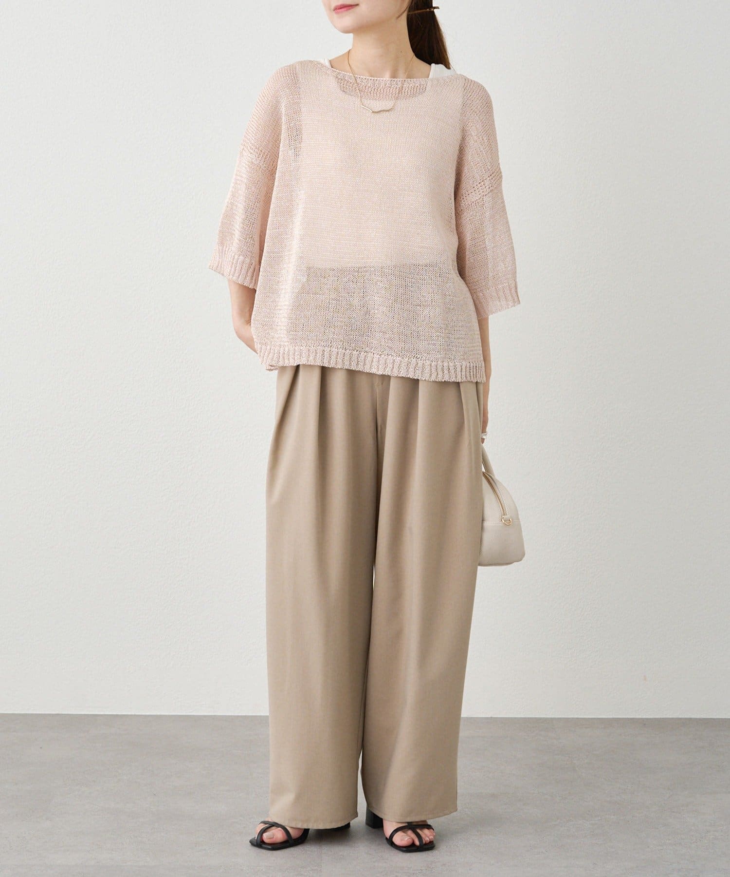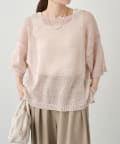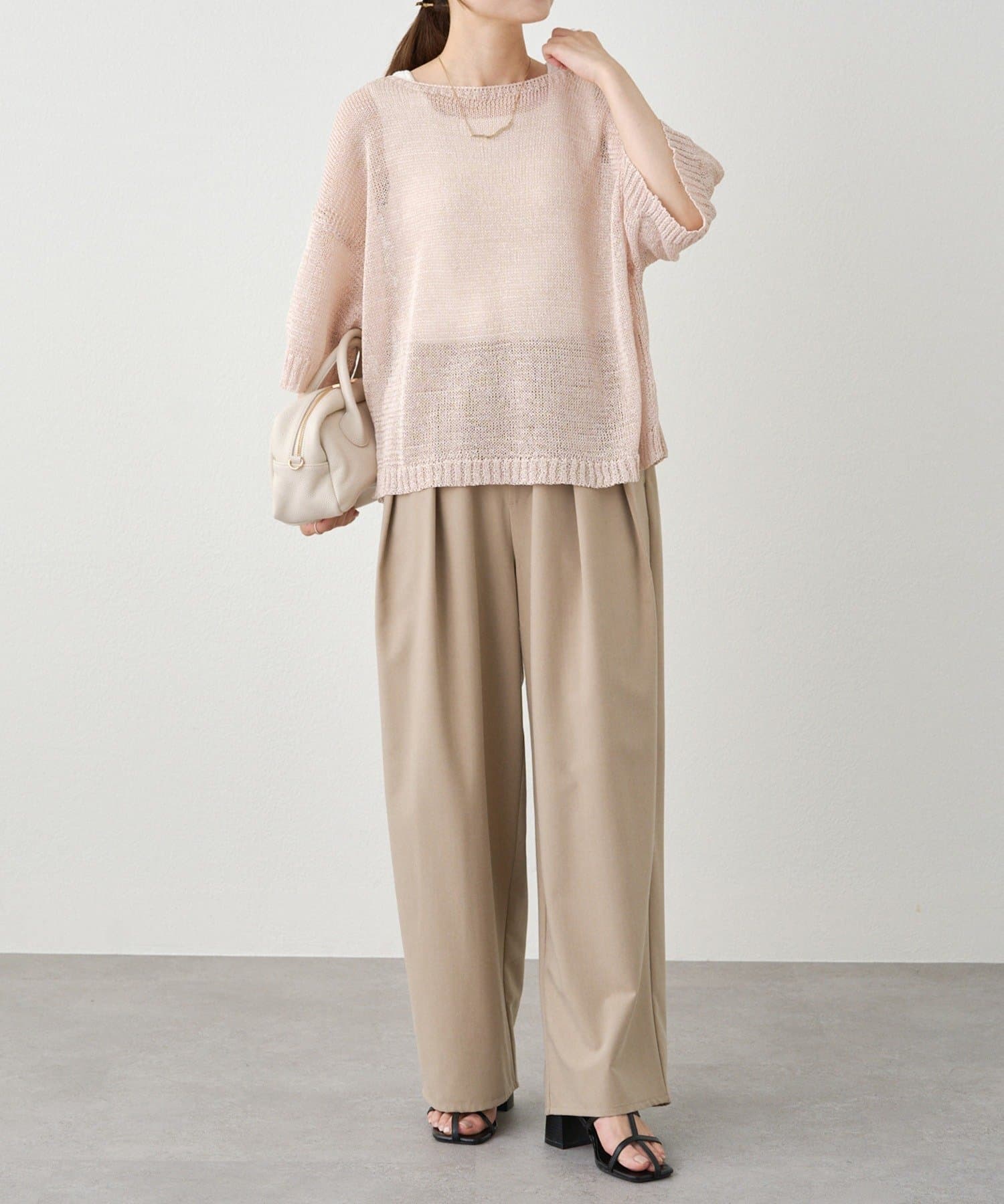 ゆったりシルエットのトップスでも編地の透け感が軽やかで、
