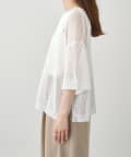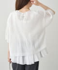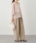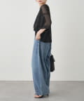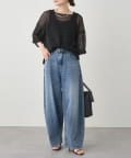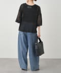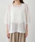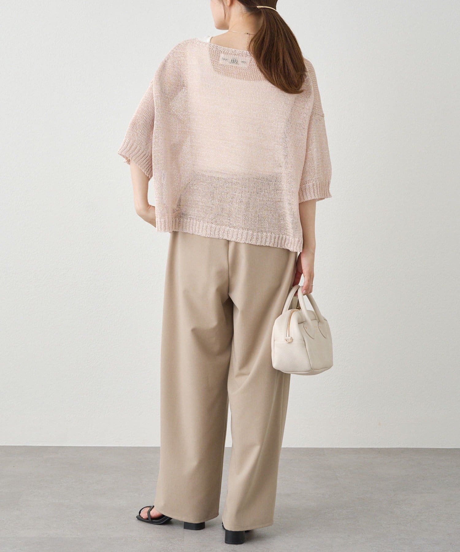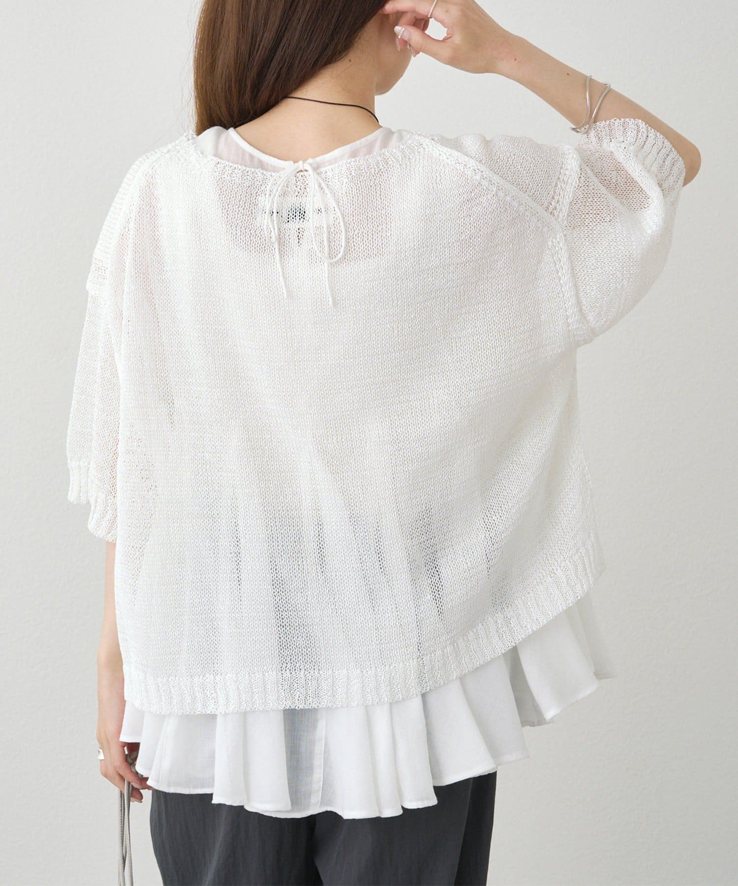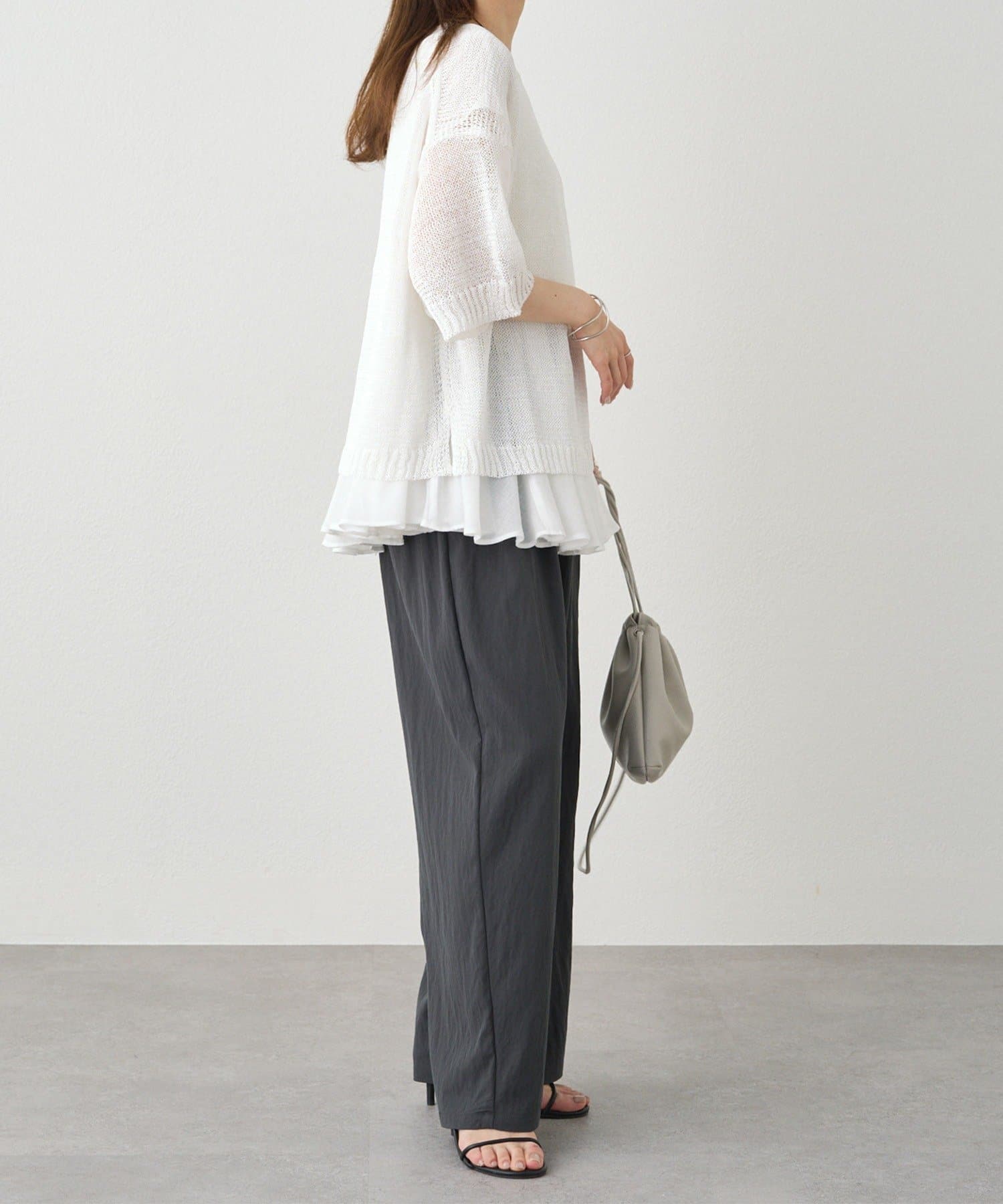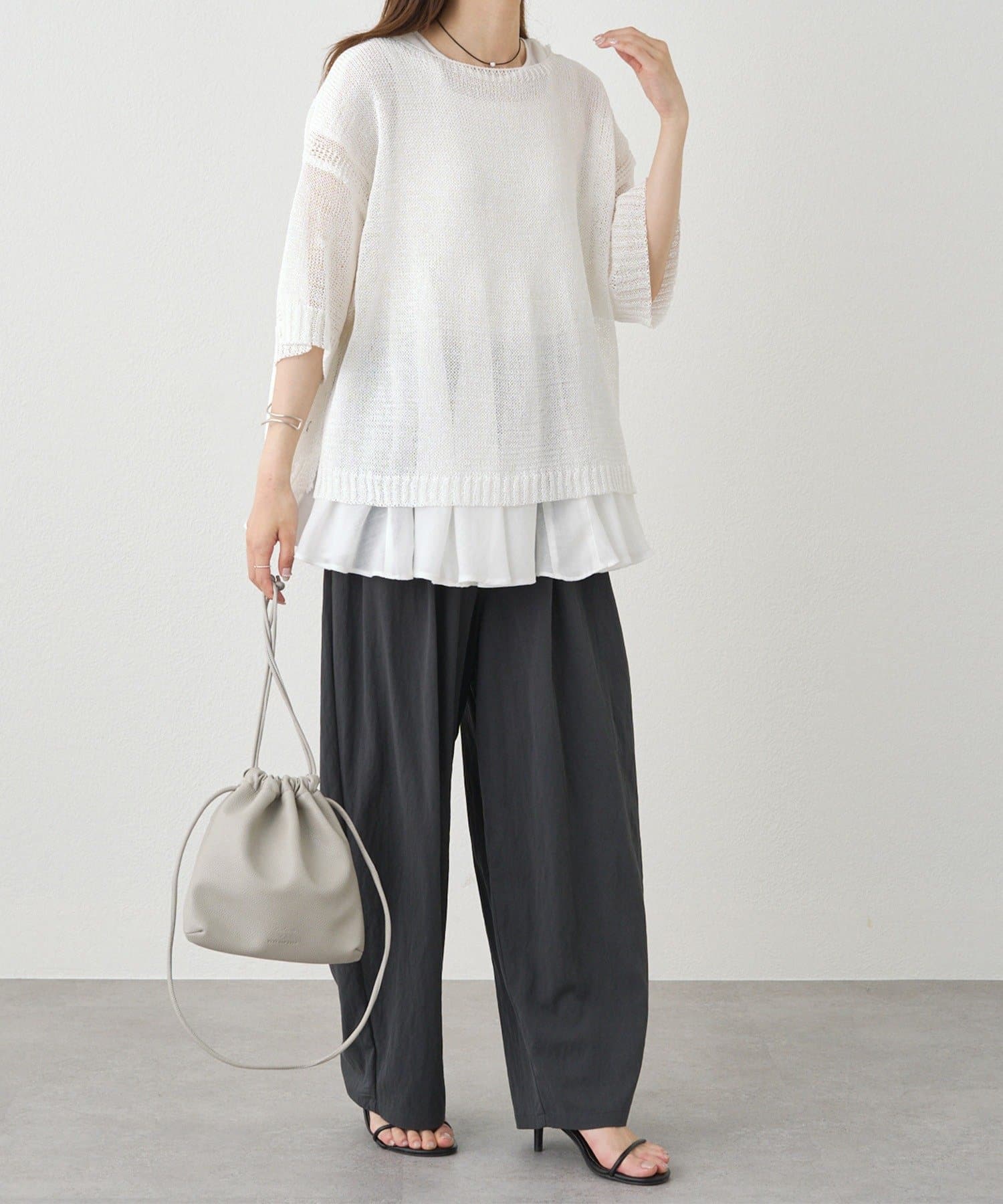 ゆったりシルエットのトップスでも編地の透け感が軽やかで、