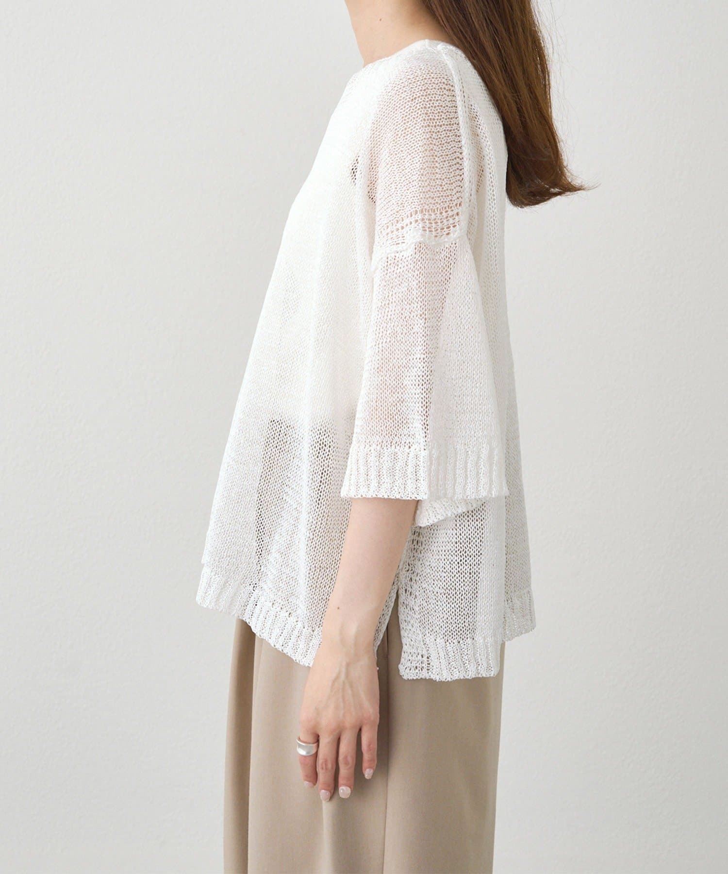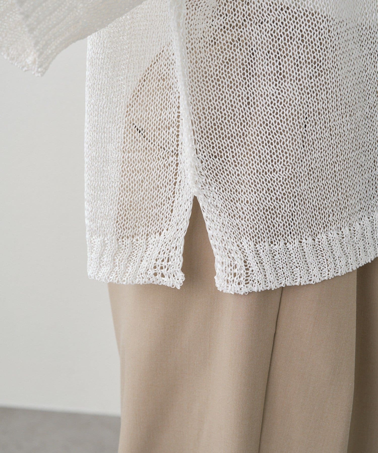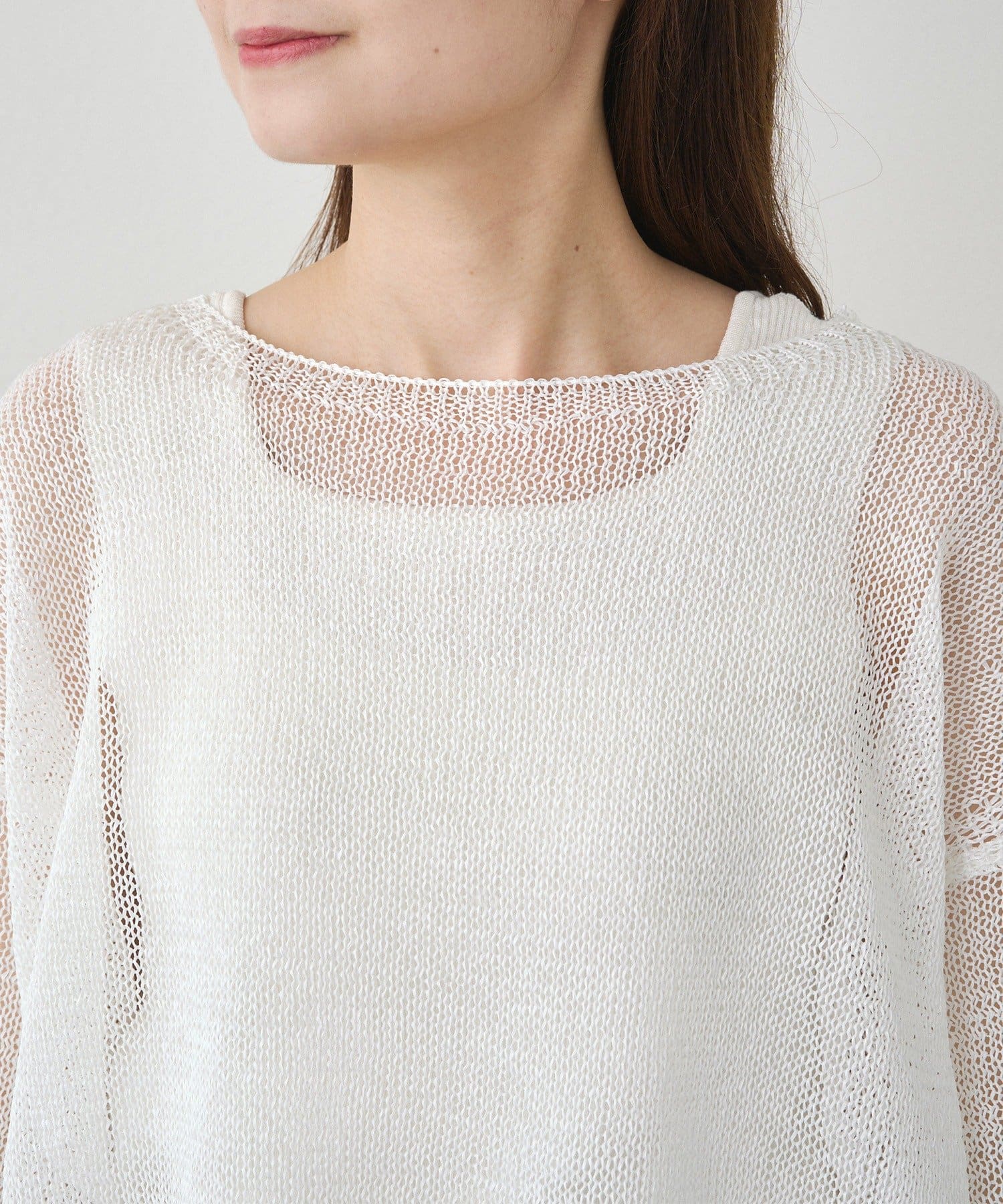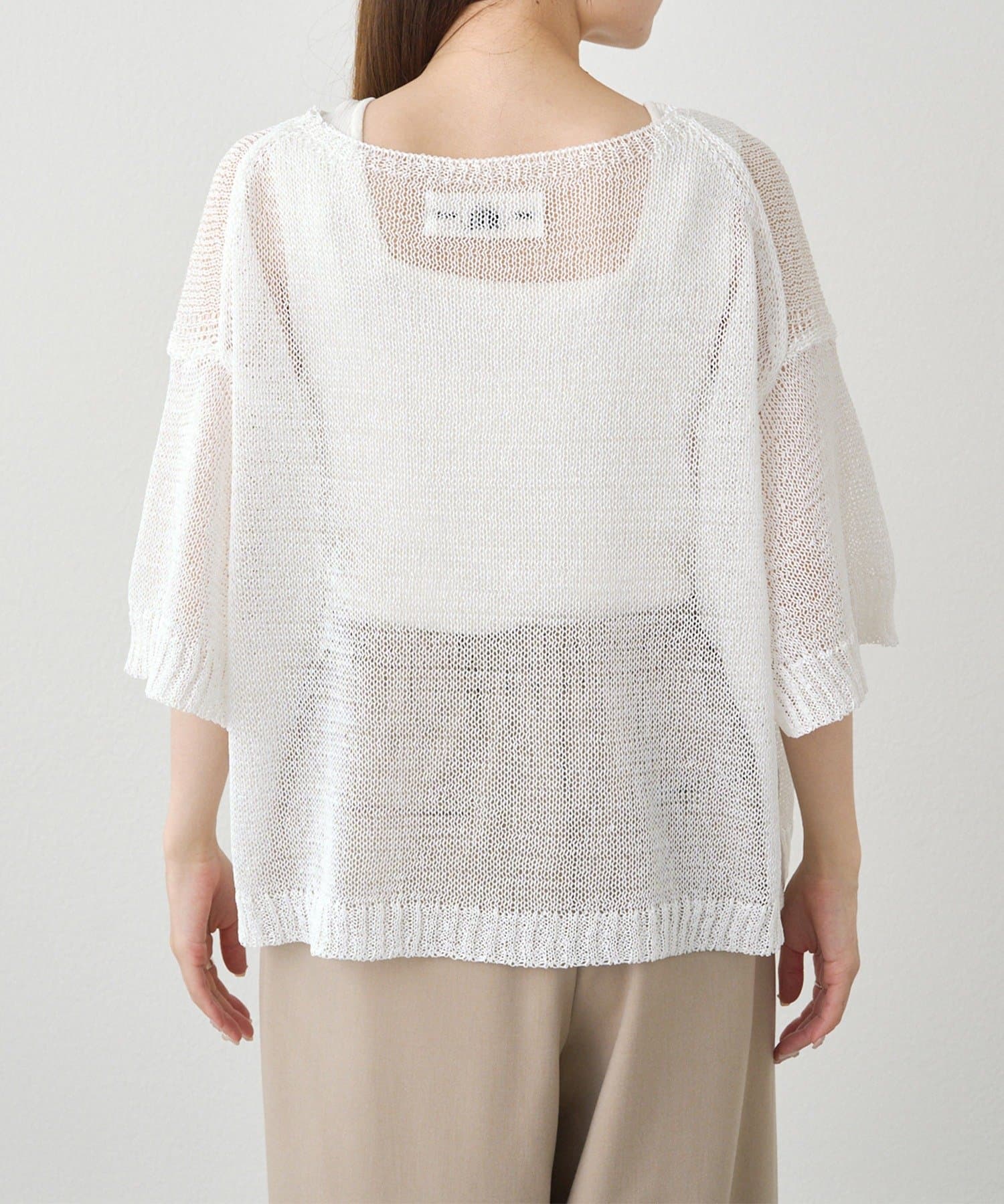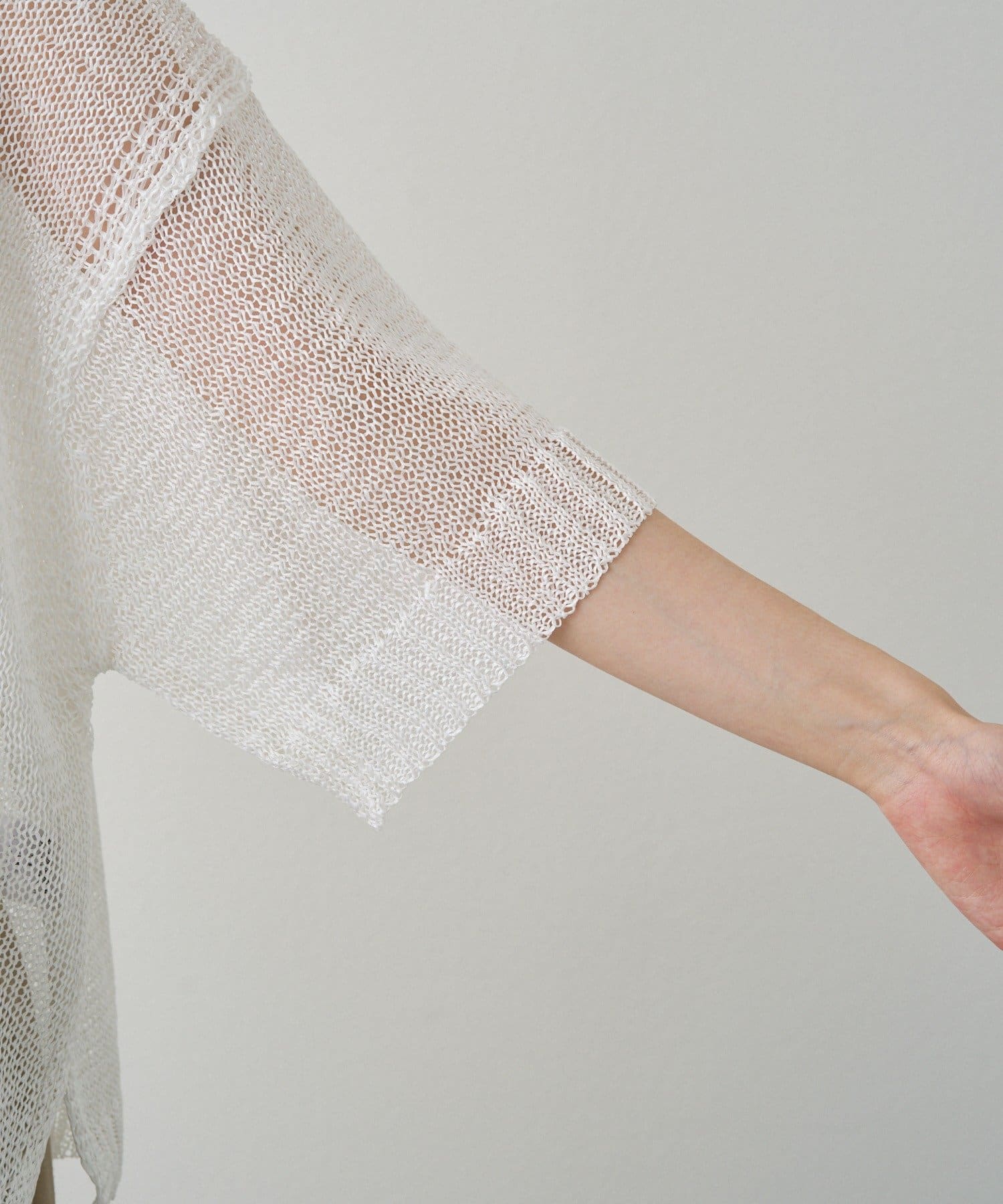 ざっくりとした編地で風が通り清涼感があるので、気温や湿度が高い日にも涼しく着れそうです。