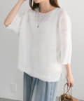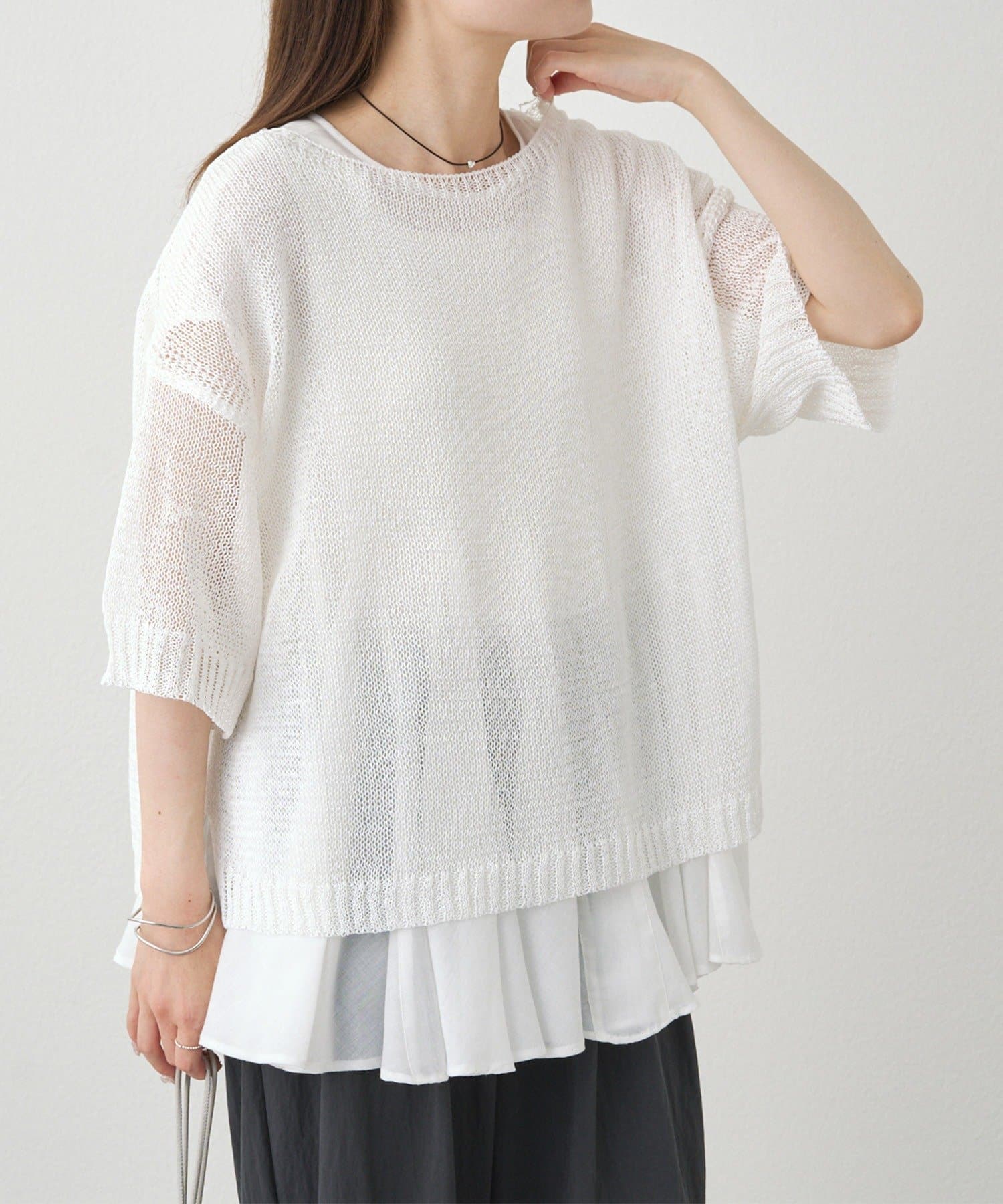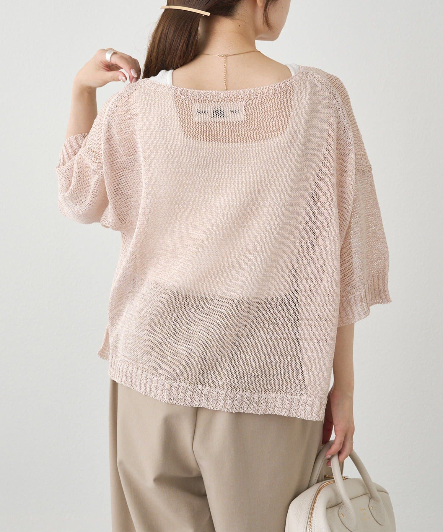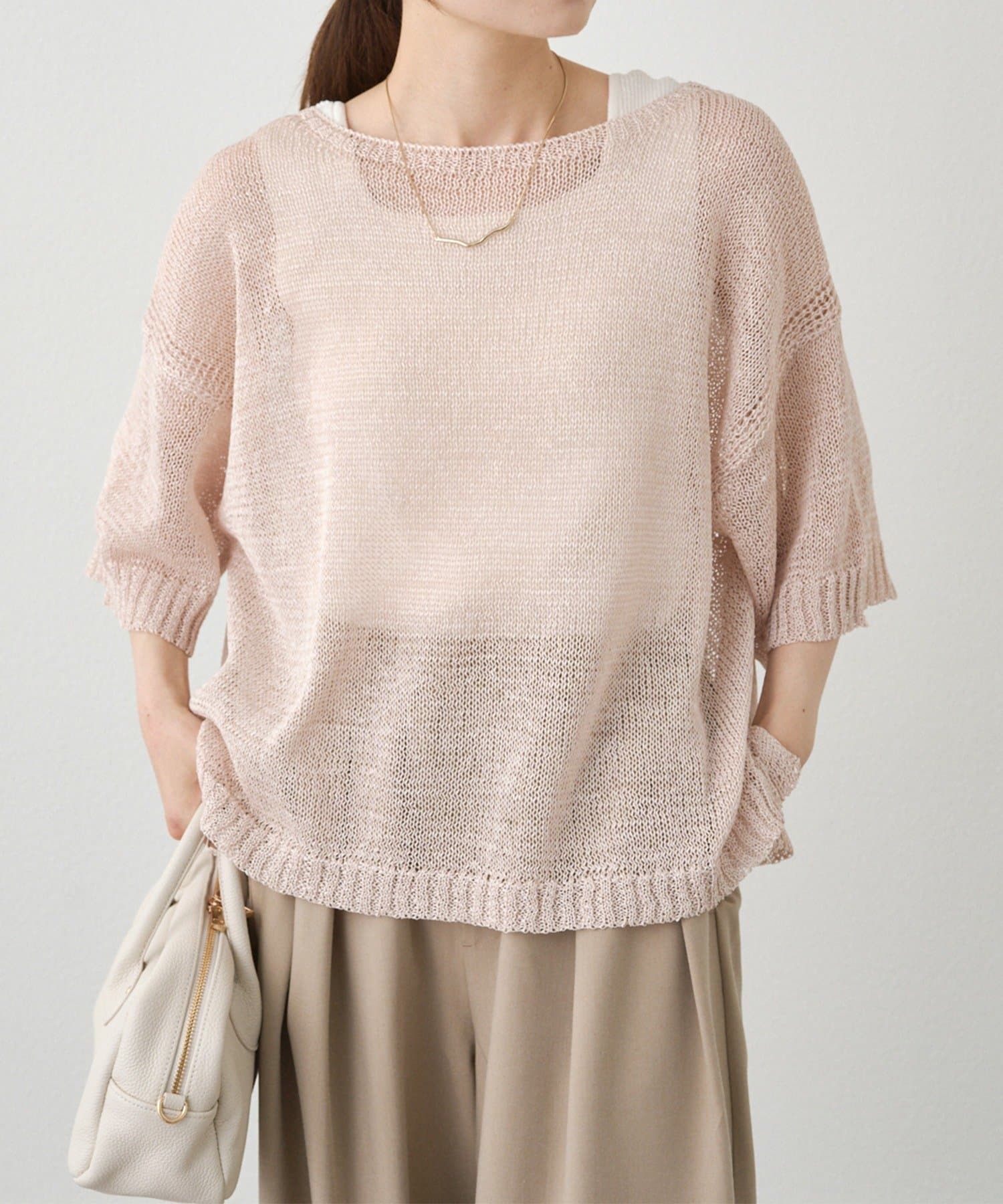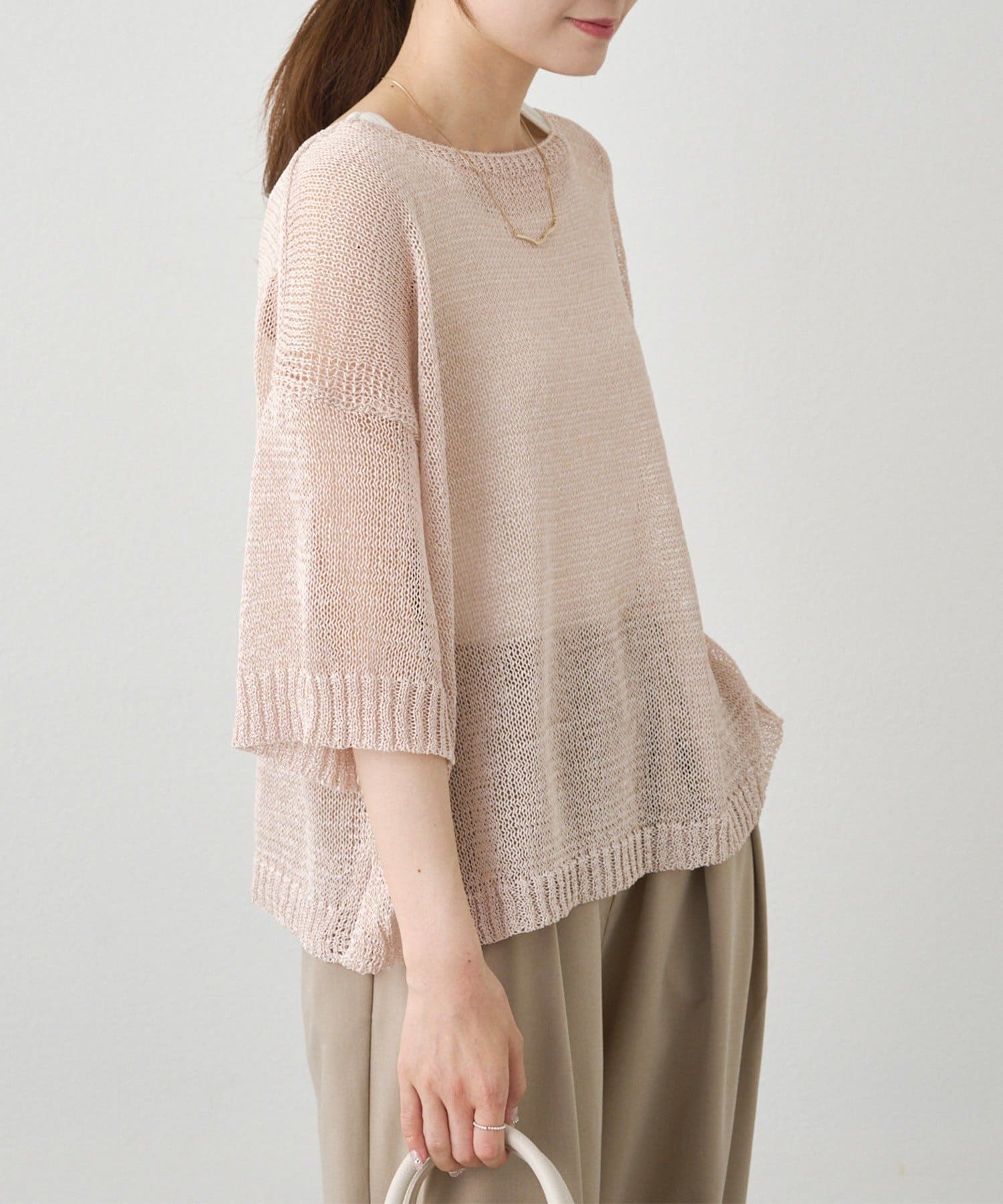 ざっくりとした編地で風が通り清涼感があるので、気温や湿度が高い日にも涼しく着れそうです。