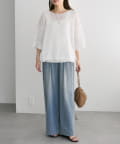 着用感:ゆるっとしたサイジングとさらりとした生地感が肌にまとわりつかず夏にピッタリの爽やかな着心地でした。