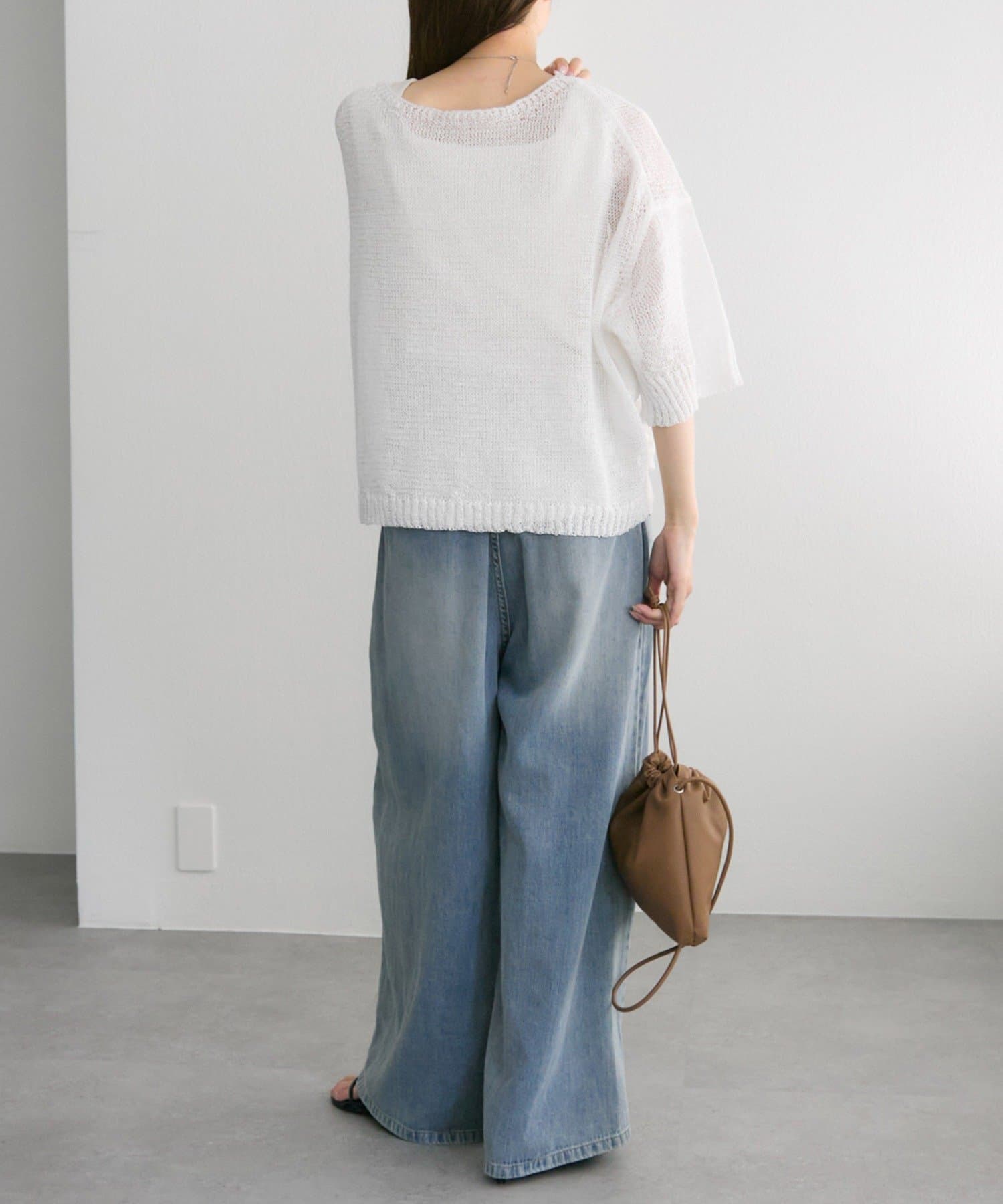 ざっくりと編まれたニット生地で向こうが透けて見え、夏の装いに合わせれば一気に爽やかでこなれた雰囲気に。