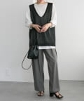 ボリュームのあるワイドシルエットのアイテムには、タックインした着合わせがバランスを取りやすくなりオススメです。