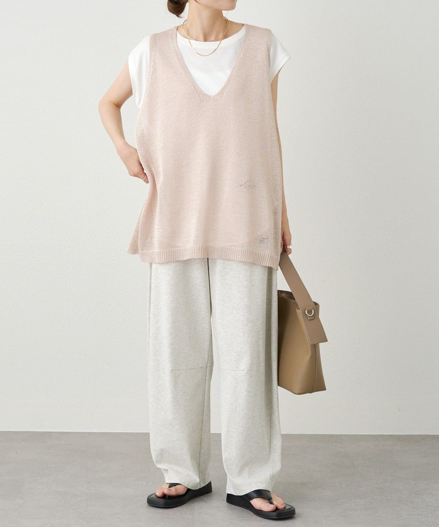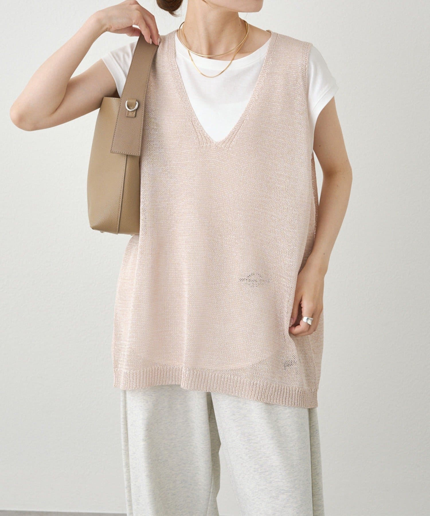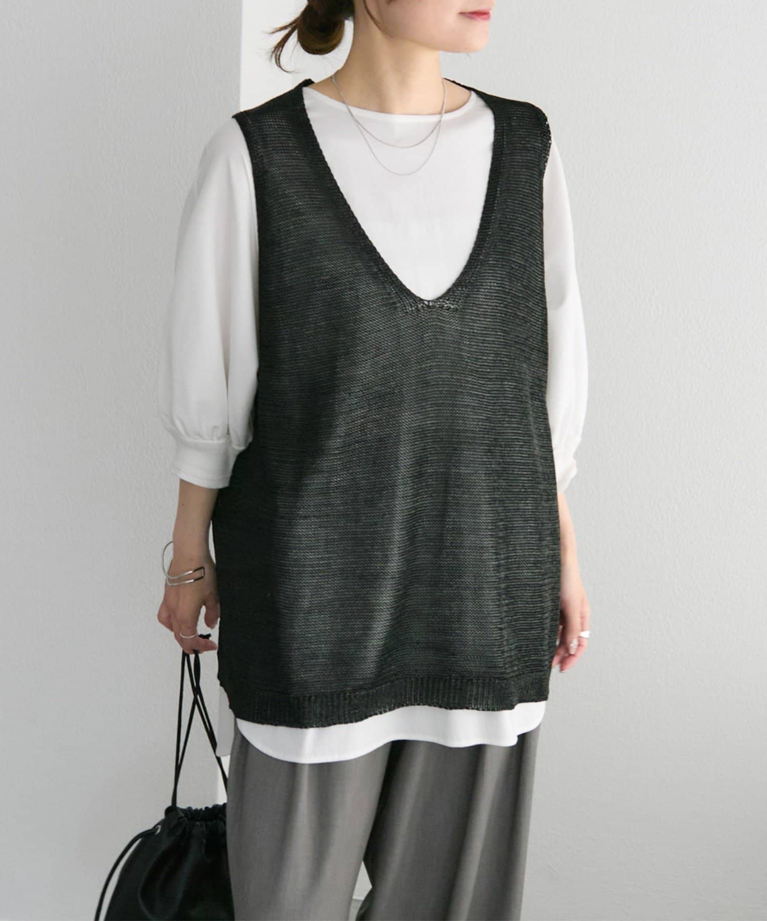 ◇涼し気な素材で夏でも着られる王道のVネックベスト◇