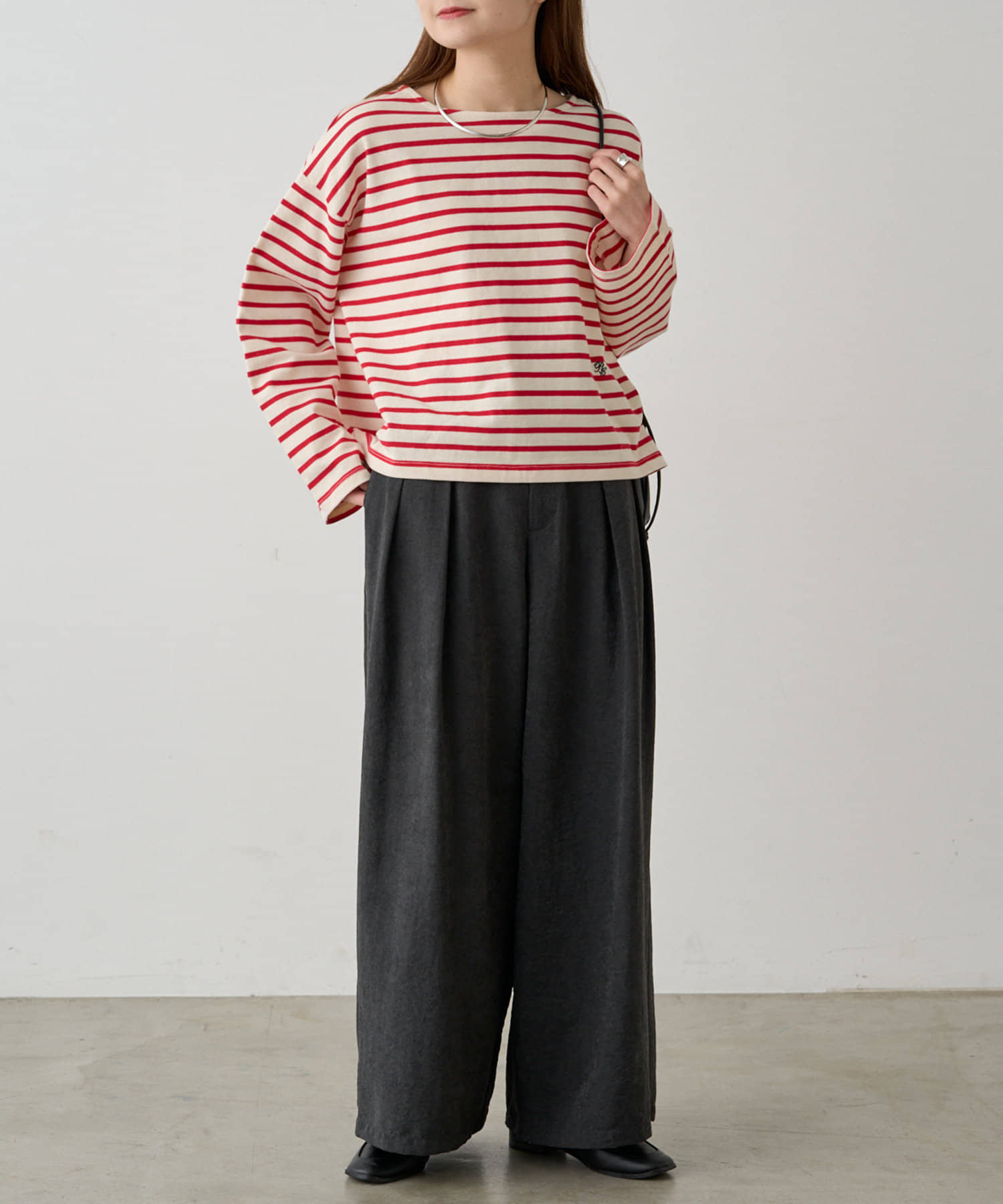 伸縮性がややあるカットソーなので、心地良く着用いただけます。