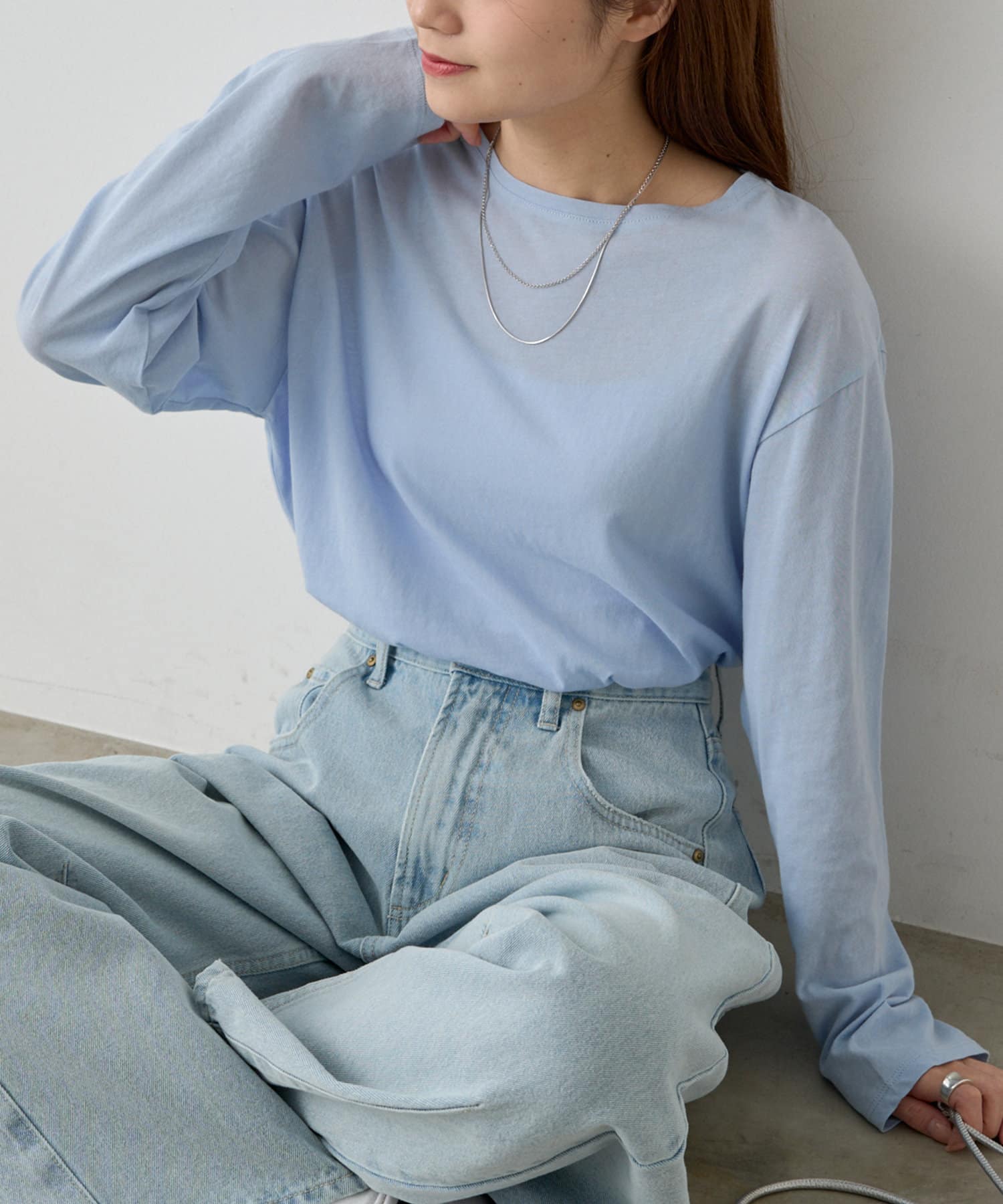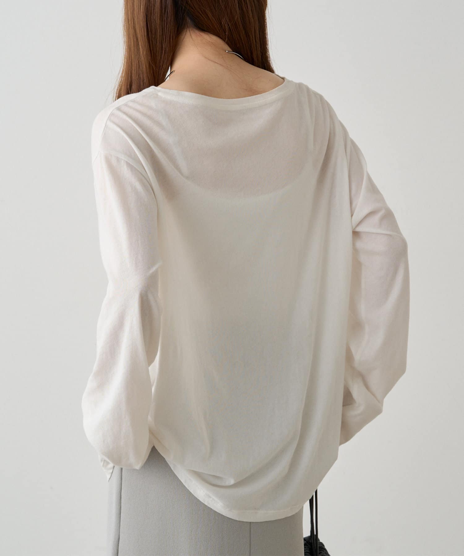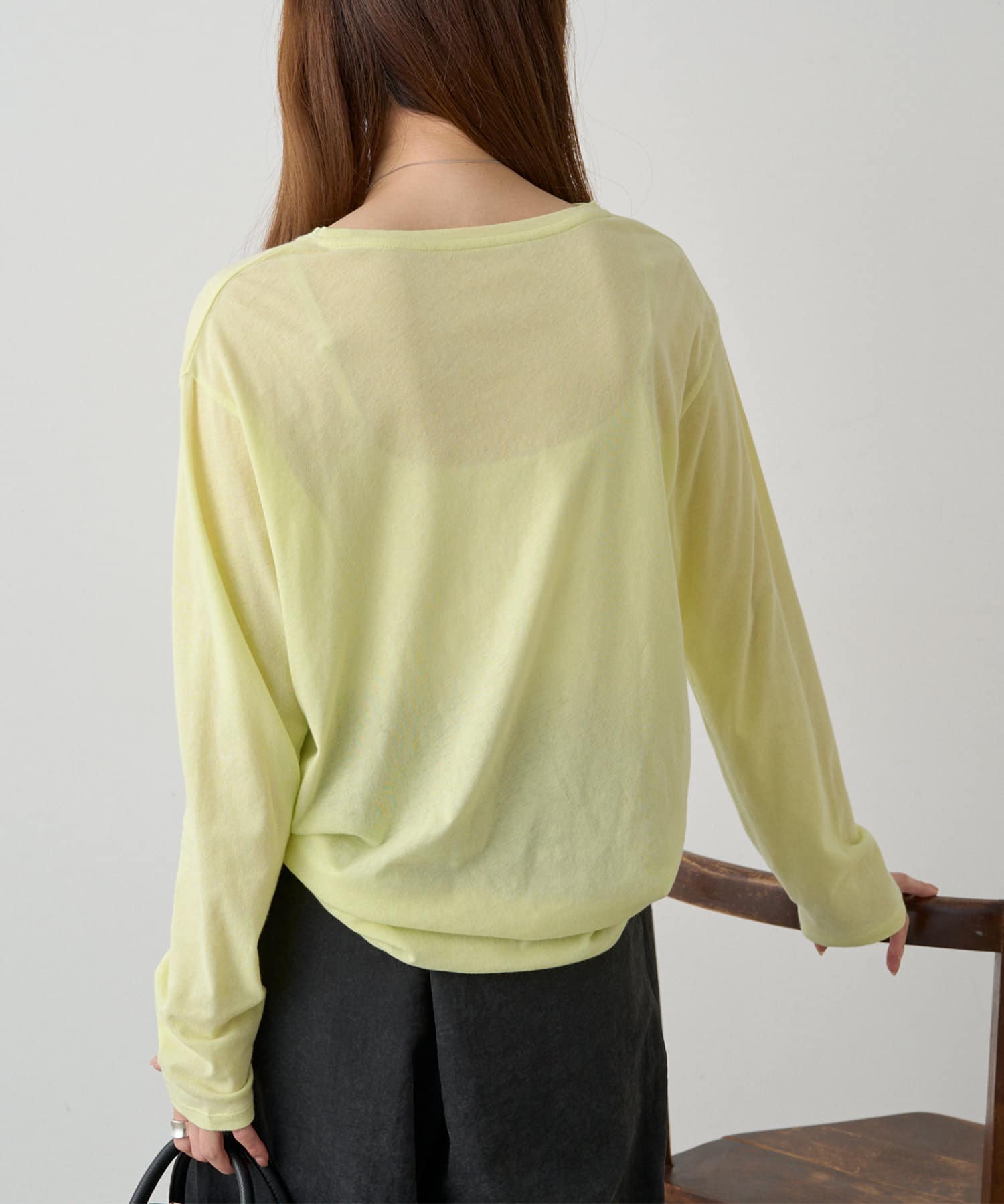着用感:程よくゆとりがあり体のラインが出にくいので着やすいシアートップスです。