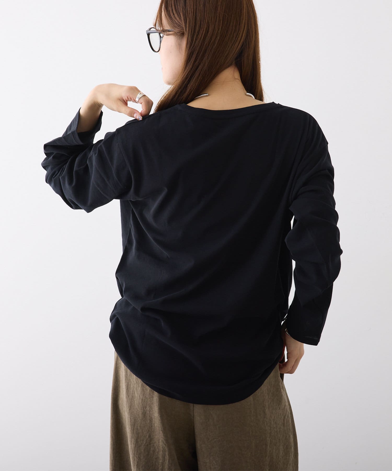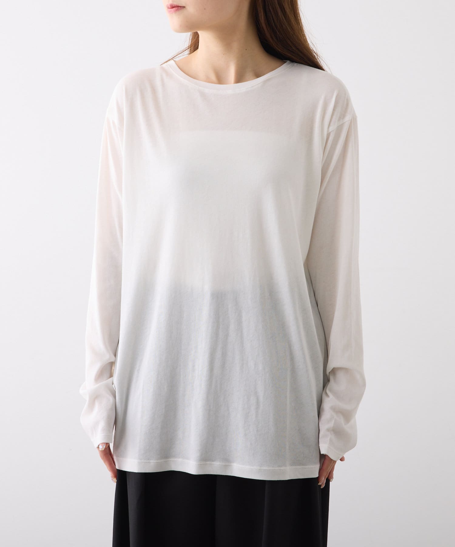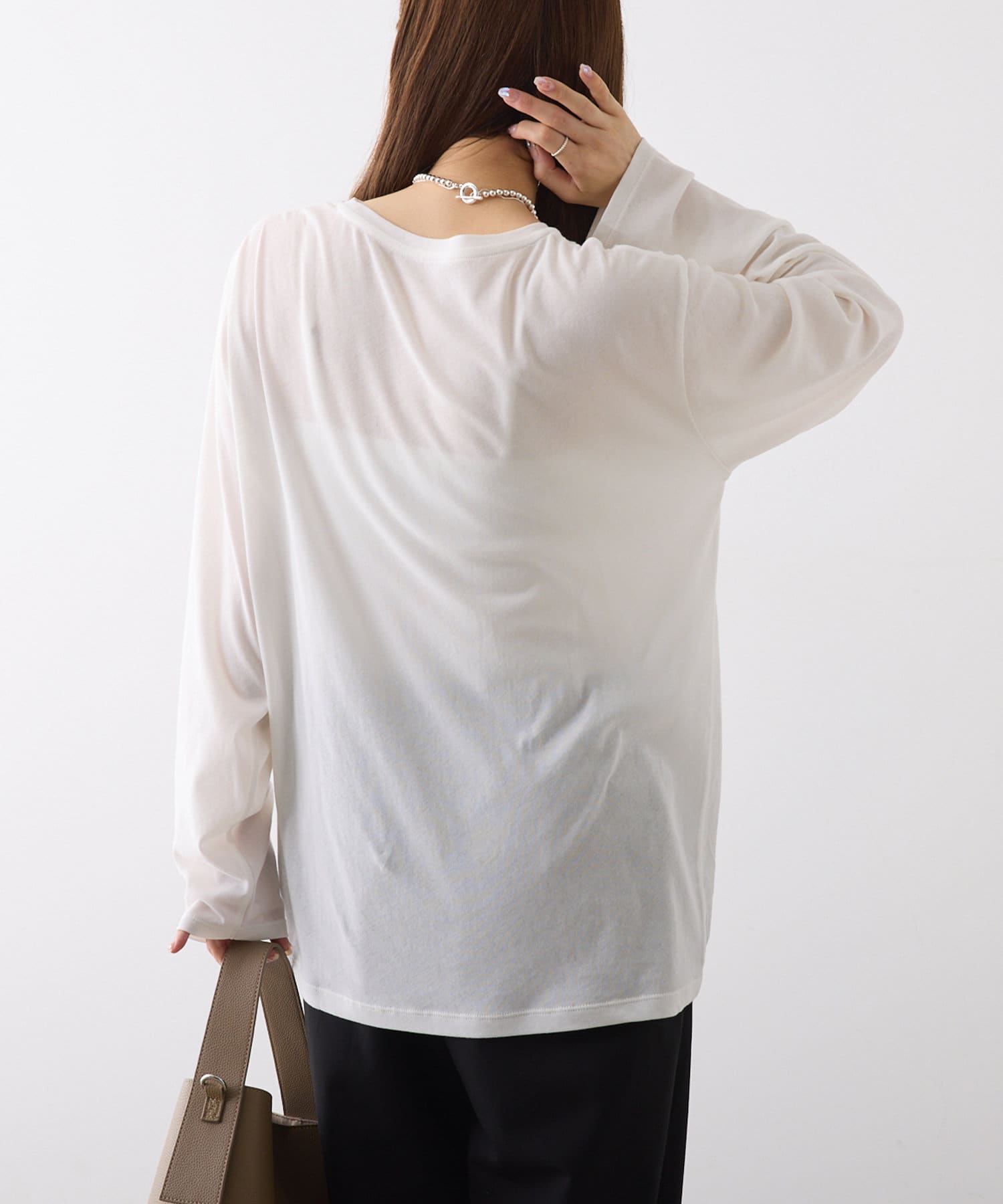 着用感:程よくゆとりがあり体のラインが出にくいので着やすいシアートップスです。