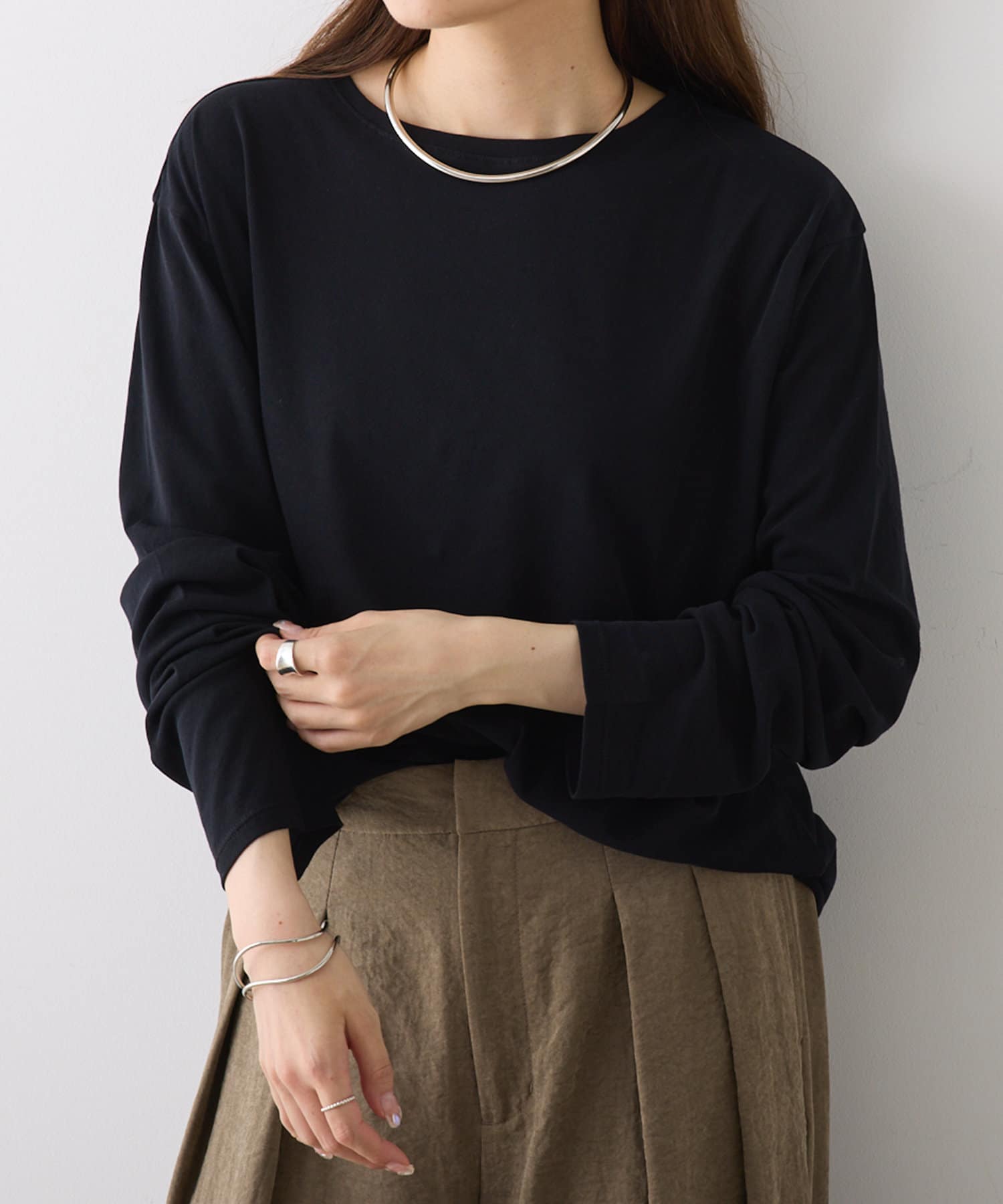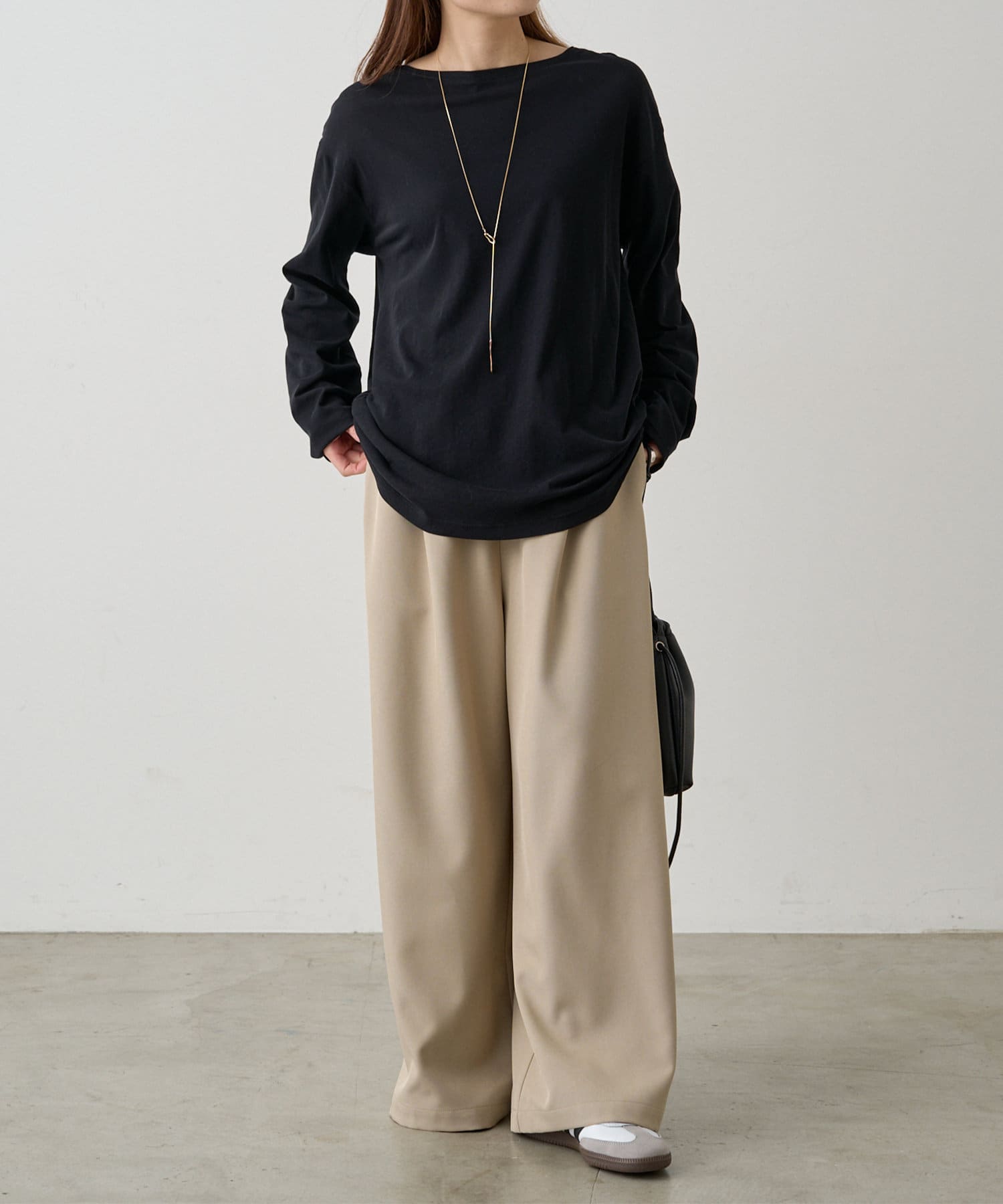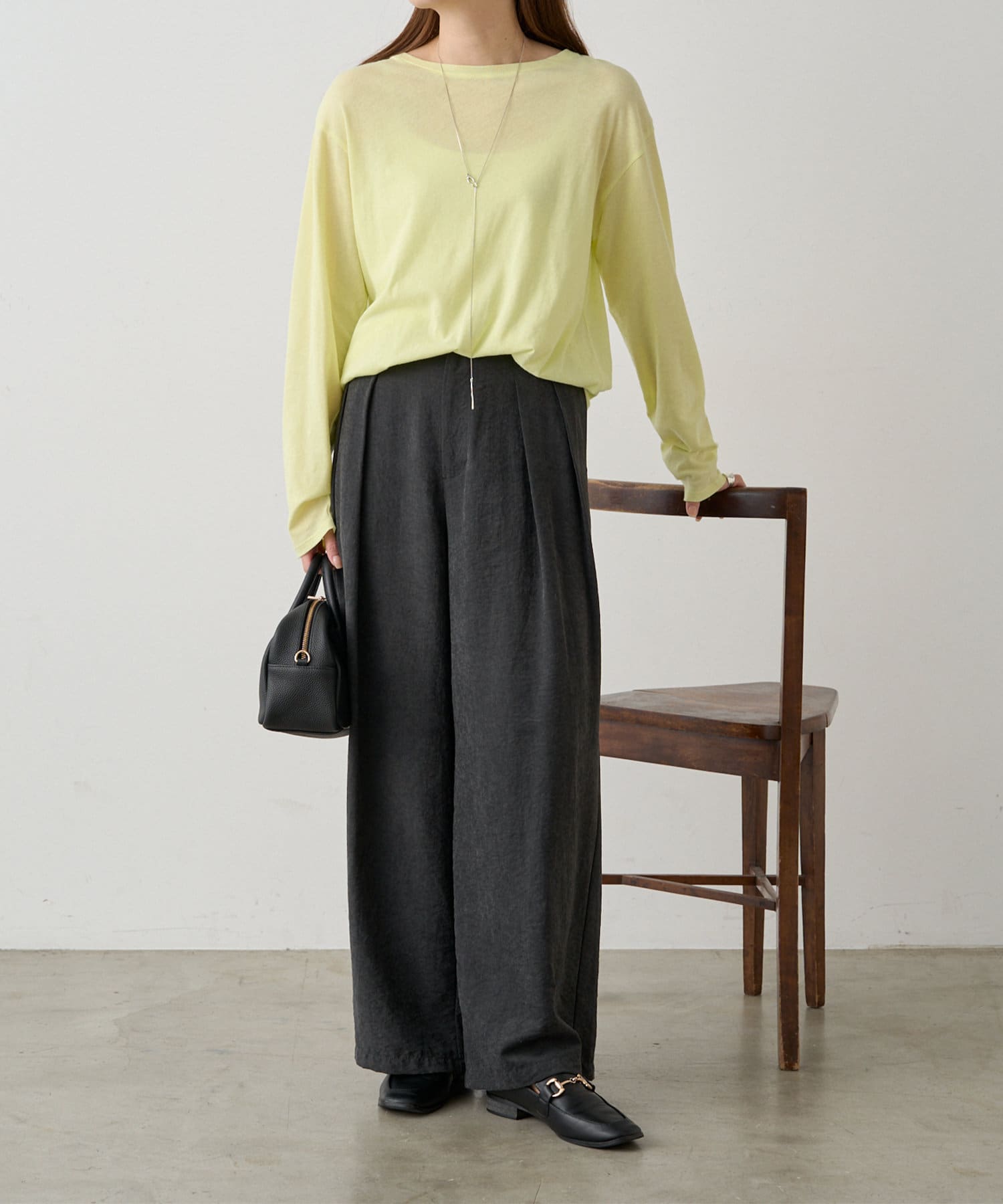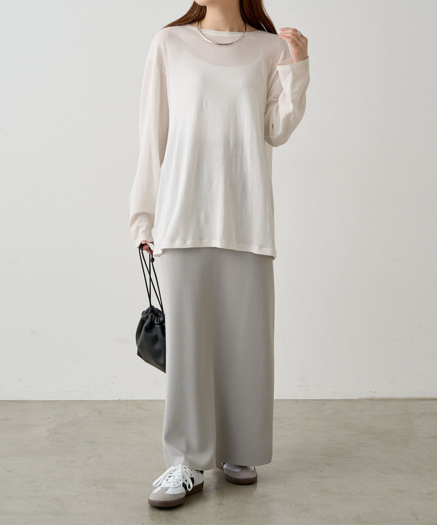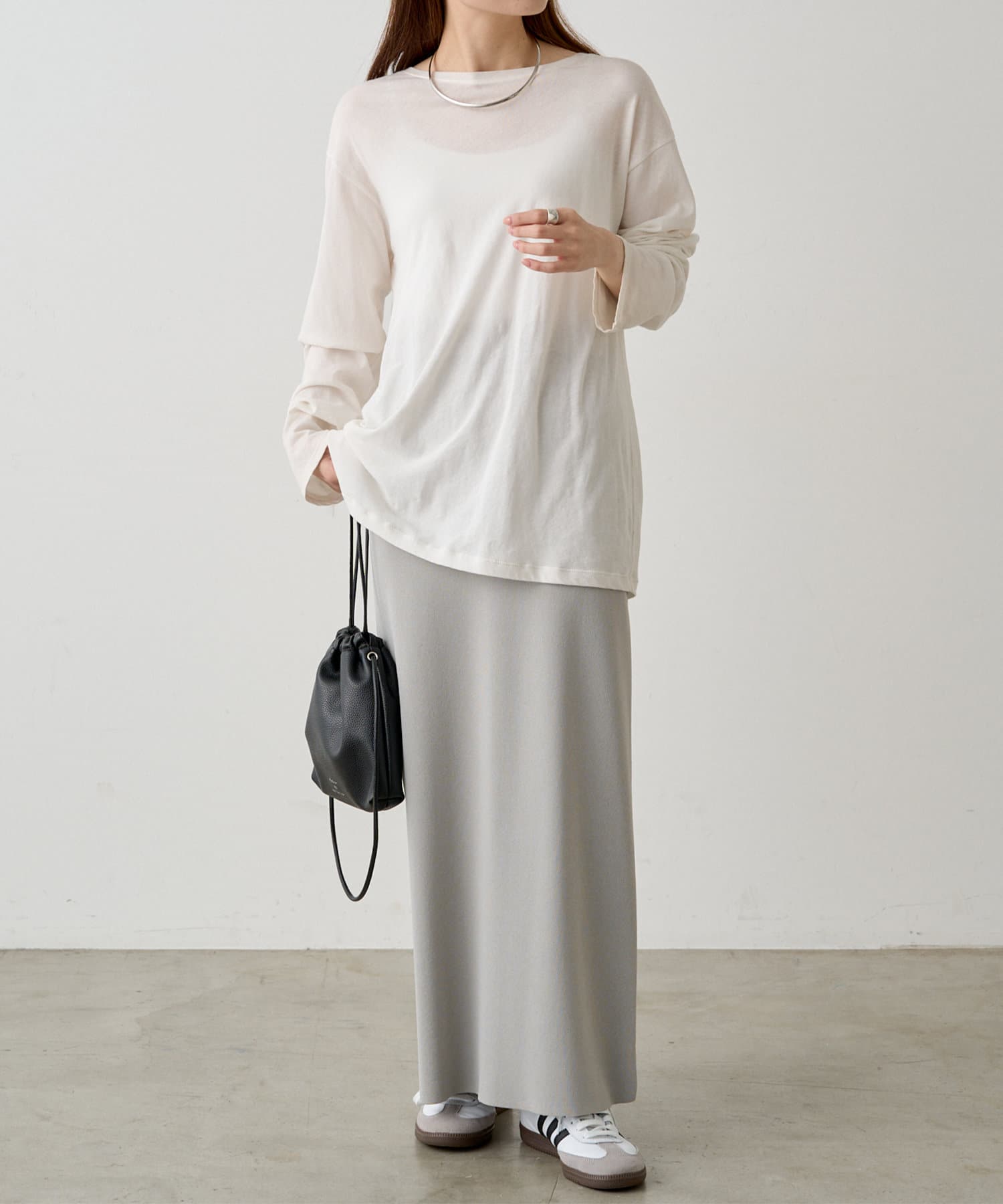 柔らかい素材なので、カーディガンやジレベストとの秋らしいレイヤードスタイルにも活躍。