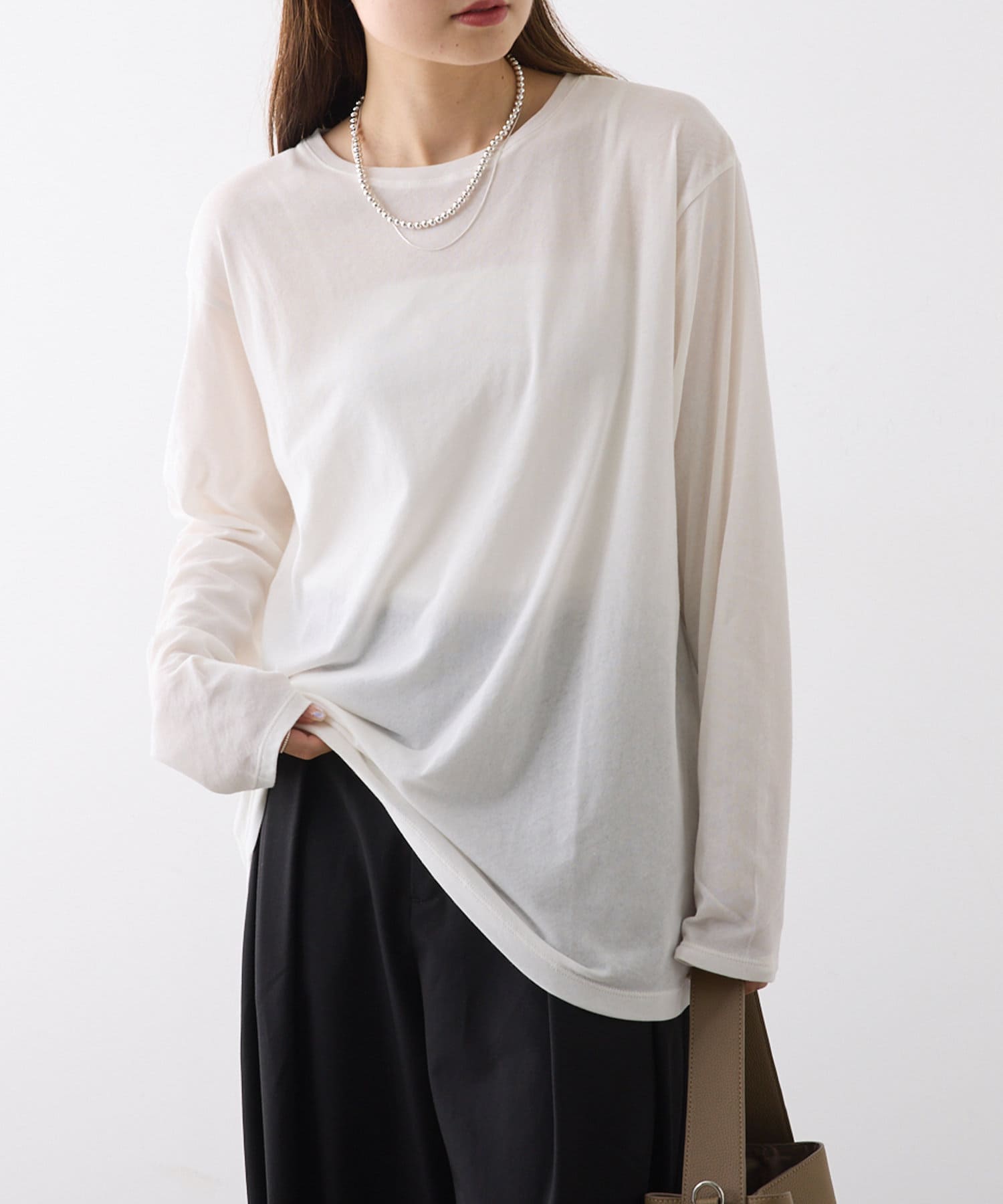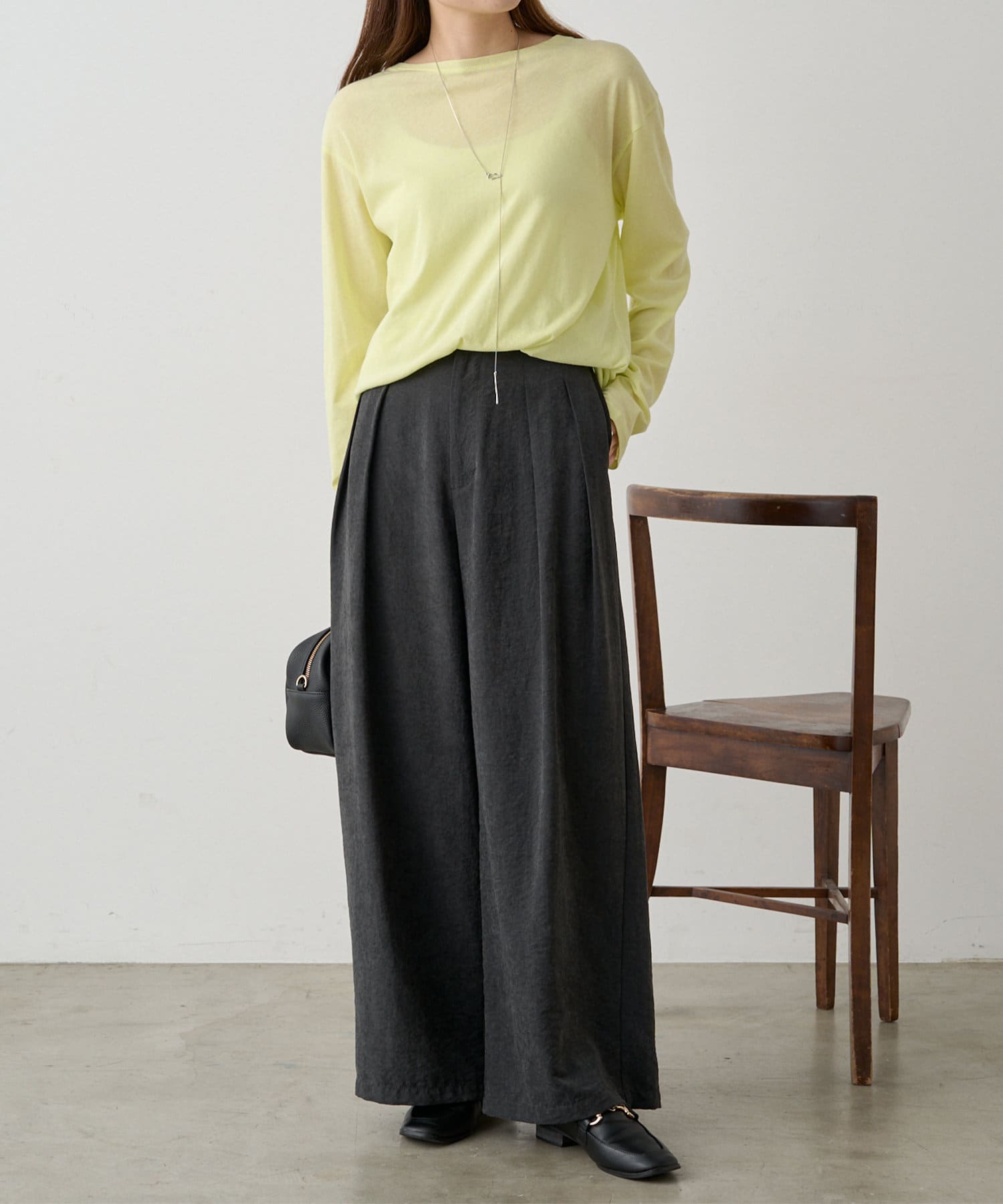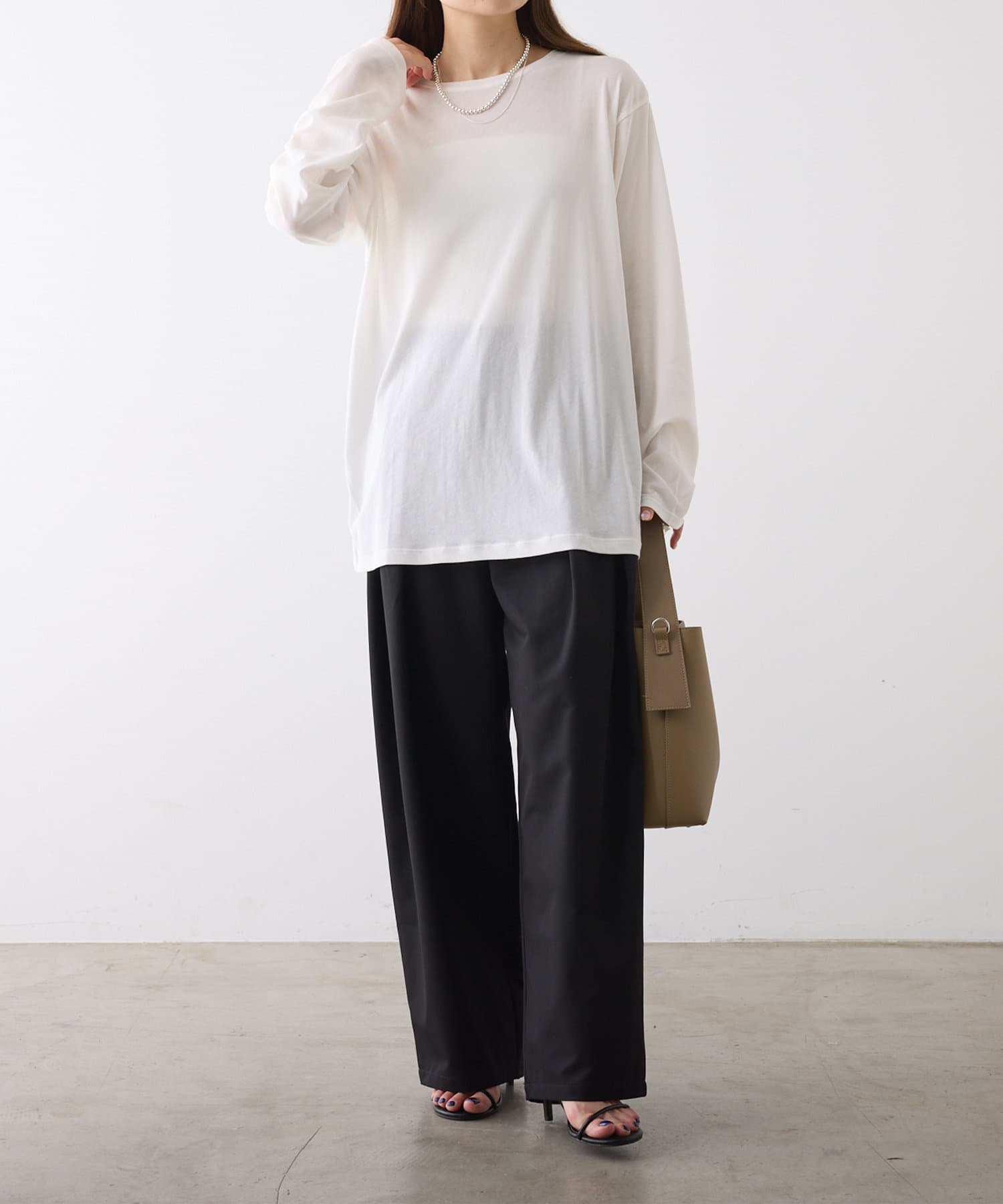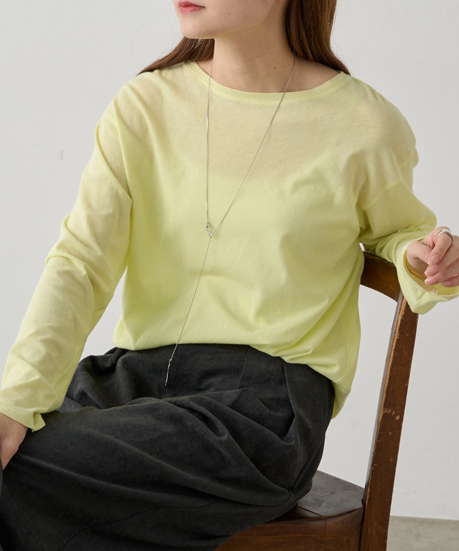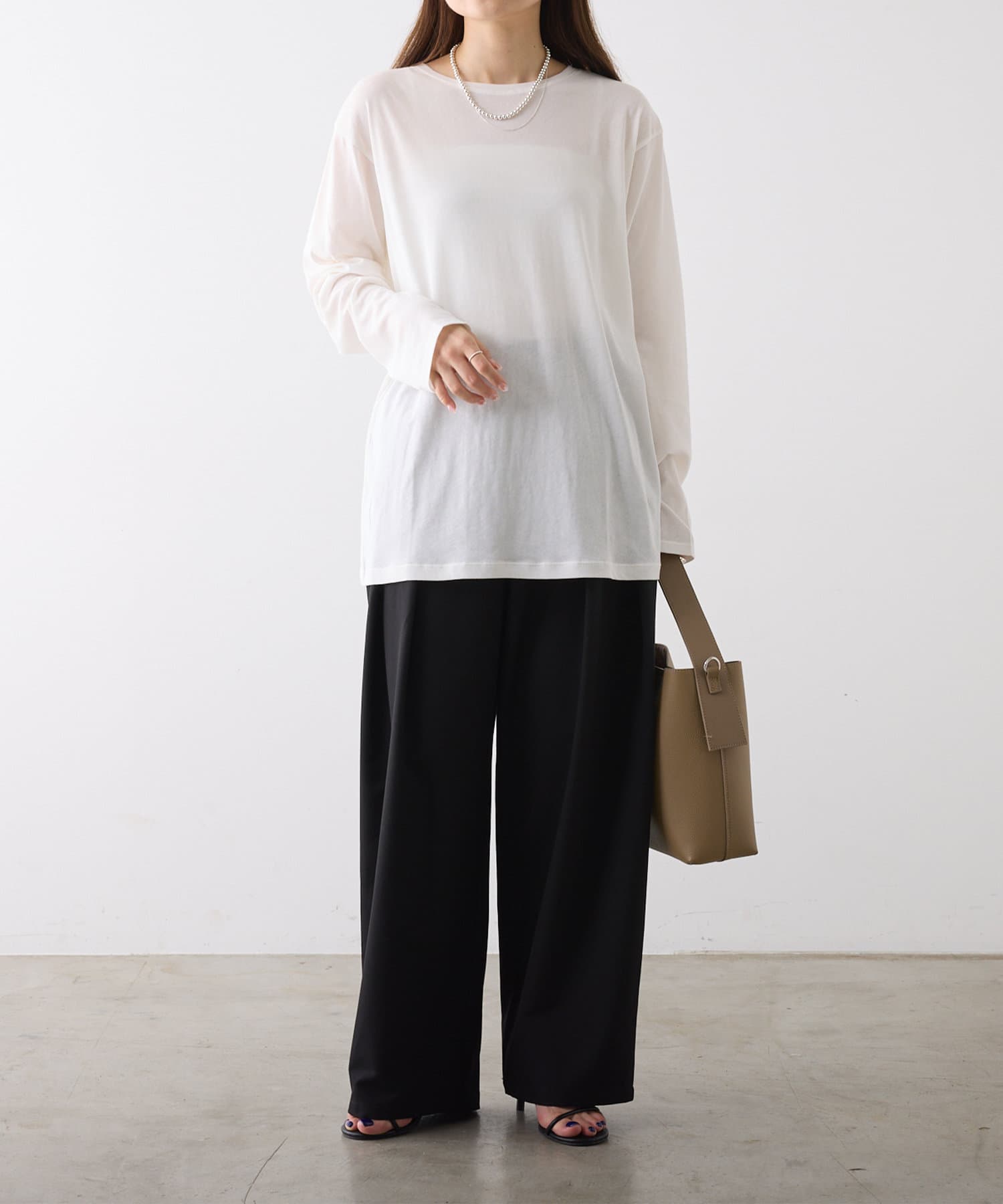 柔らかい素材なので、カーディガンやジレベストとの秋らしいレイヤードスタイルにも活躍。
