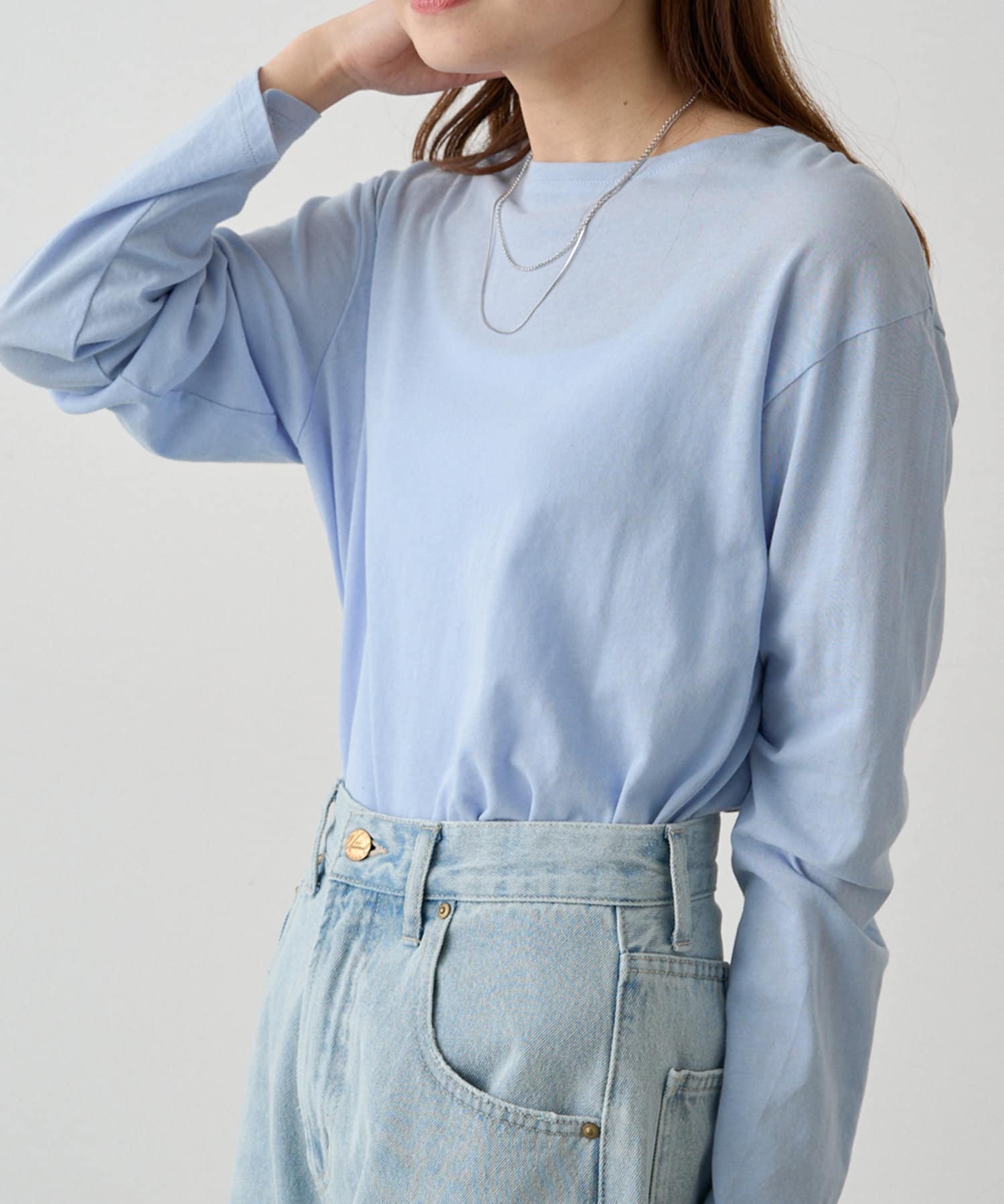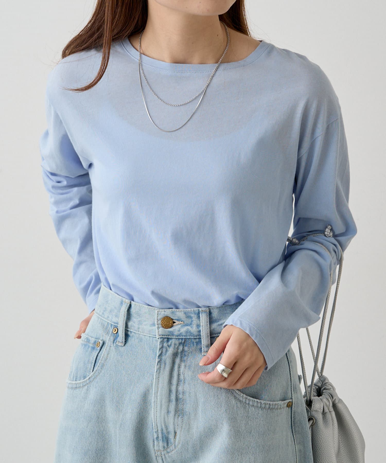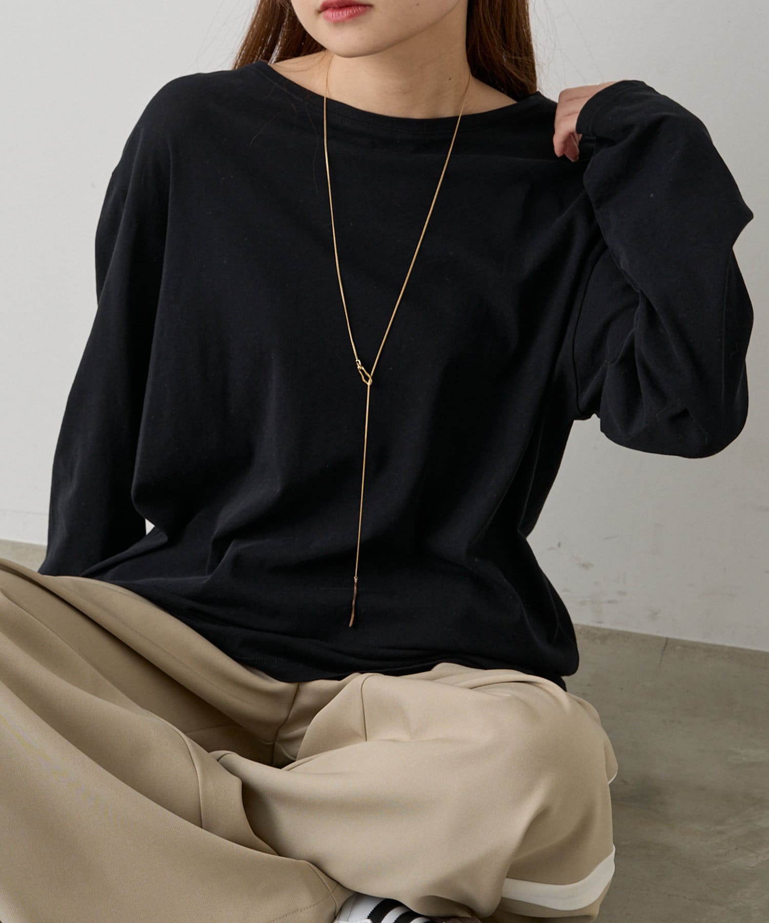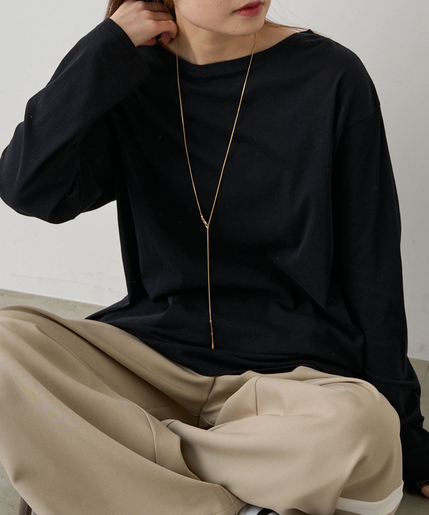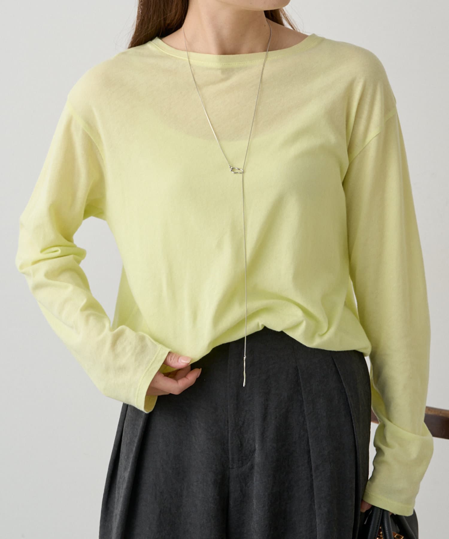 柔らかい素材なので、カーディガンやジレベストとの秋らしいレイヤードスタイルにも活躍。