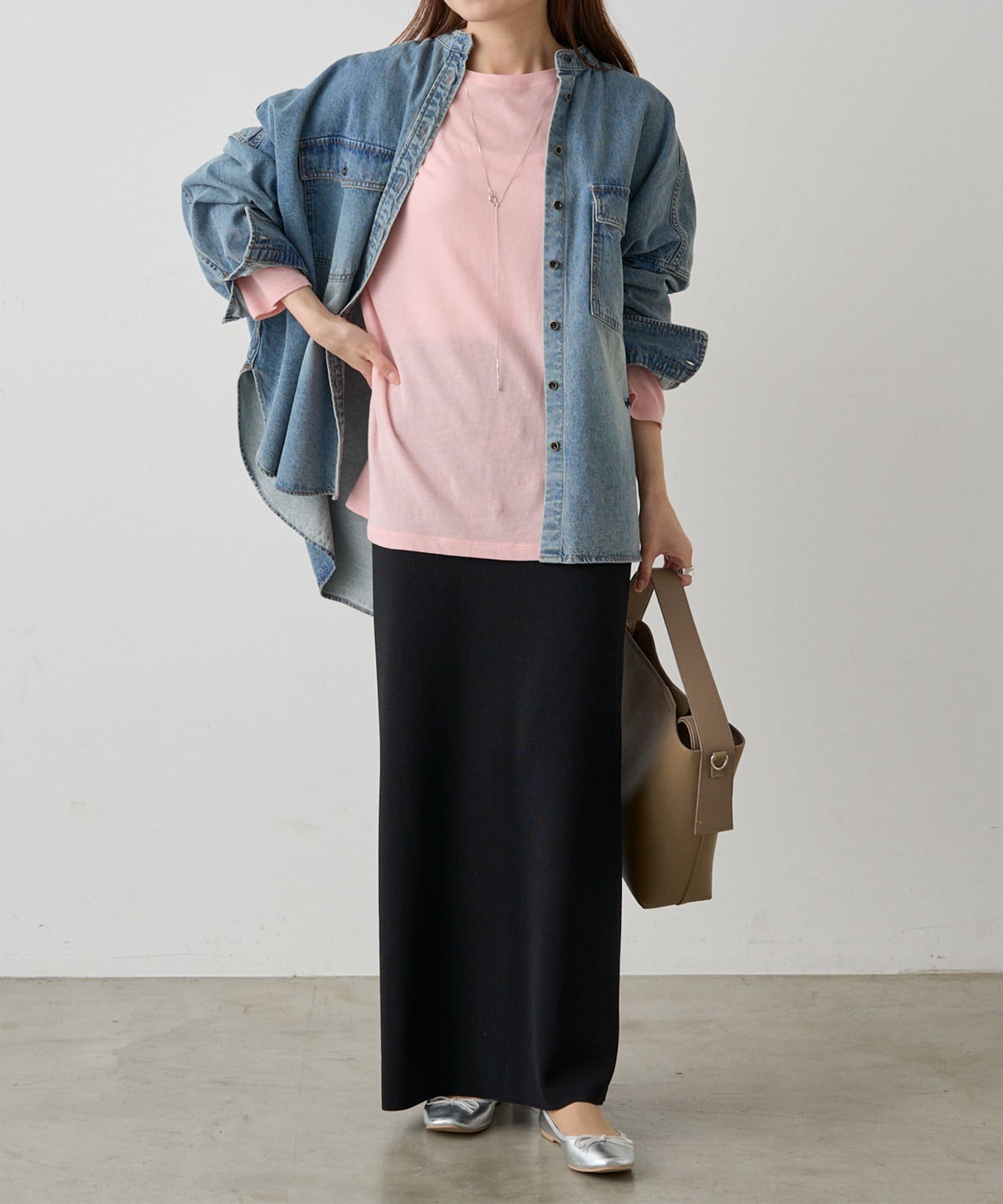 長めに着丈を設定しているのでボトムインもアウトスタイルも決まりやすく
