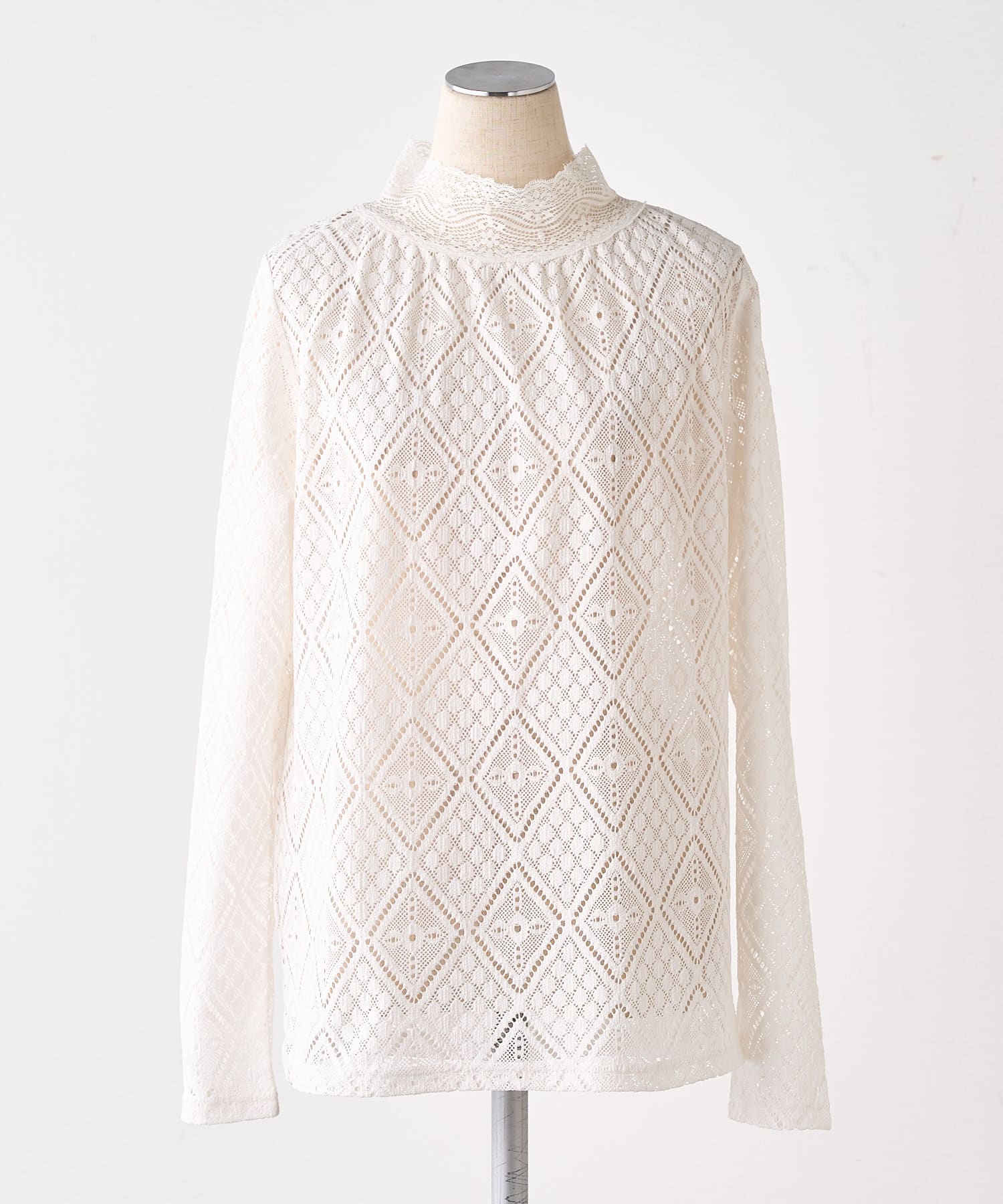 ストレッチレースハイネックカットソー