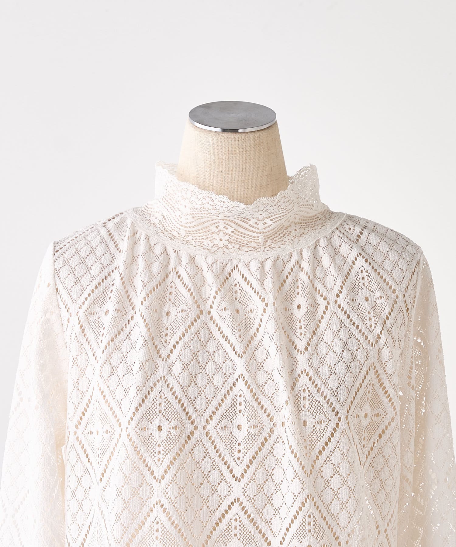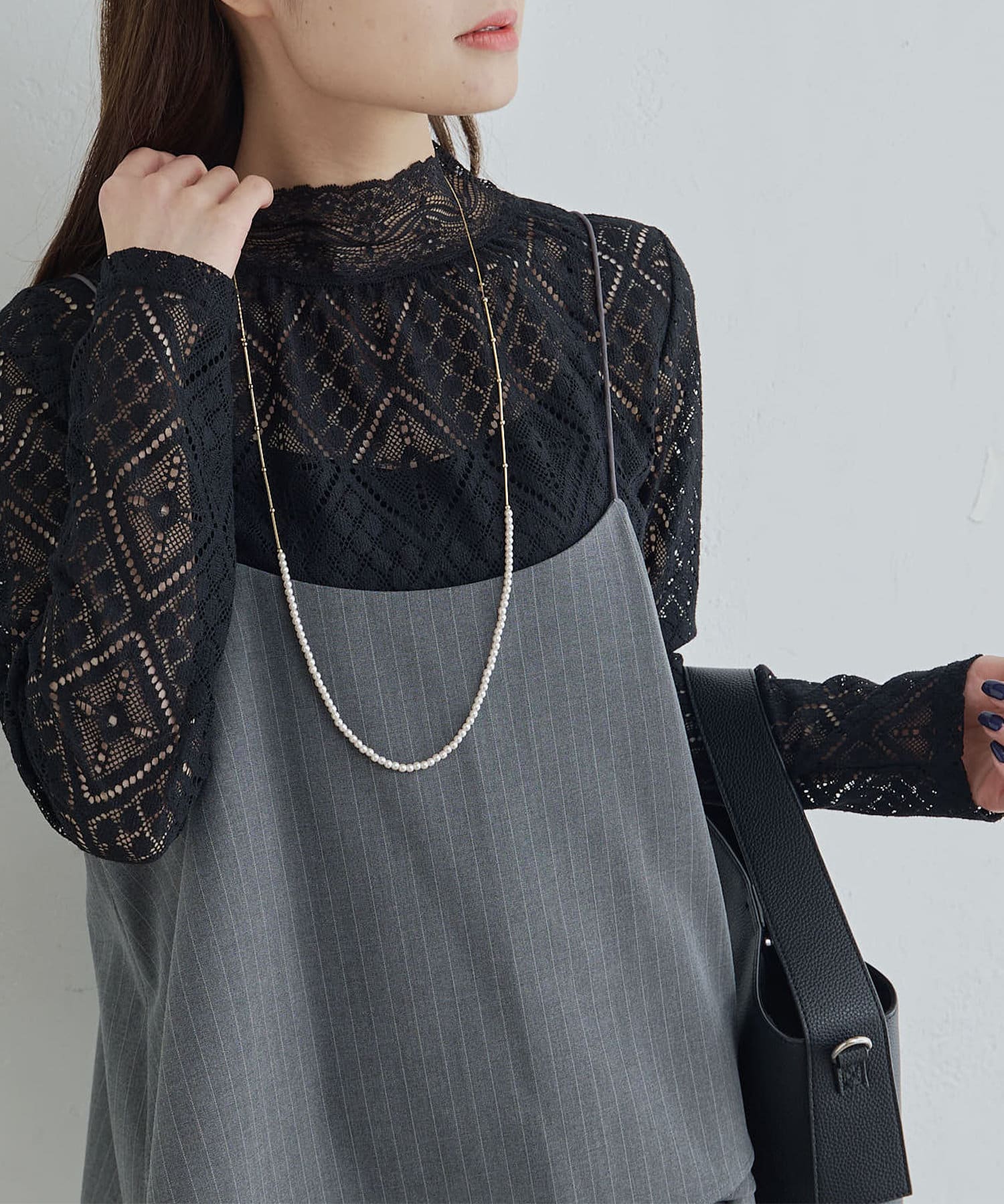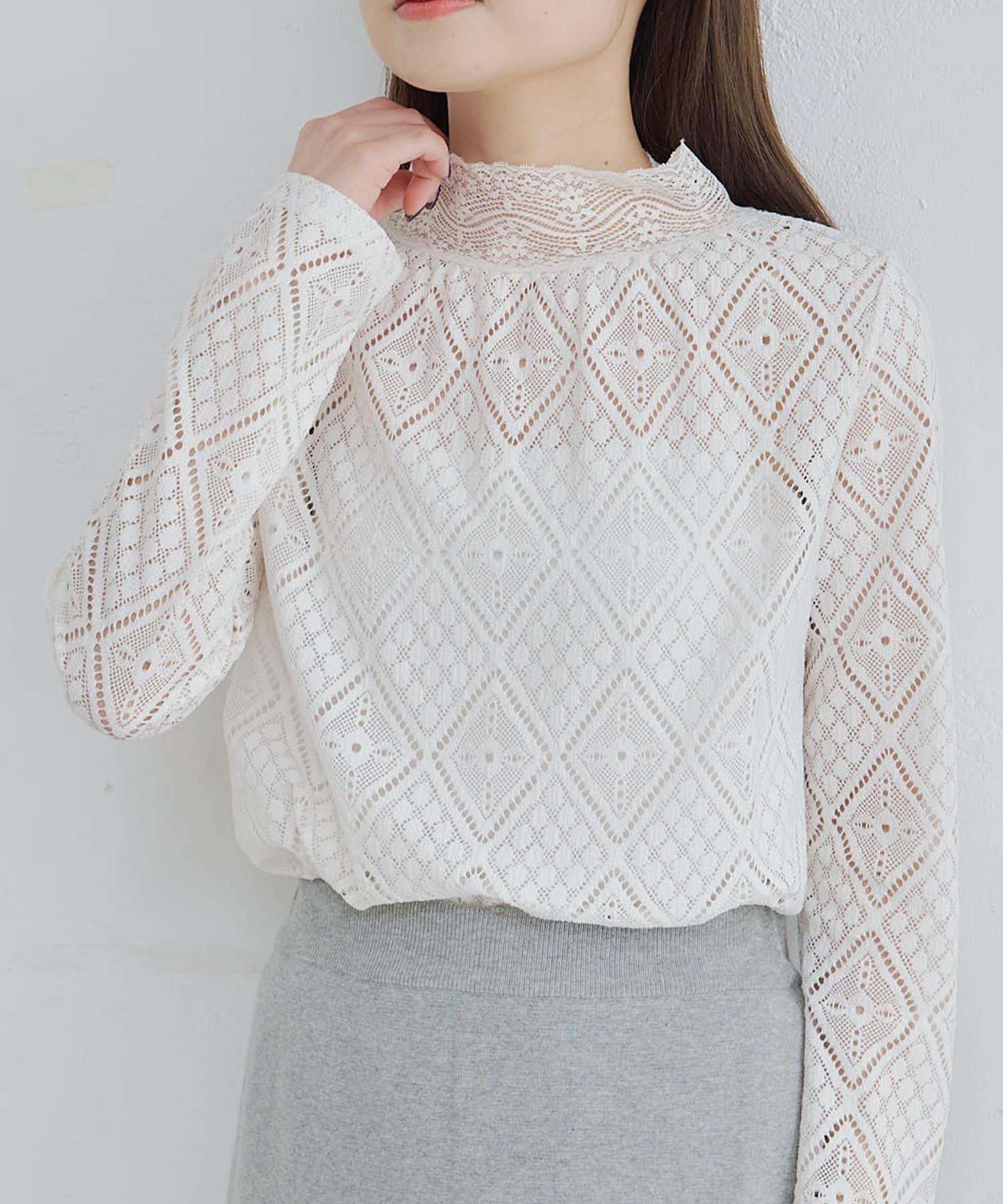 程よい透け感で品のいい肌見せが女性らしい印象へと導くレーストップス。