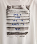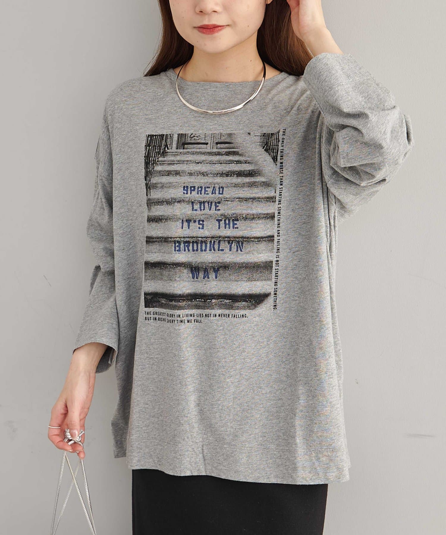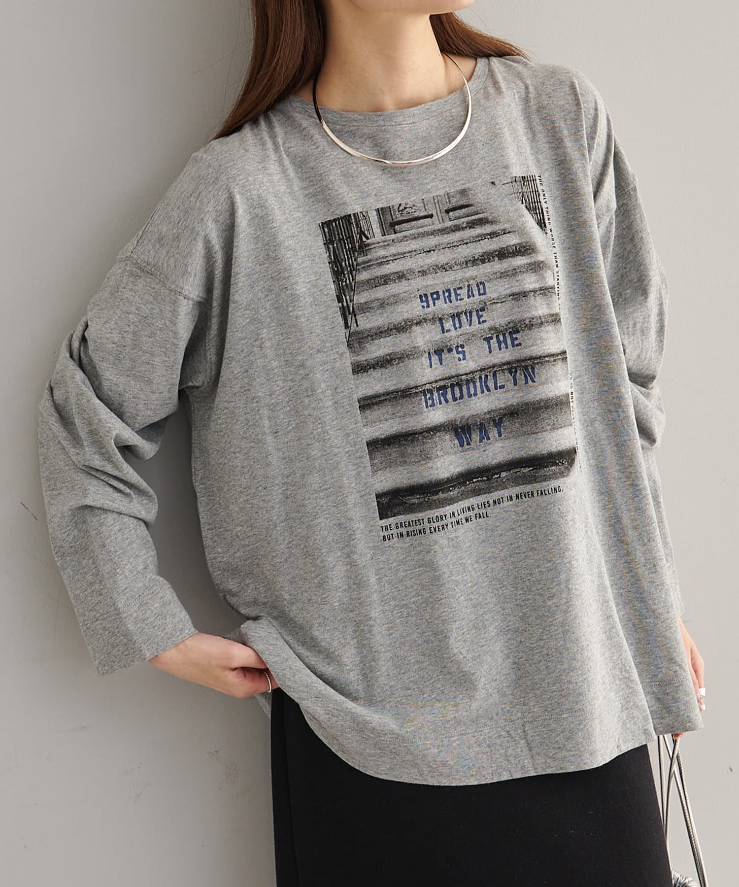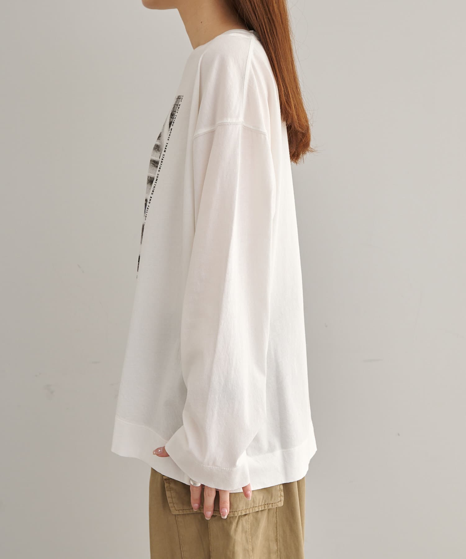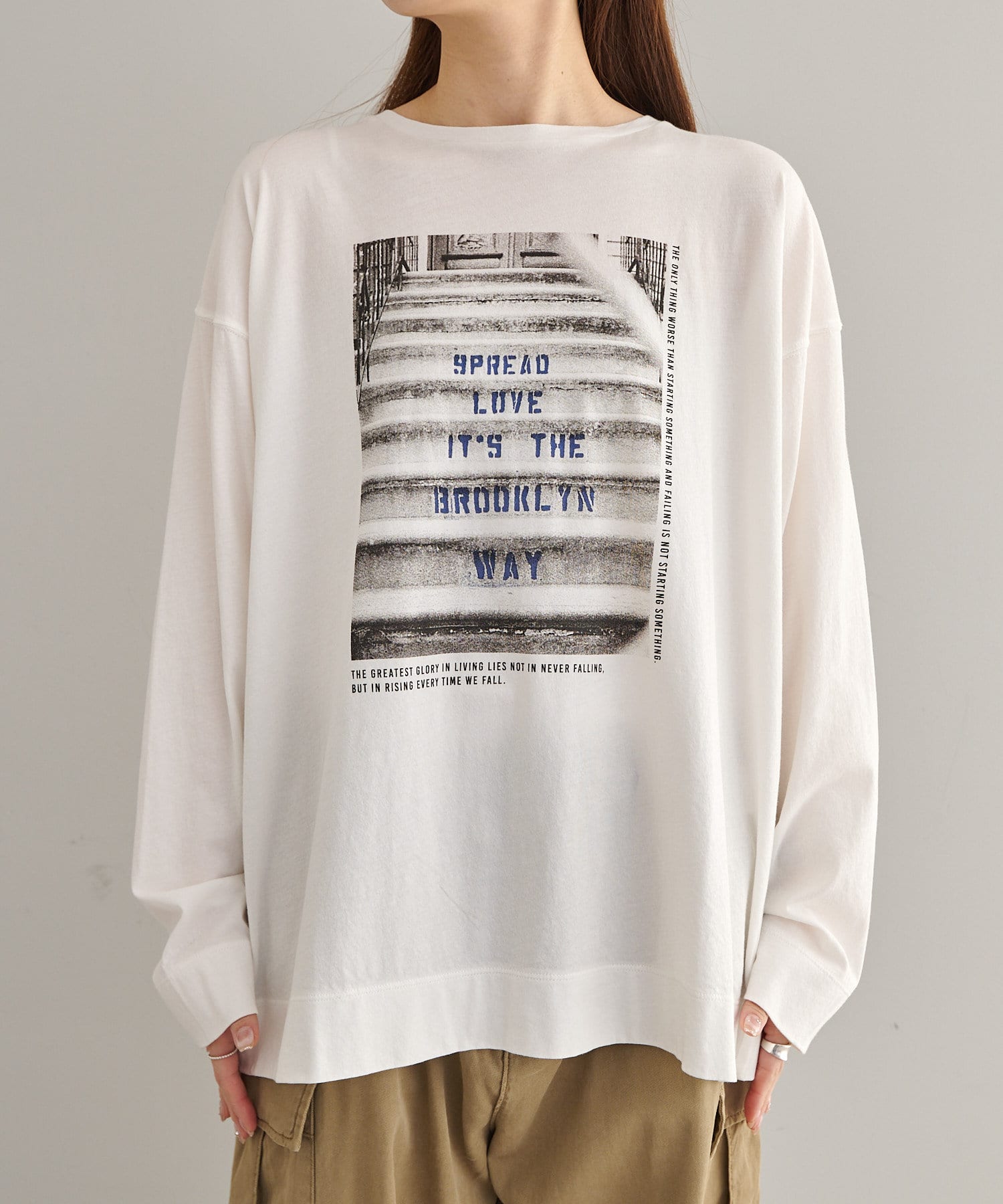 フロントのロゴ入りスクエアフォトが目を惹くカットソー。