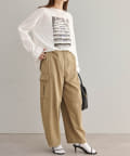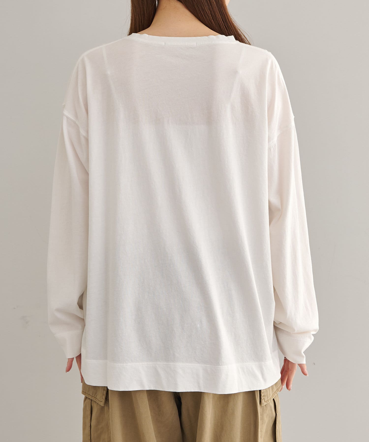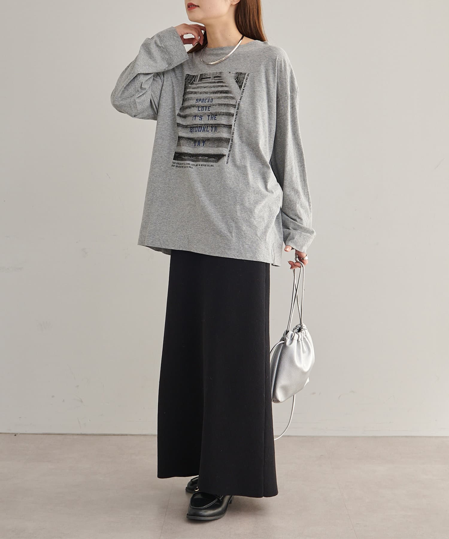 少しゆとりがあるサイズ感のため、カットソー1枚でも、