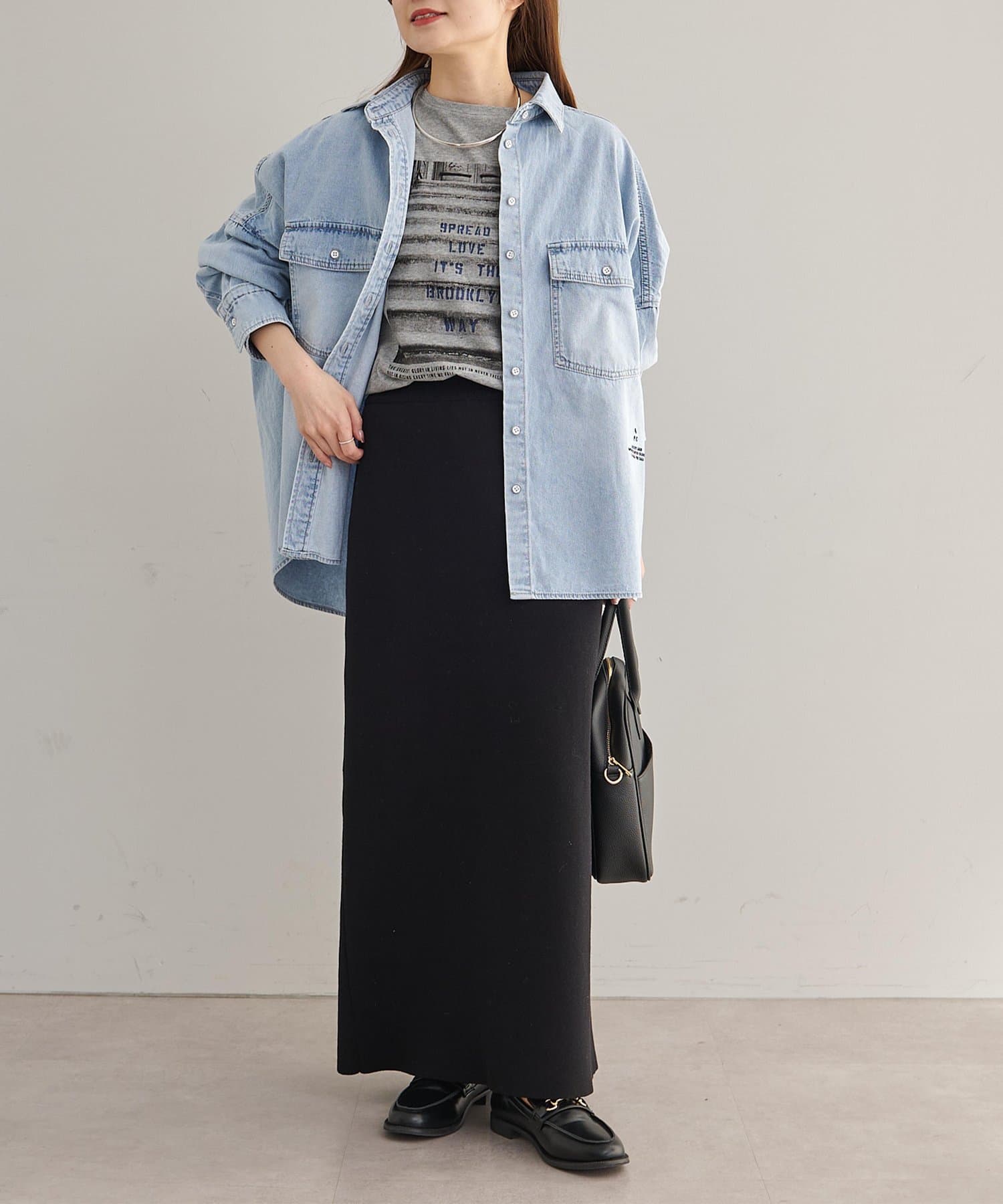 ロングスカートと合わせてきれいめカジュアルなスタイルがおすすめです。