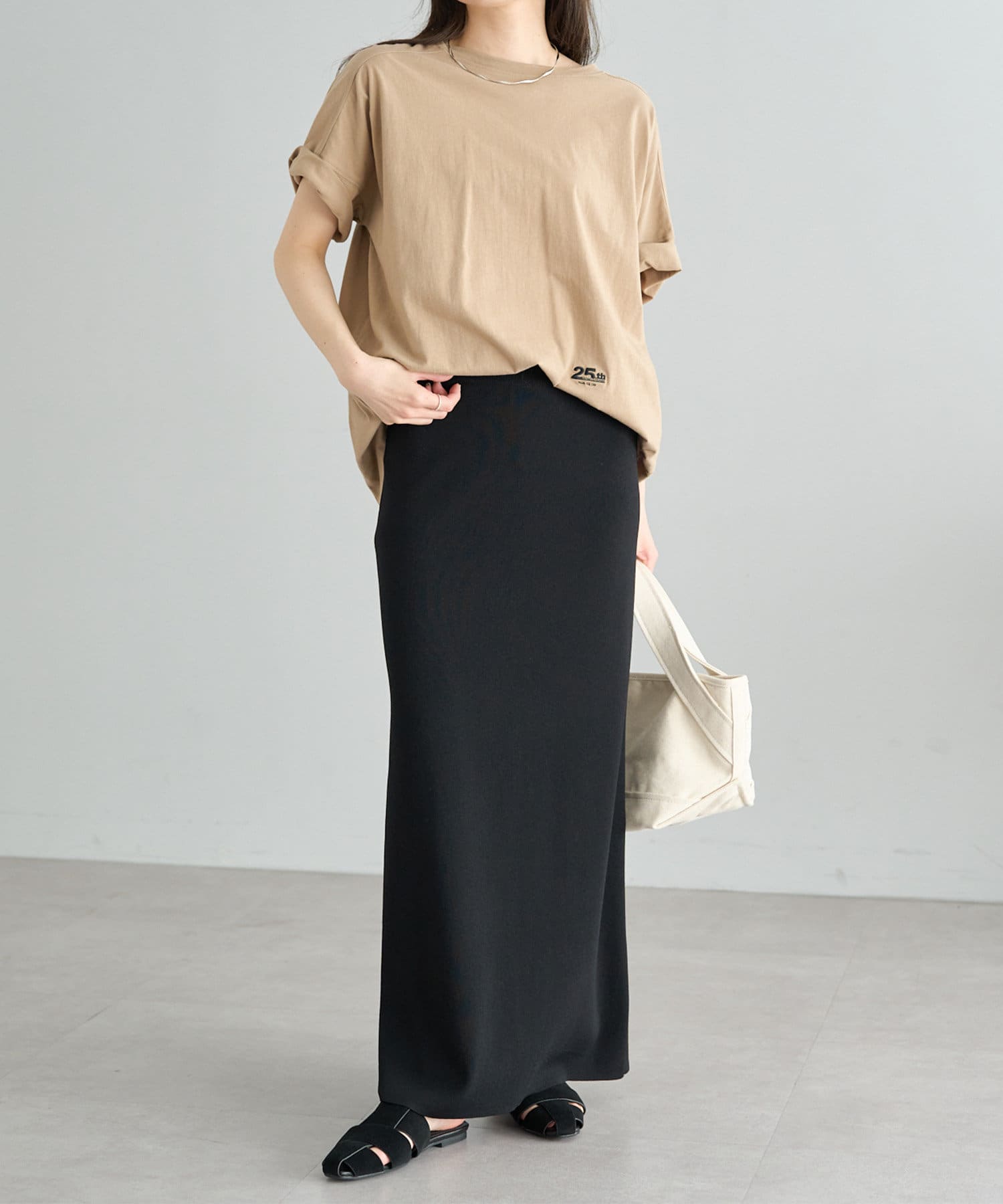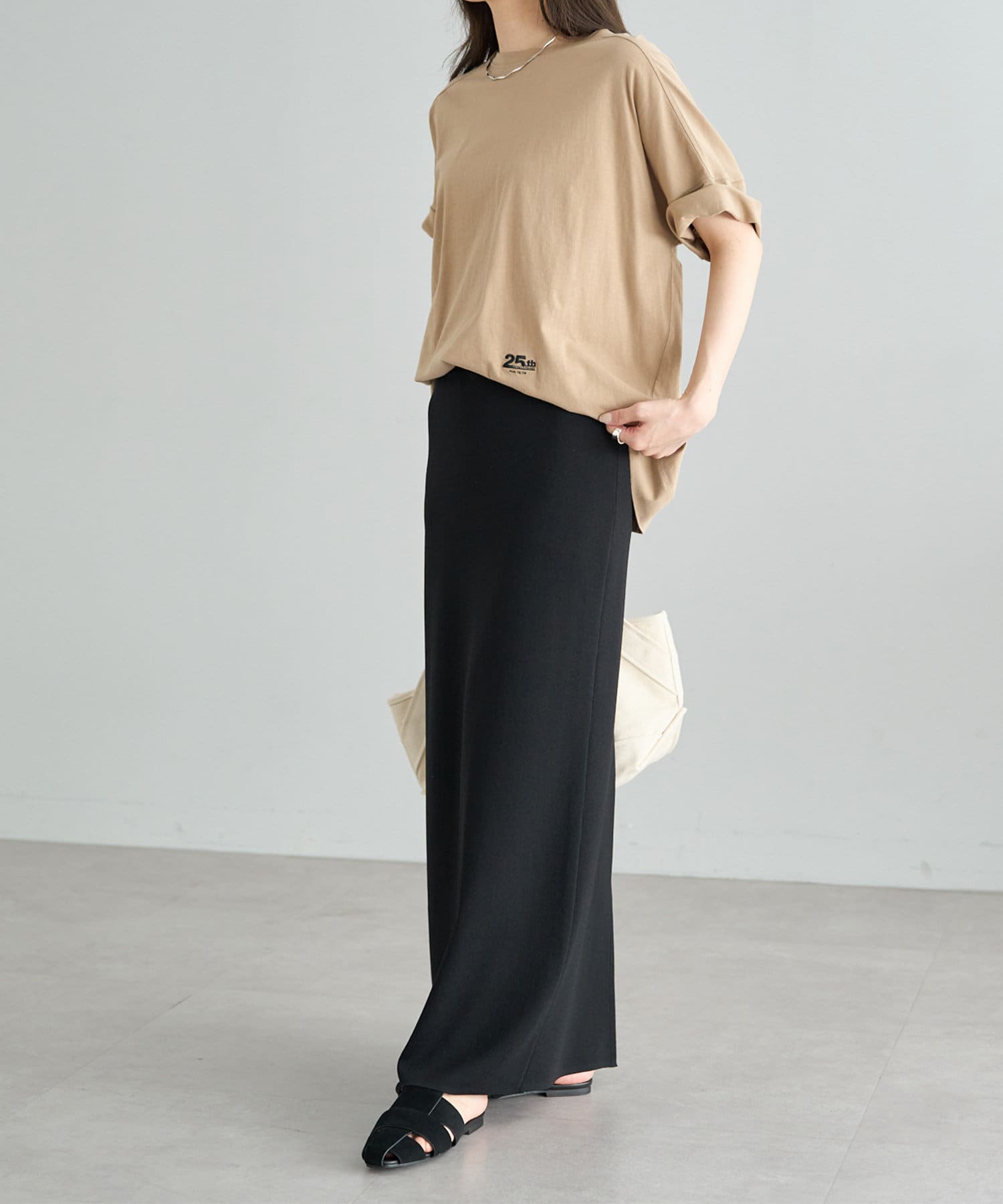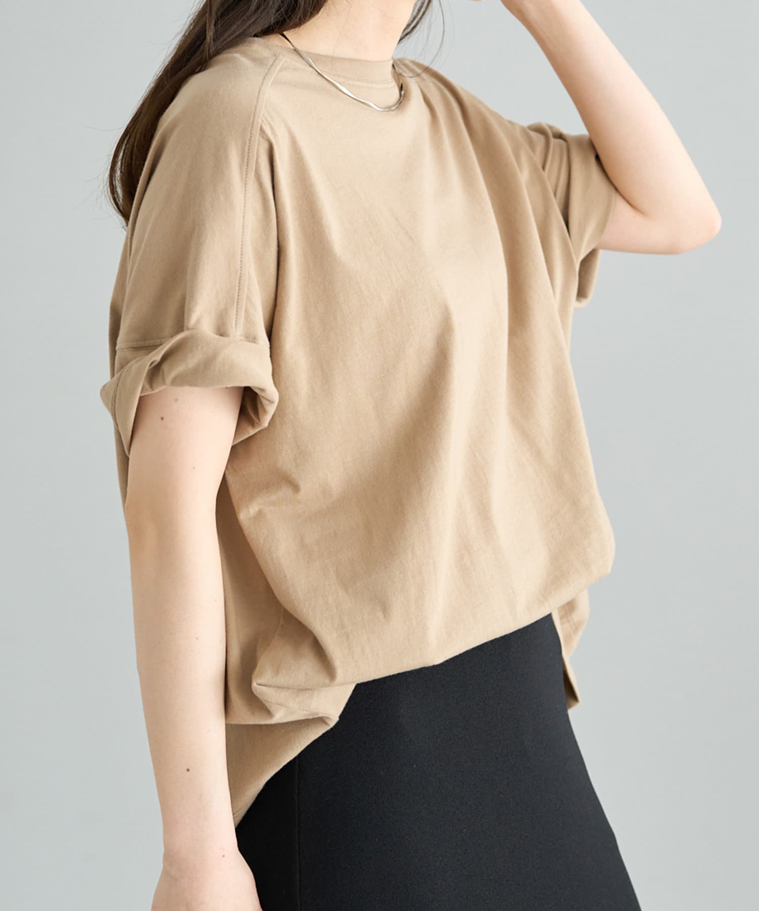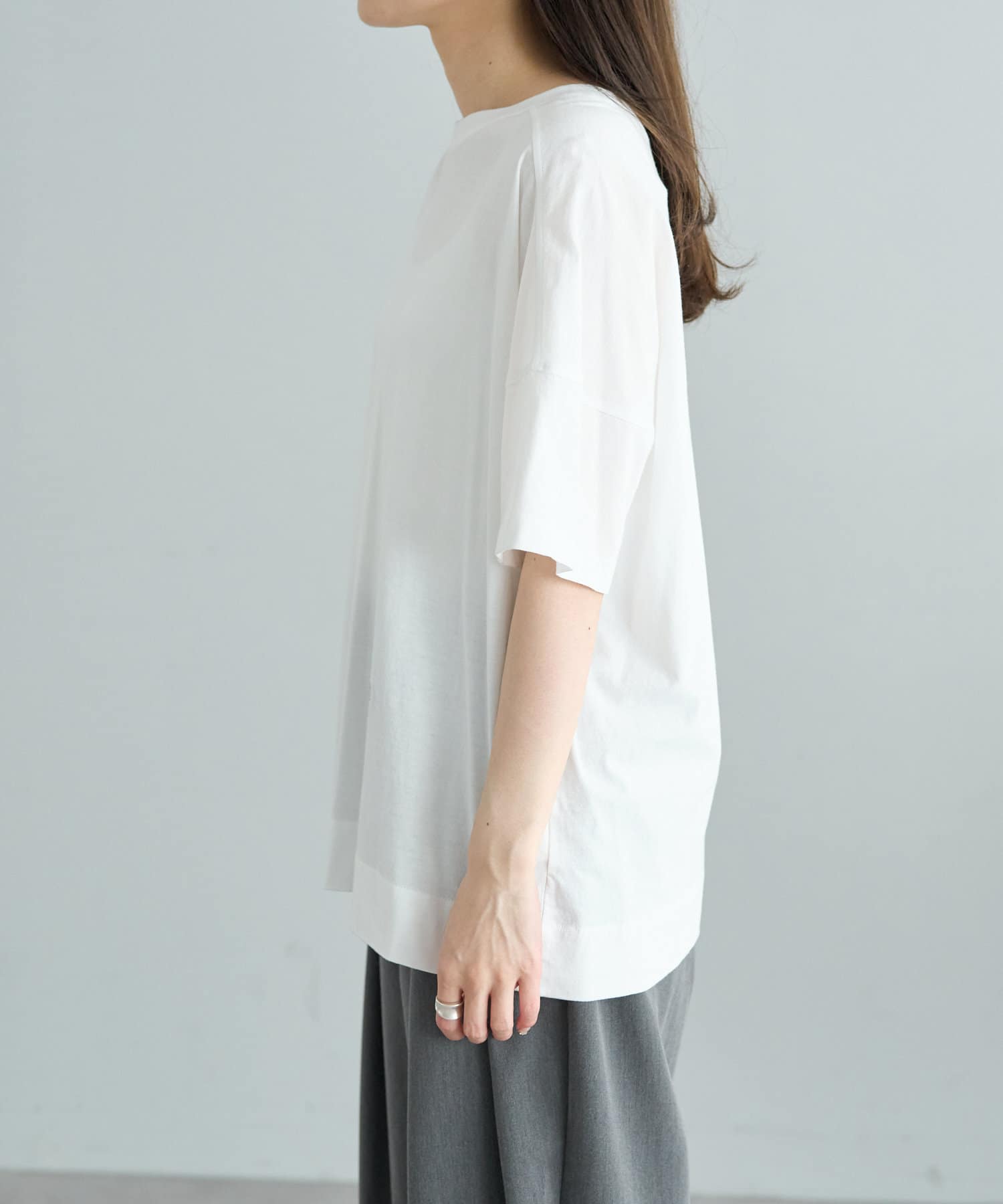 大人の女性に着て欲しい、シンプルながら印象強いドロップスリーブTシャツ。