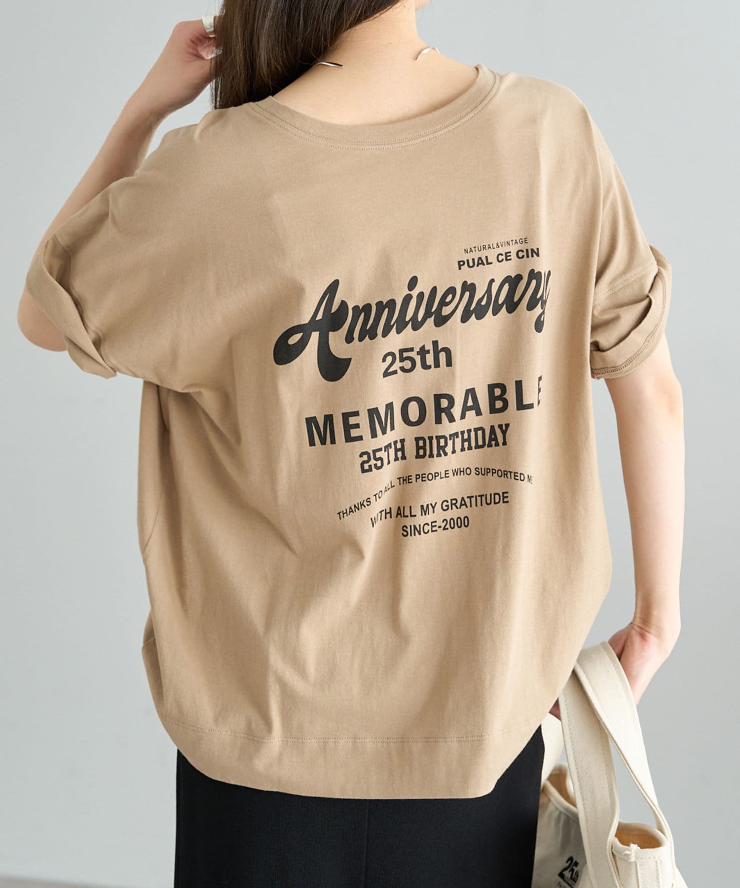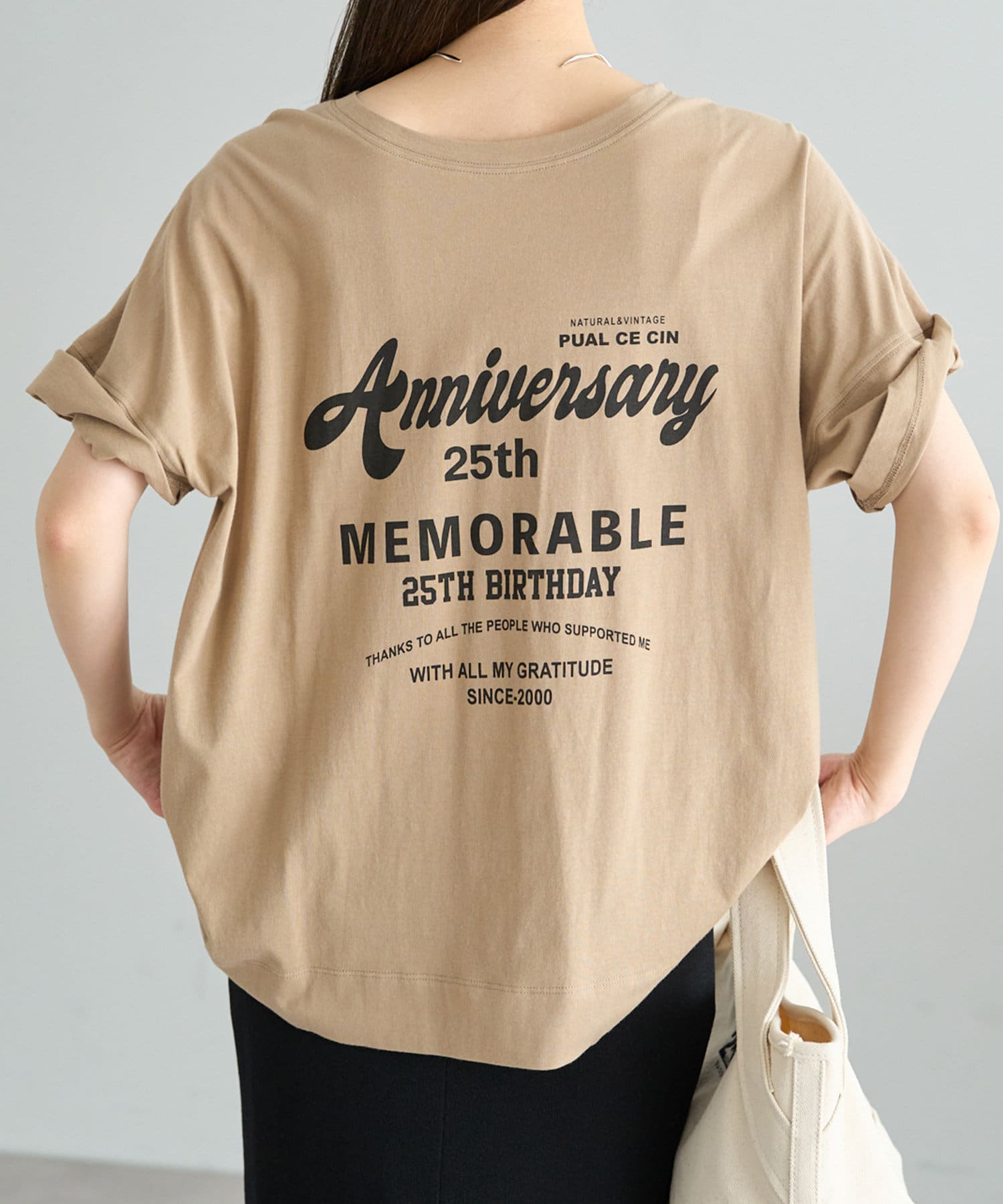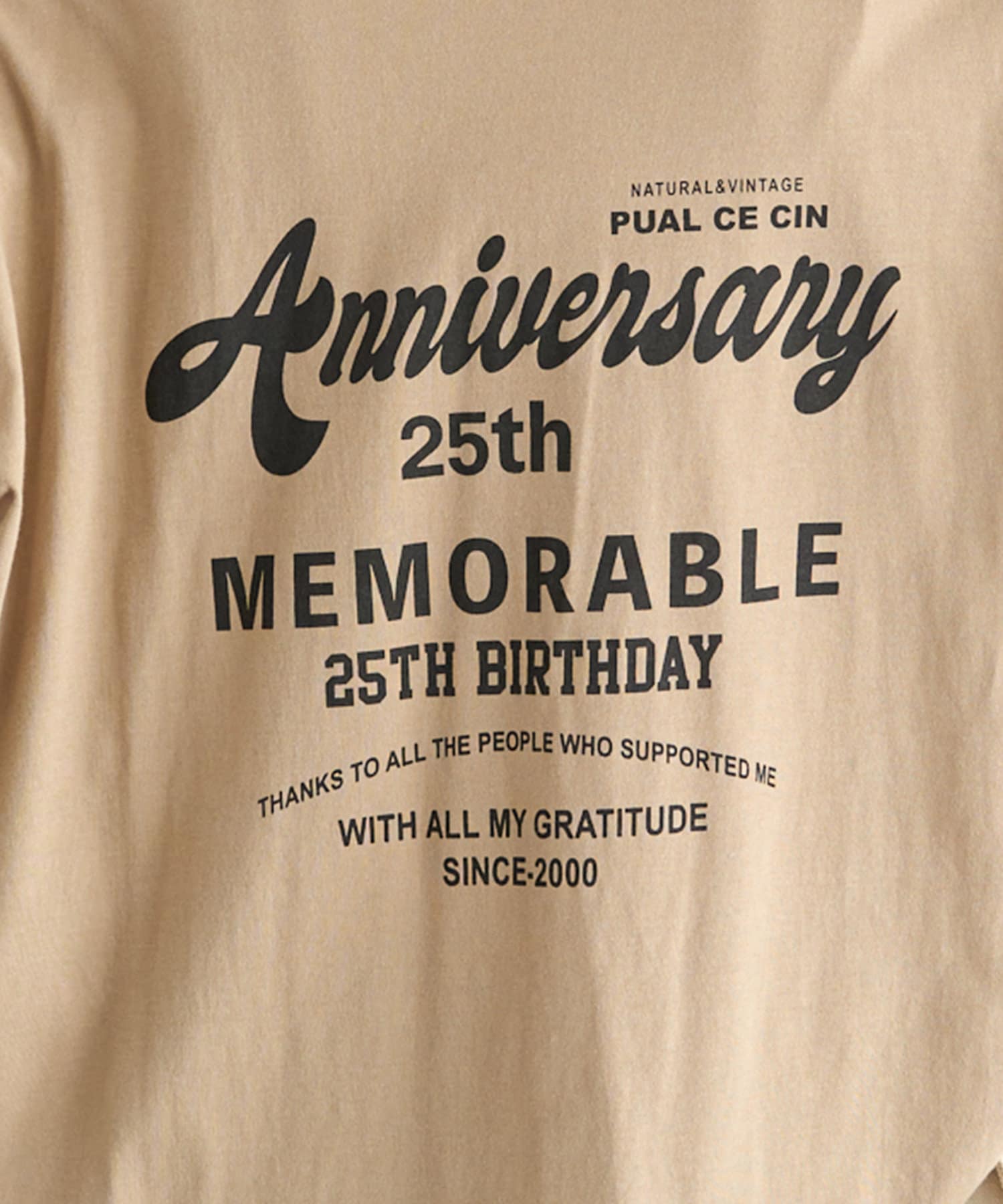 フォントや配置にこだわった25周年の特別なロゴデザインを、ベーシックなカラーバランスでプリントしました。