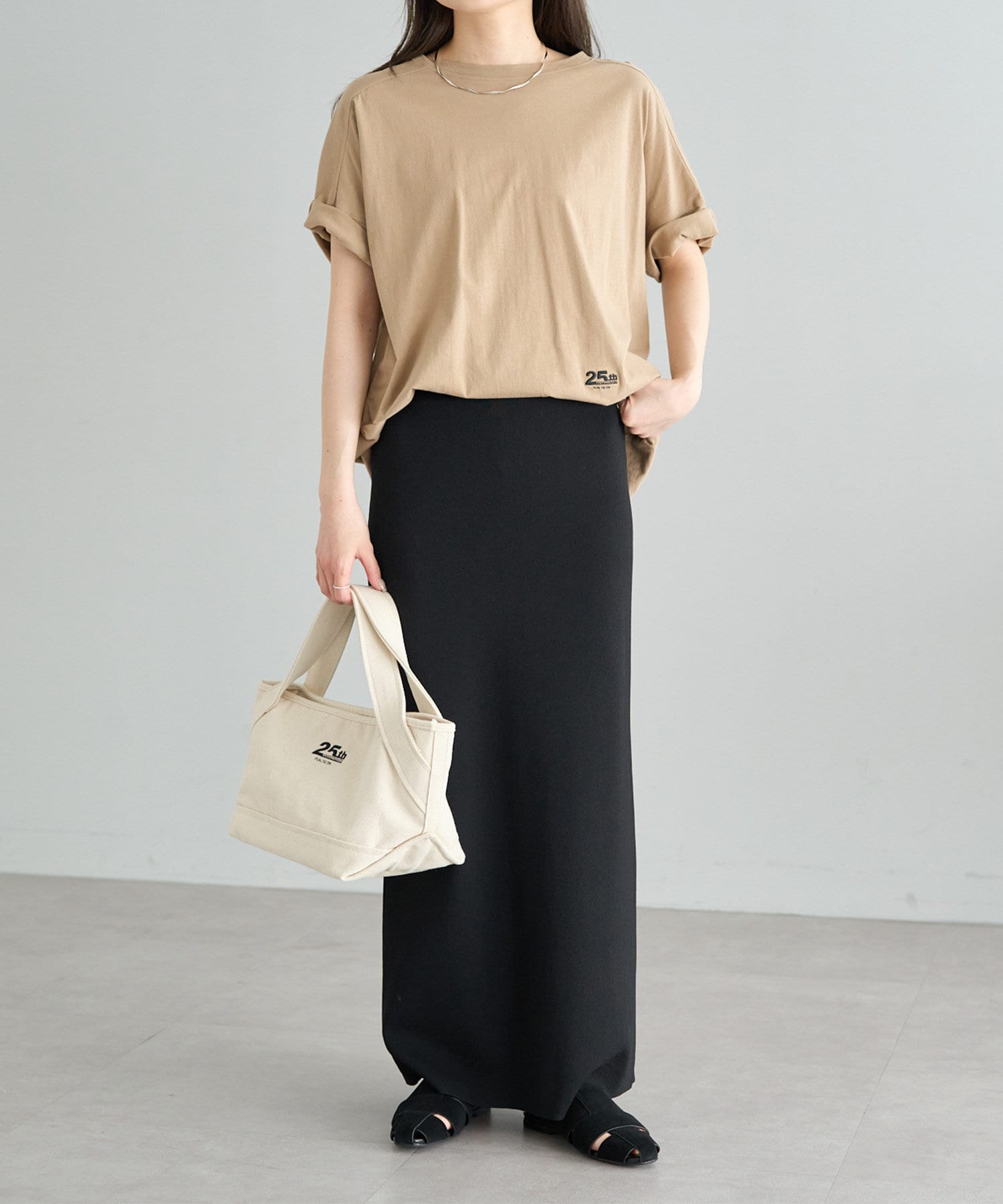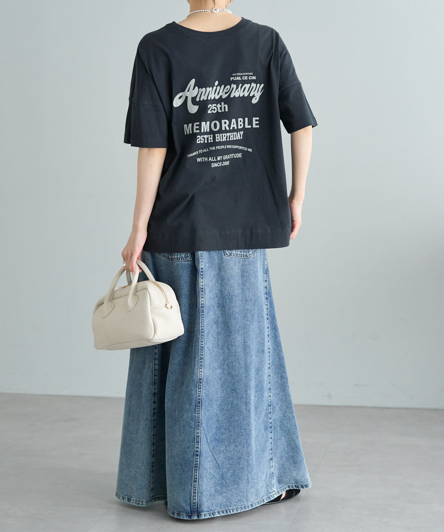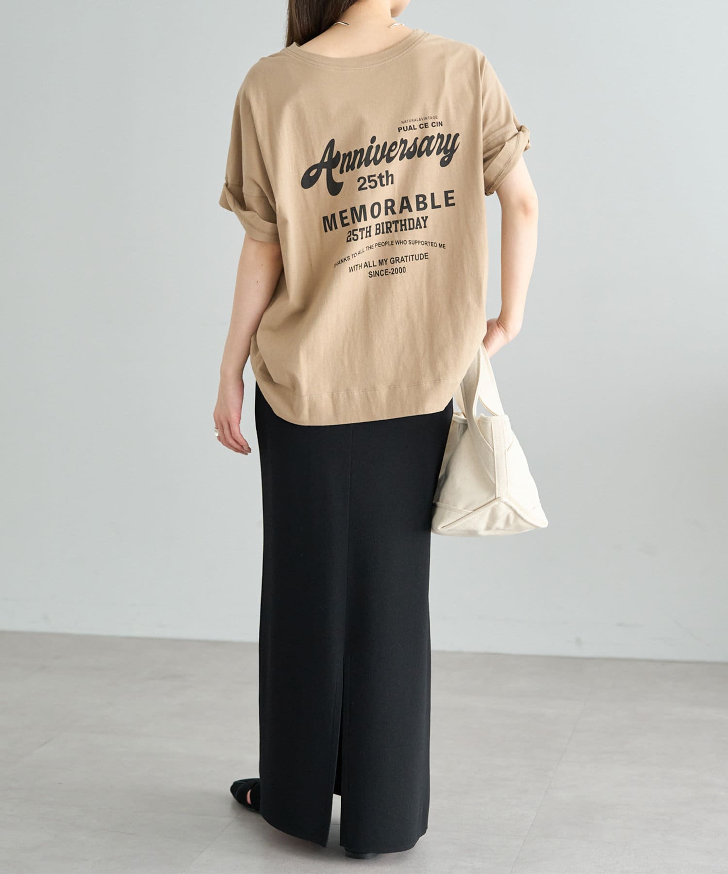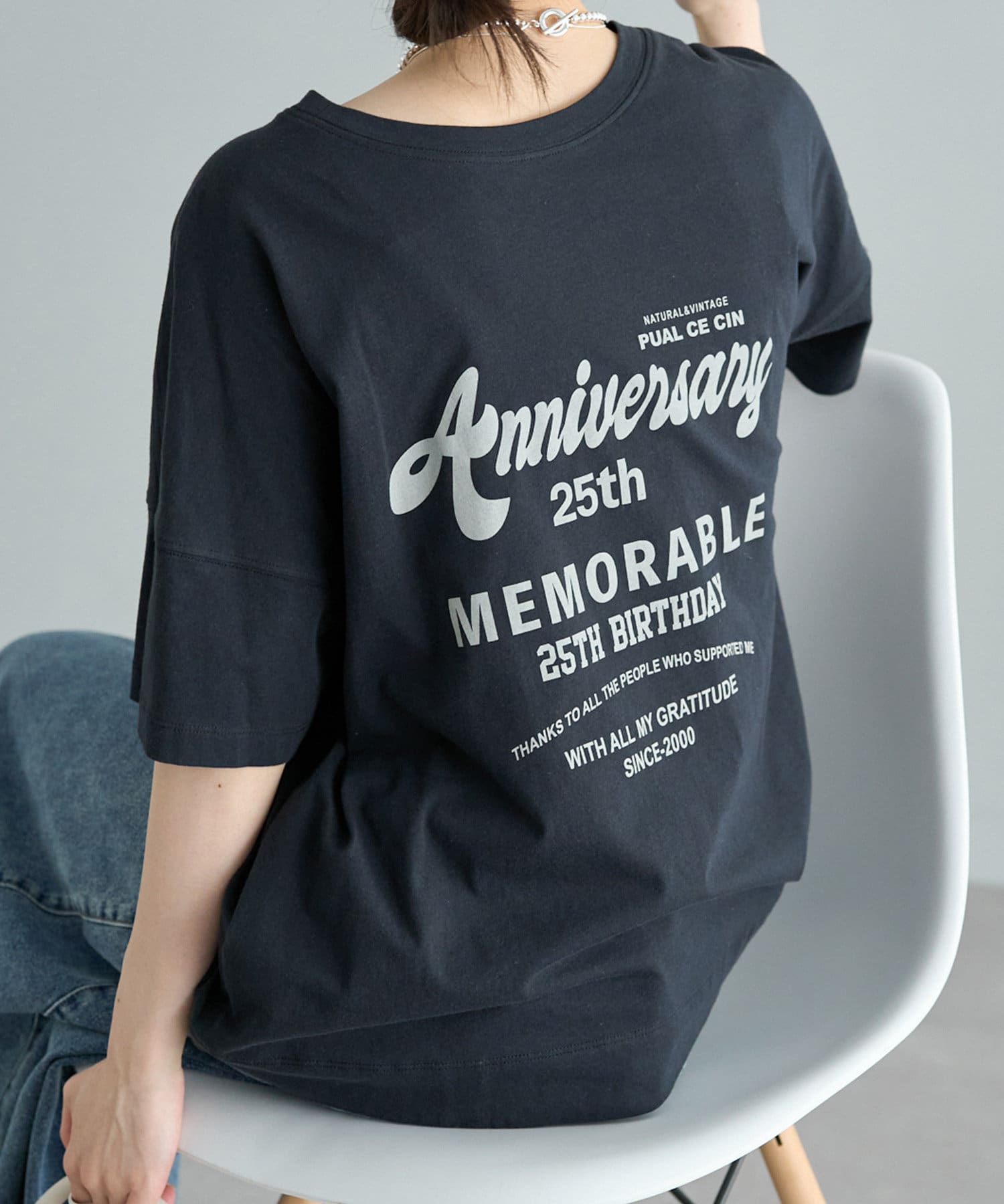 フォントや配置にこだわった25周年の特別なロゴデザインを、ベーシックなカラーバランスでプリントしました。