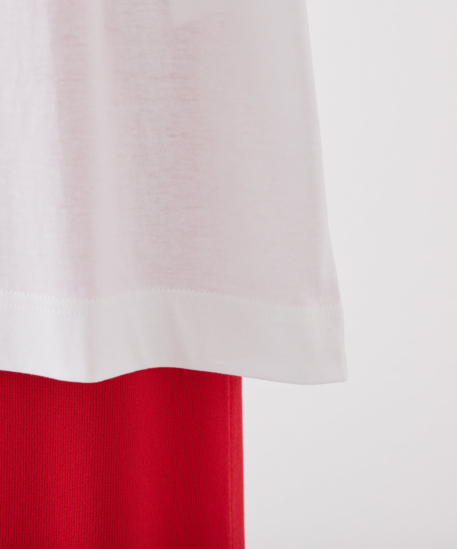 ロゴがポイントになるので、ジャケットやオーバーシャツのインナーとしてもおすすめです。
