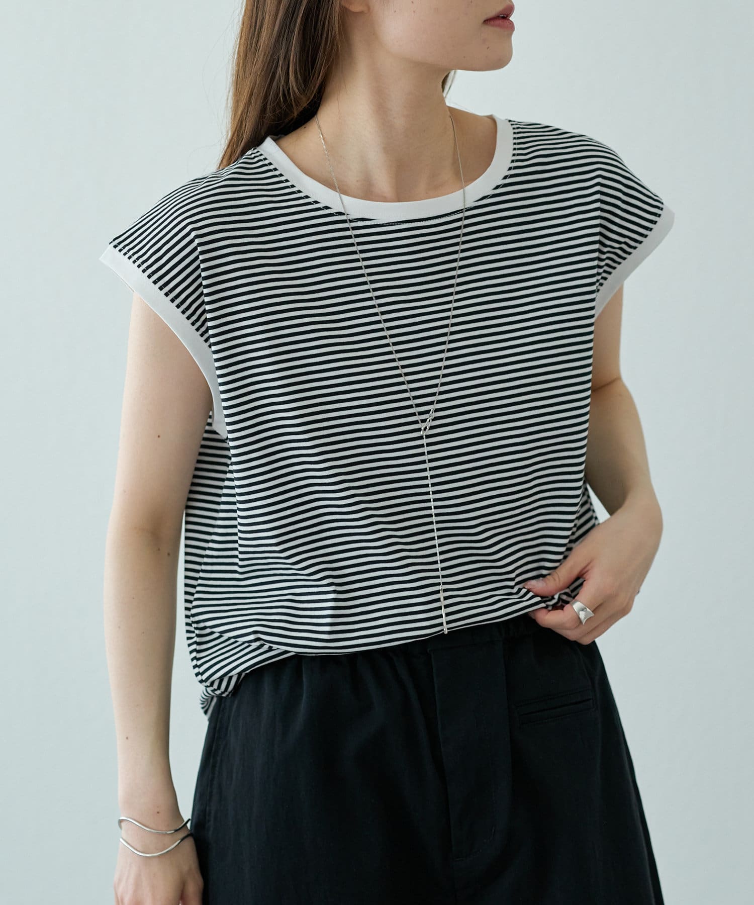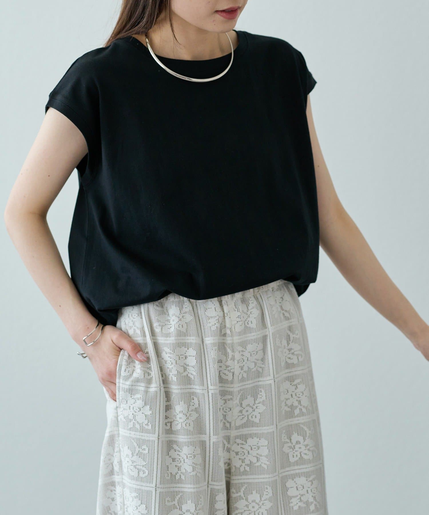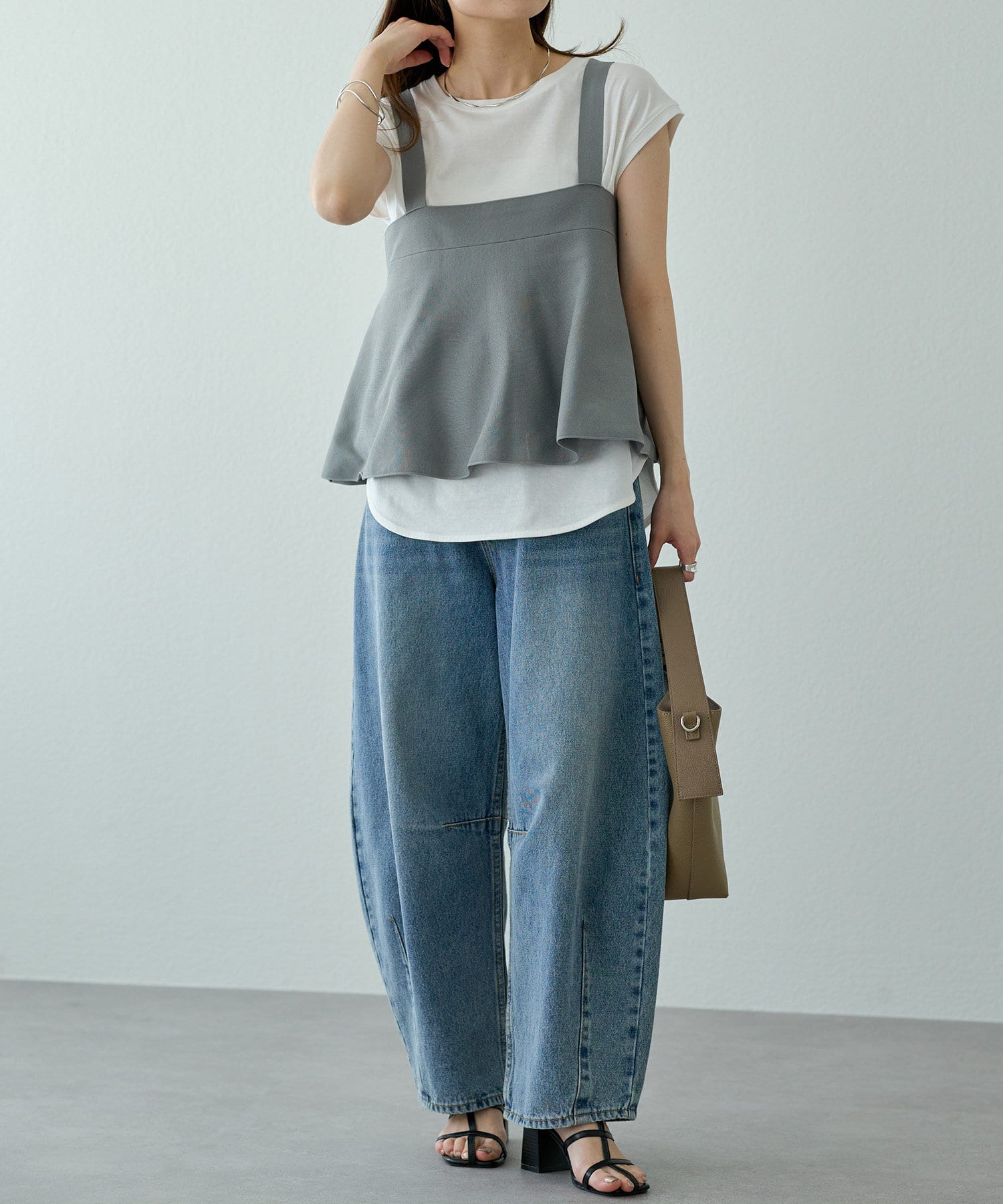 身頃はシンプルなので、ビスチェやベストとのレイヤードに最適◎
