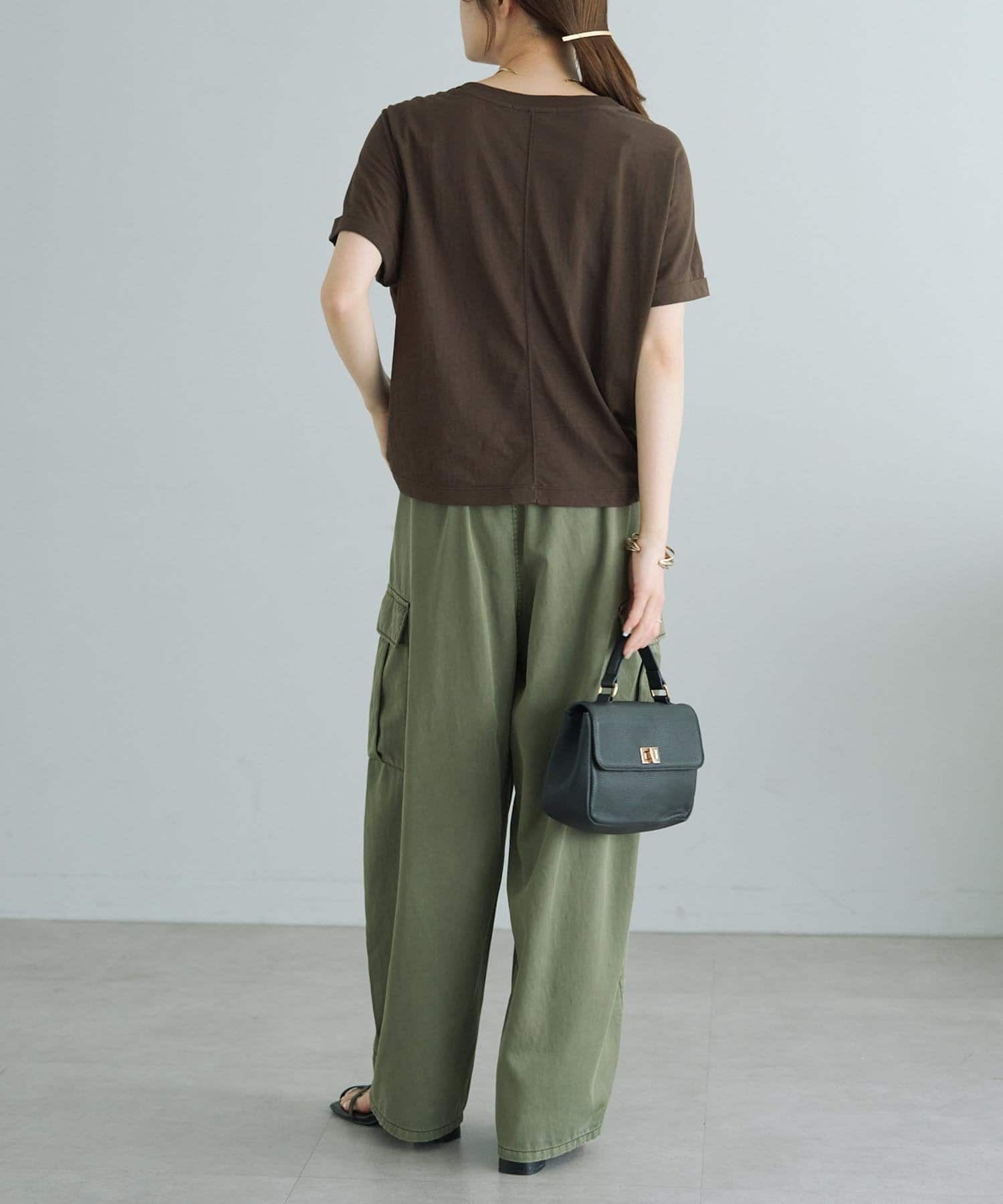 薄手の生地が軽やかな印象なので、ワイドシルエットのボトムスとの組み合わせもバランス良く決まります。