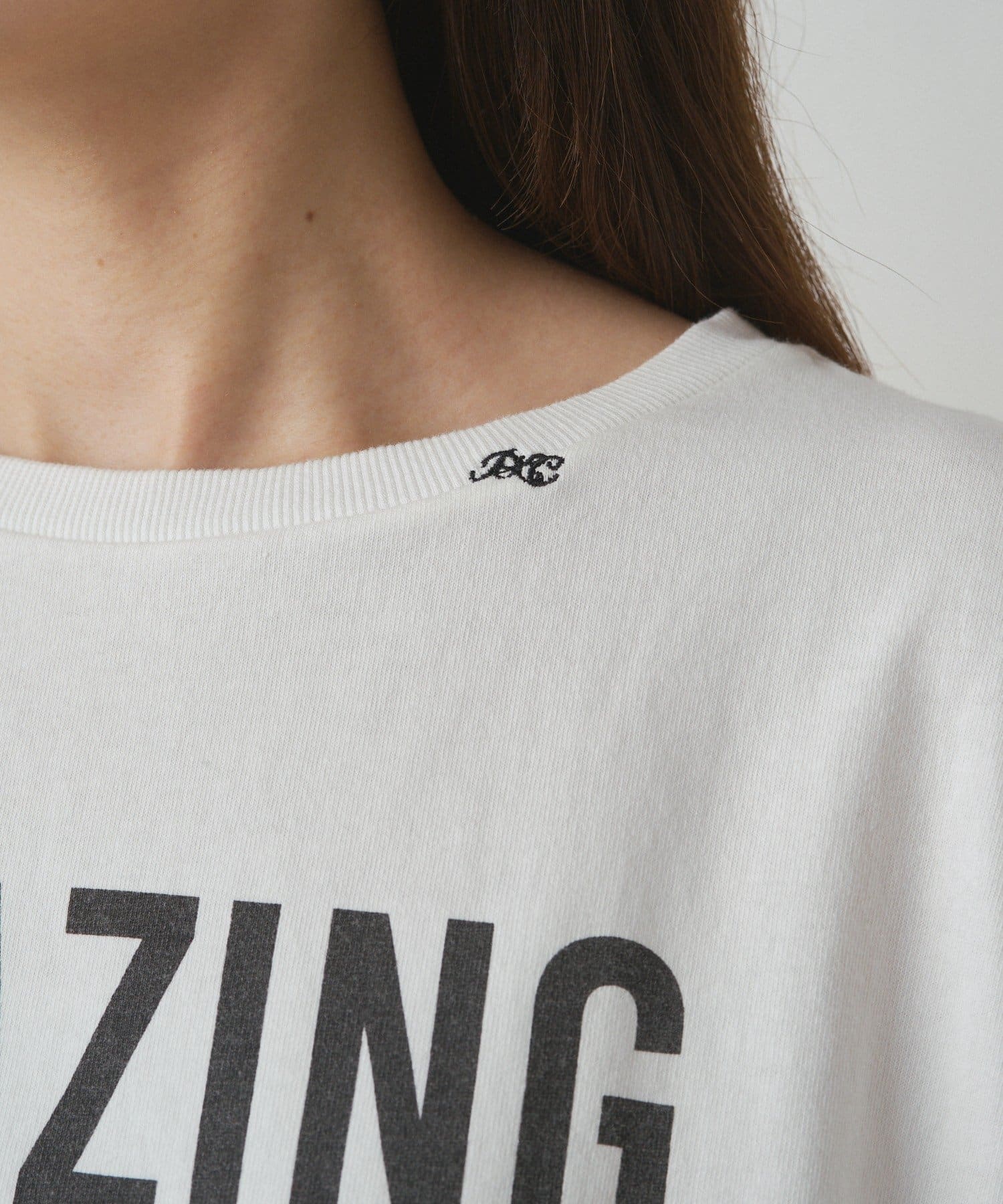 首元に入ったブランドのロゴ刺繍が可愛らしいワンポイントになり華やかさもプラス。