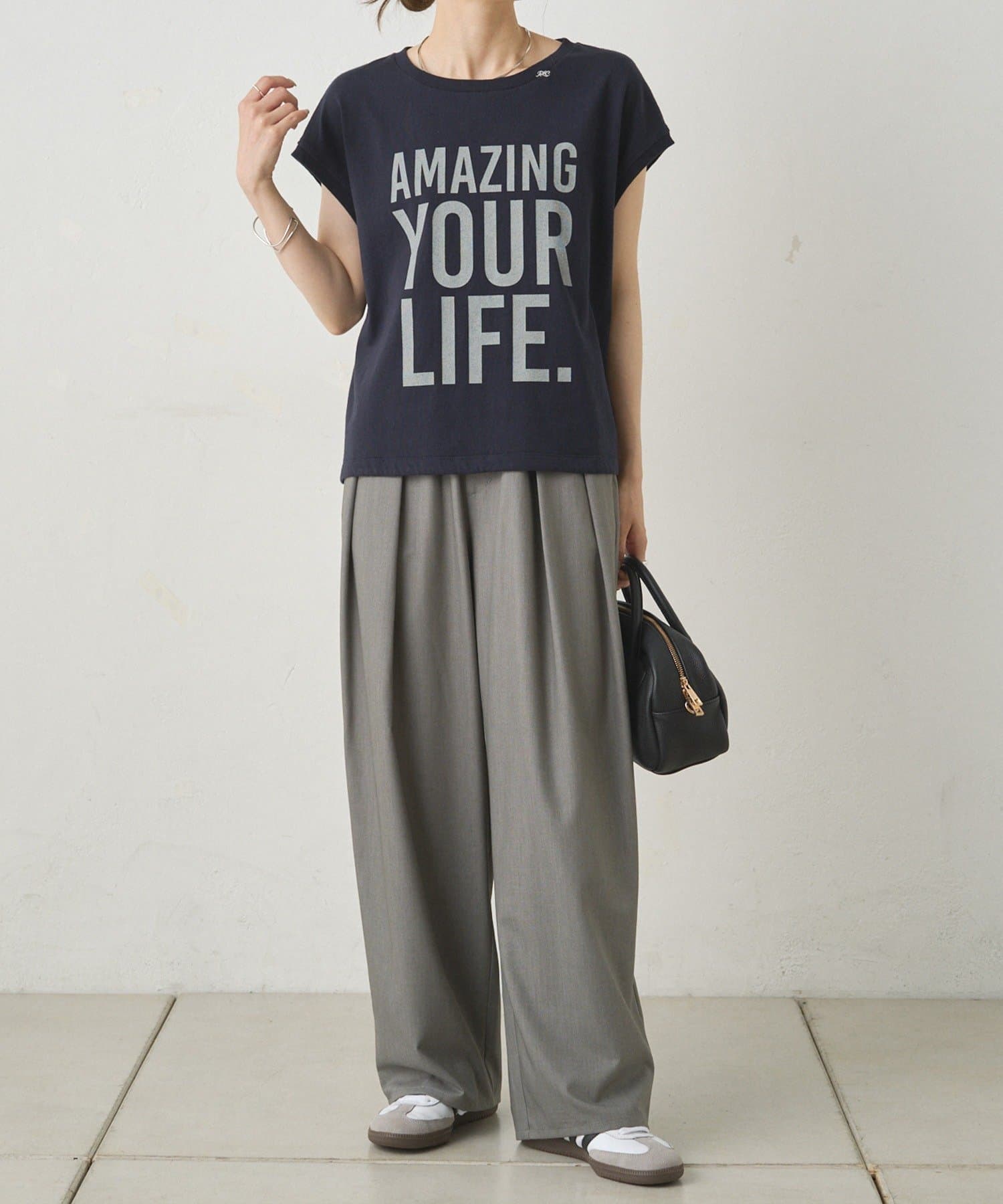 お手持ちのワードローブにサラッと合わせれば、いつものTシャツコーデを簡単にアップデートできる