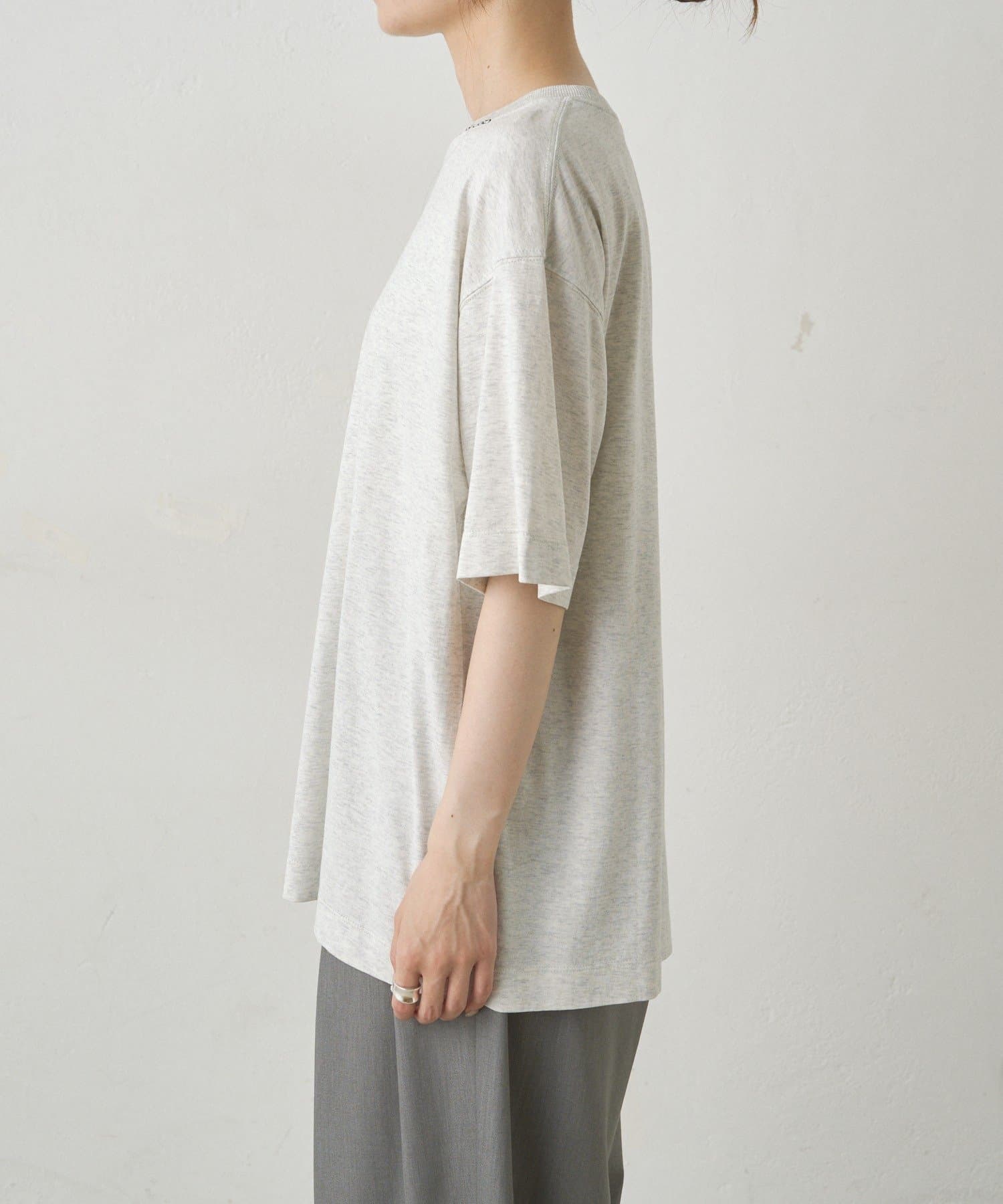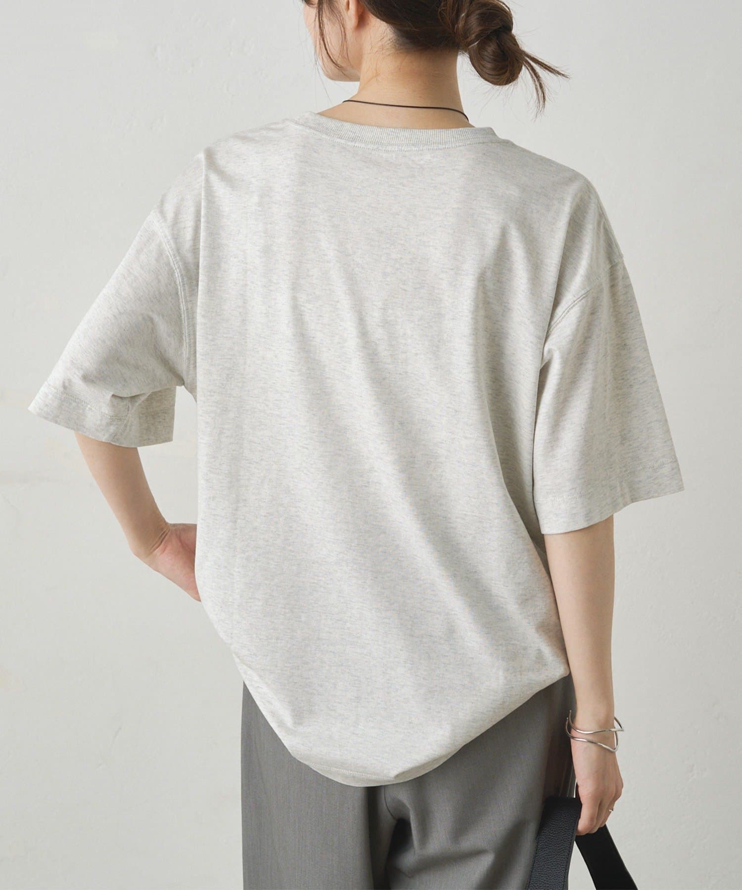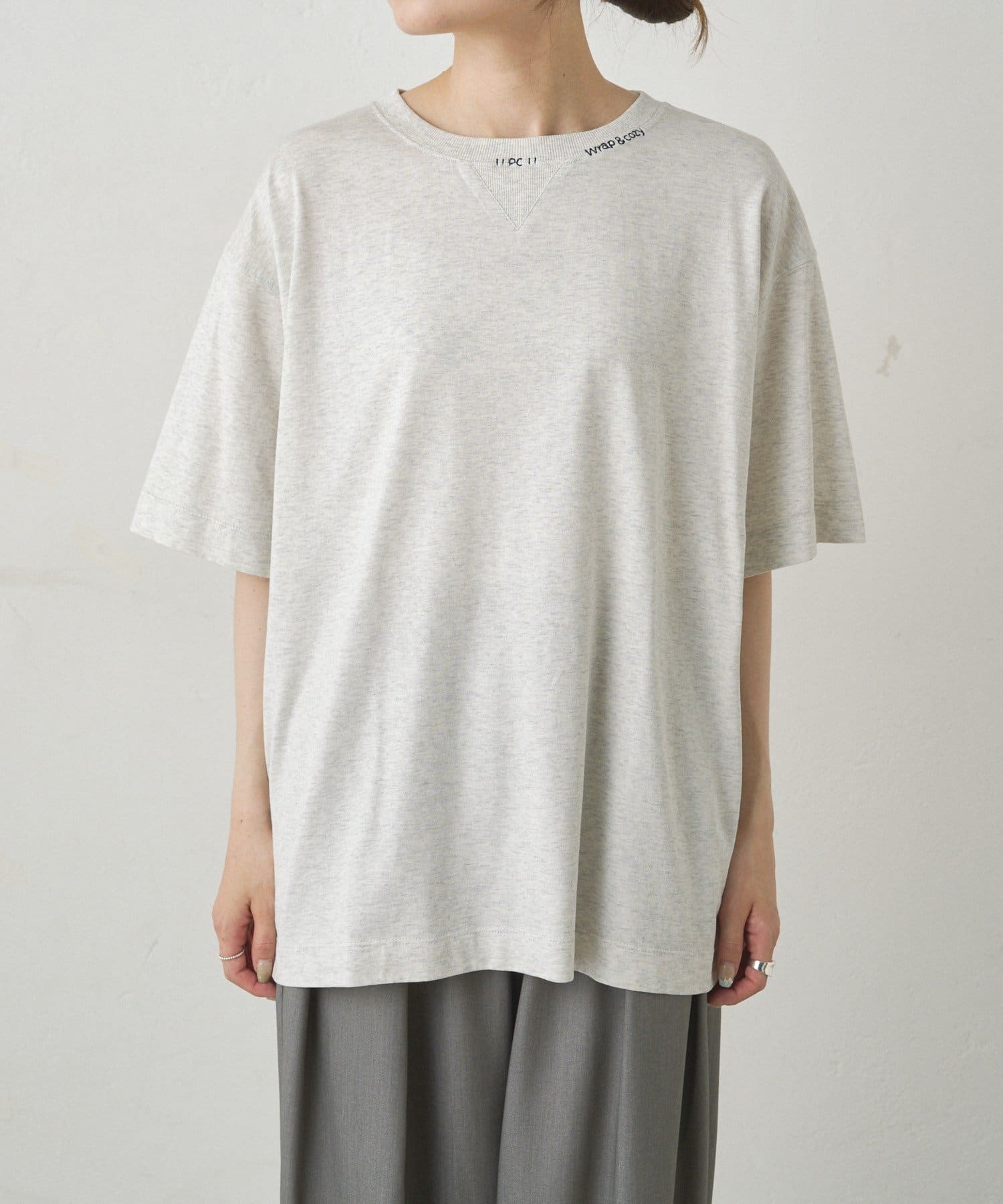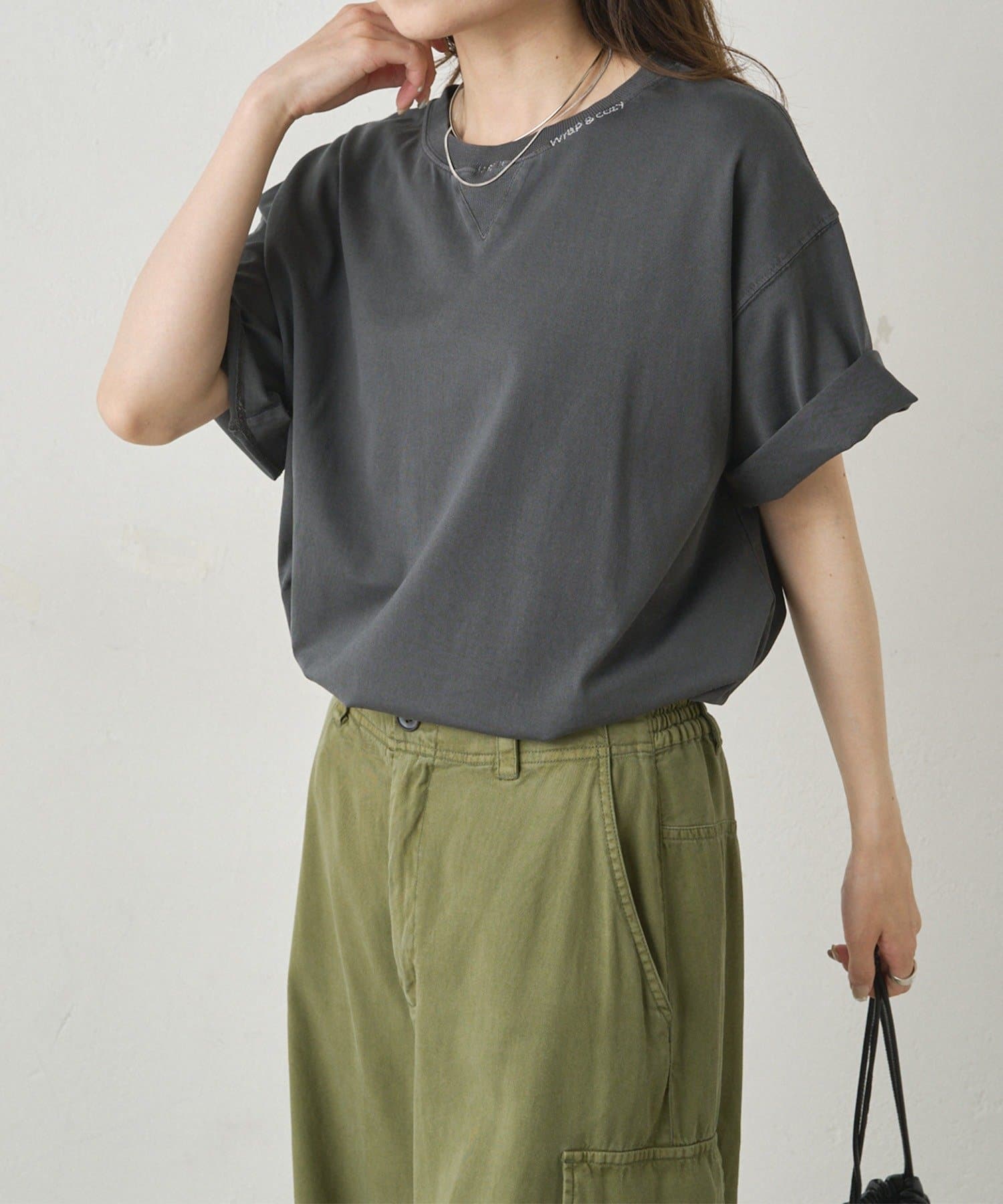 首元に配したロゴ刺繍がアクセントになったTシャツ。